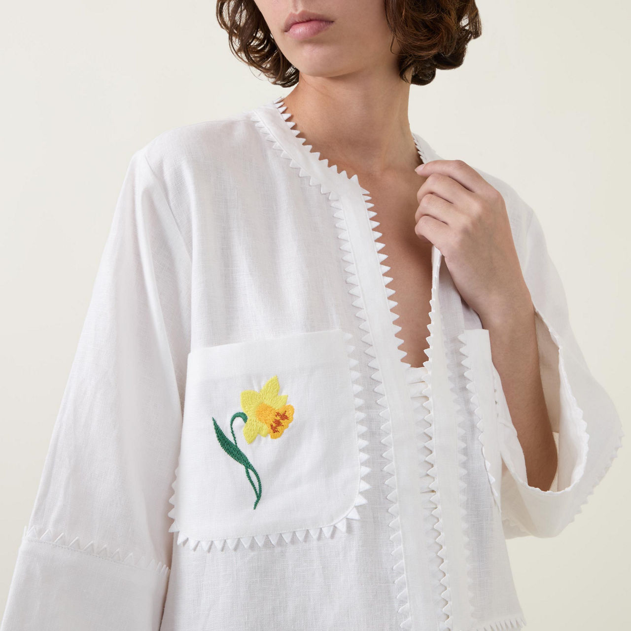 - Composition and Care: Main: 100% linen. Trim: 100% polyester. Hand wash