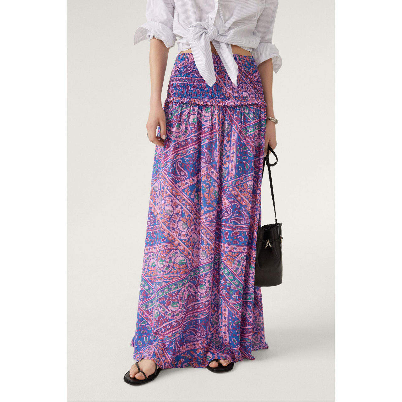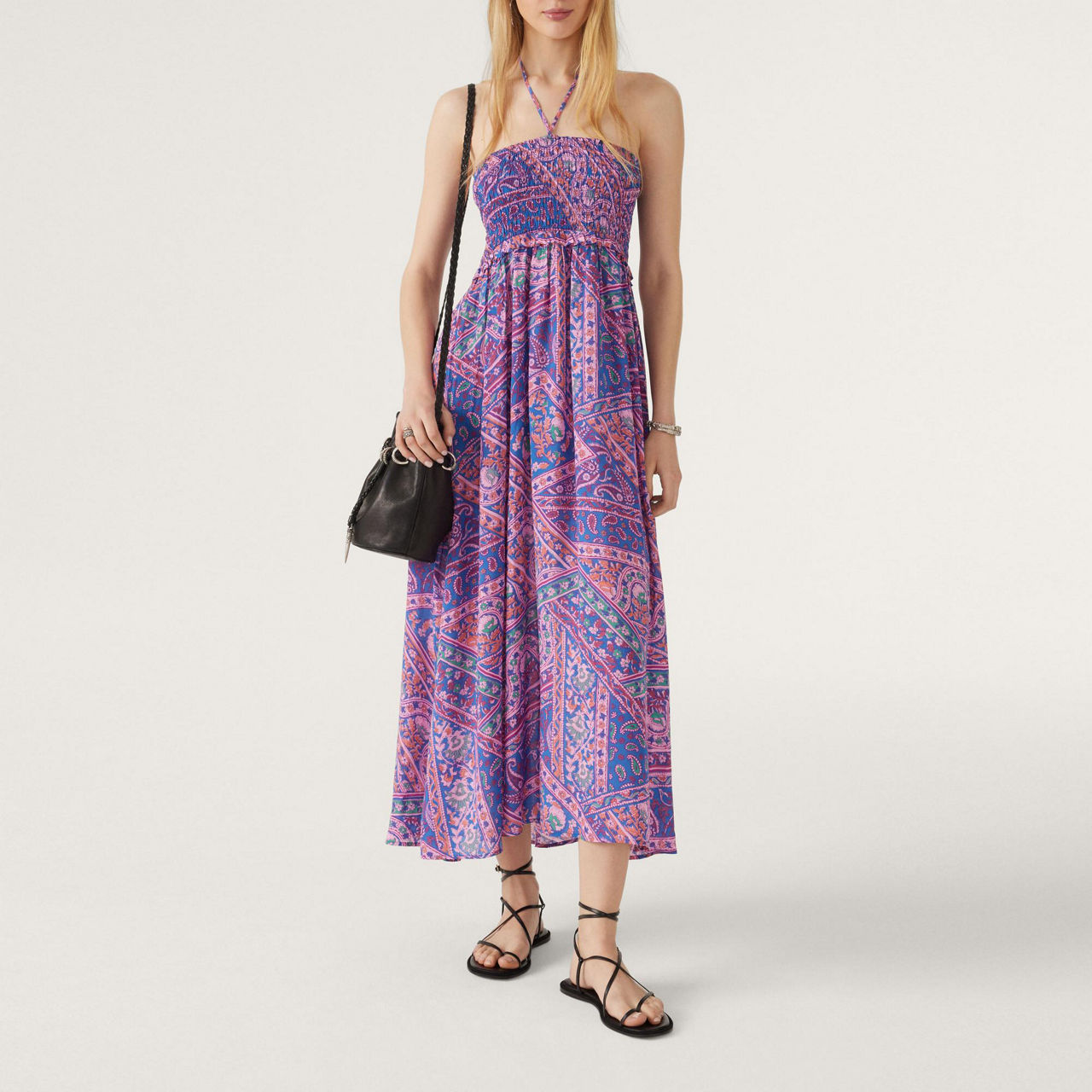 - Midi dress, maxi skirt option, shirred detail