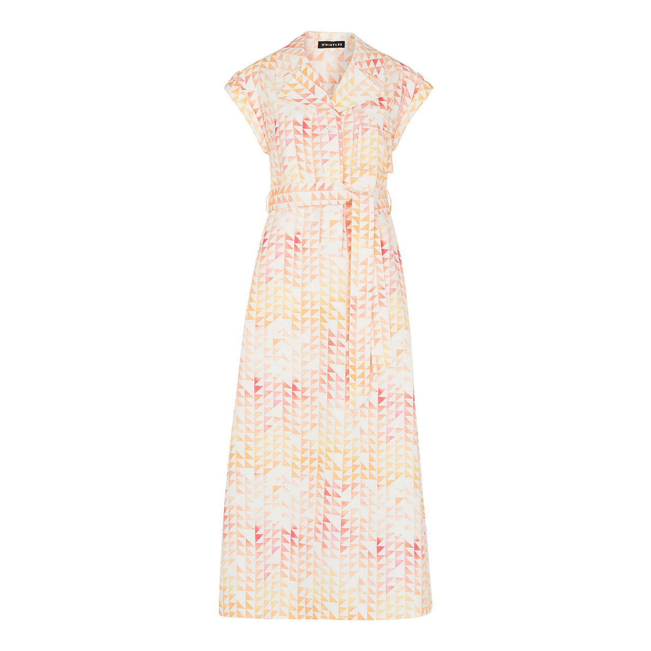 Whistles have nailed the summer dress design, and this hexagon-print one is a guaranteed mood lifter. The colourful print is cut to a flattering A-line silhouette and midi length, detailed with a notched lapel collar and turned-up sleeves that lend a timeless elegance to the garment.