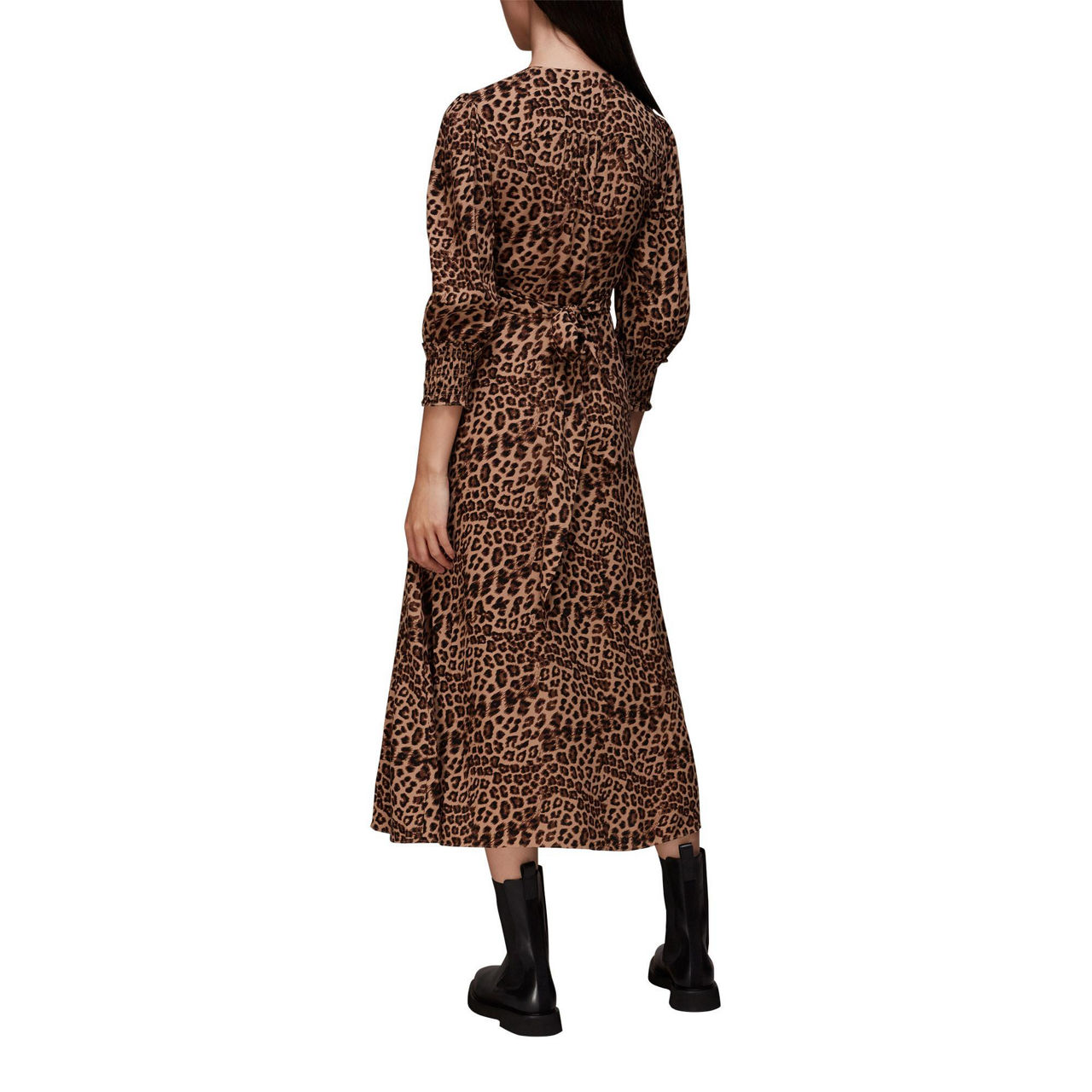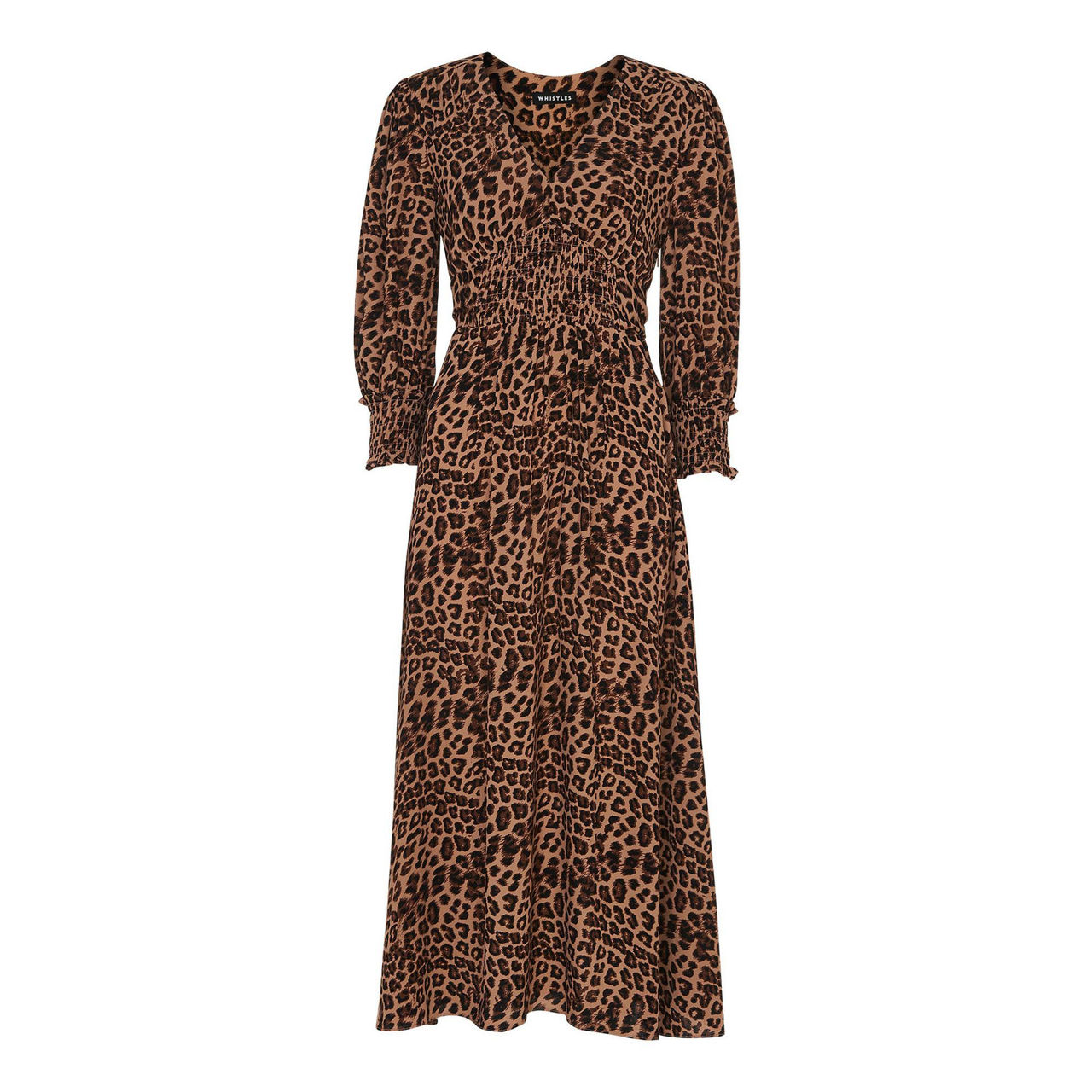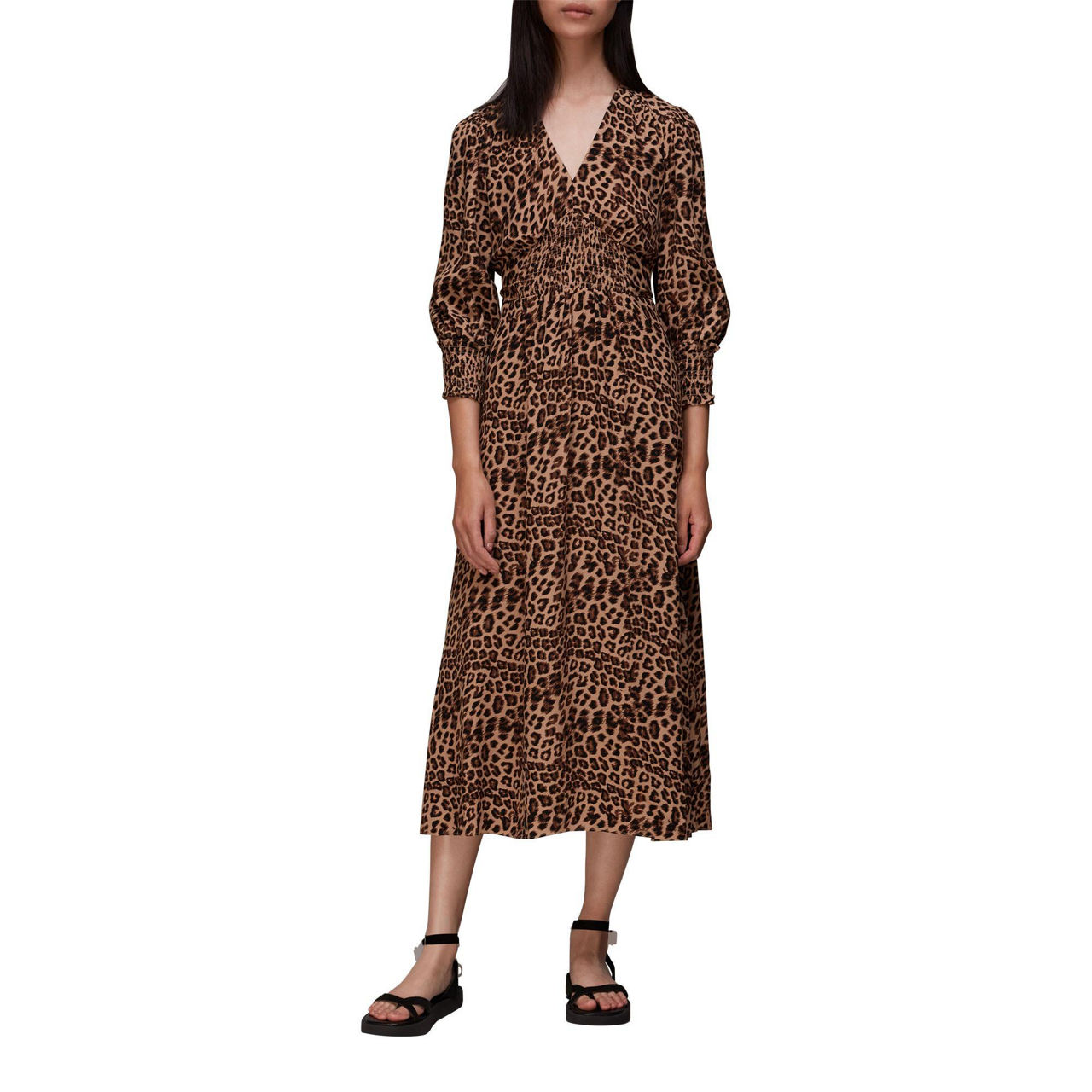 WHISTLES Jungle Cheetah Shirred Midi Dress