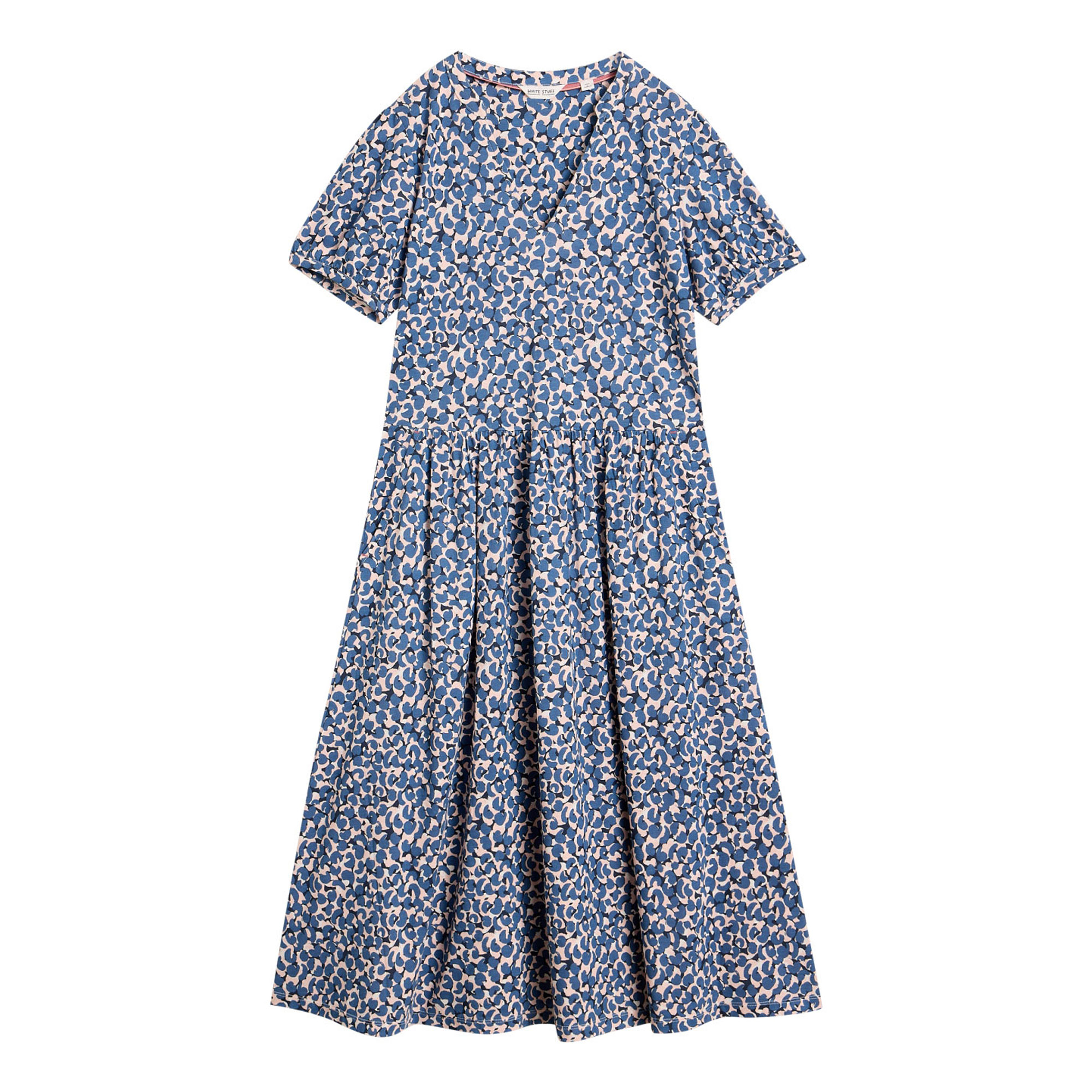 - Jersey fabric, printed, pockets, V-neckline, gathered elasticated waistband, full skirt, gathered sleeves