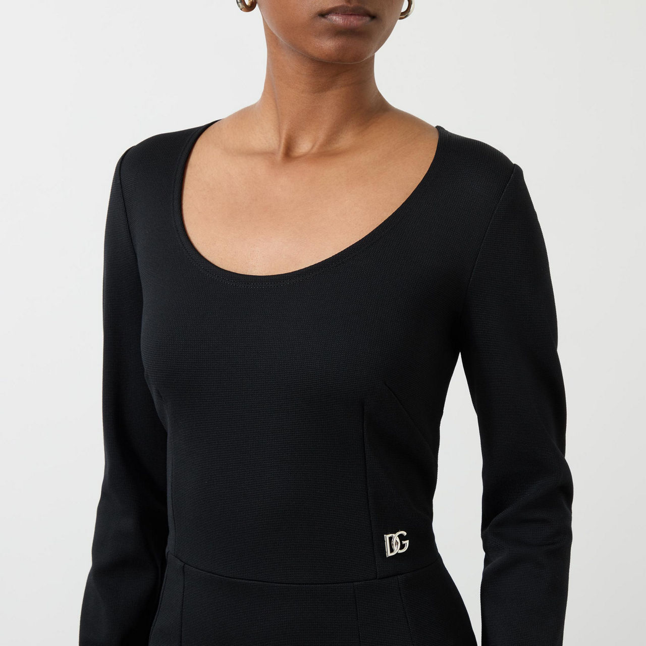 DOLCE & GABBANA Long-Sleeve Round Neck Jersey Midi Dress