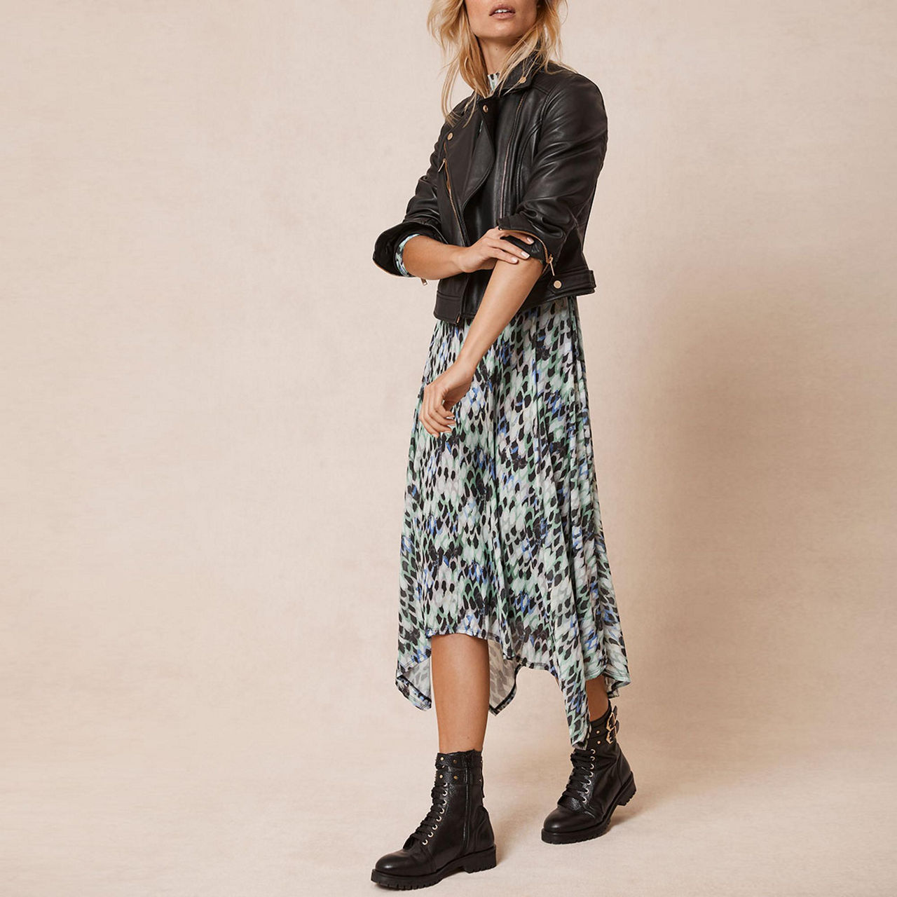 A chic dress in a striking pattern from Mint Velvet. Just add biker boots for an edge-filled look.