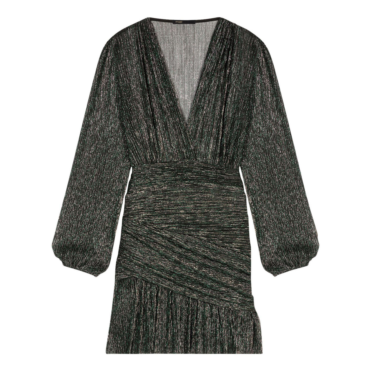 Perfect for an evening out, you'll sparkle the night away in this showstopping dress from Maje. Made from a shimmering lamé material, it features a plunging neckline with a smocked waist to create a form-fitting profile. Accessorise with strappy sandals and statement jewellery.