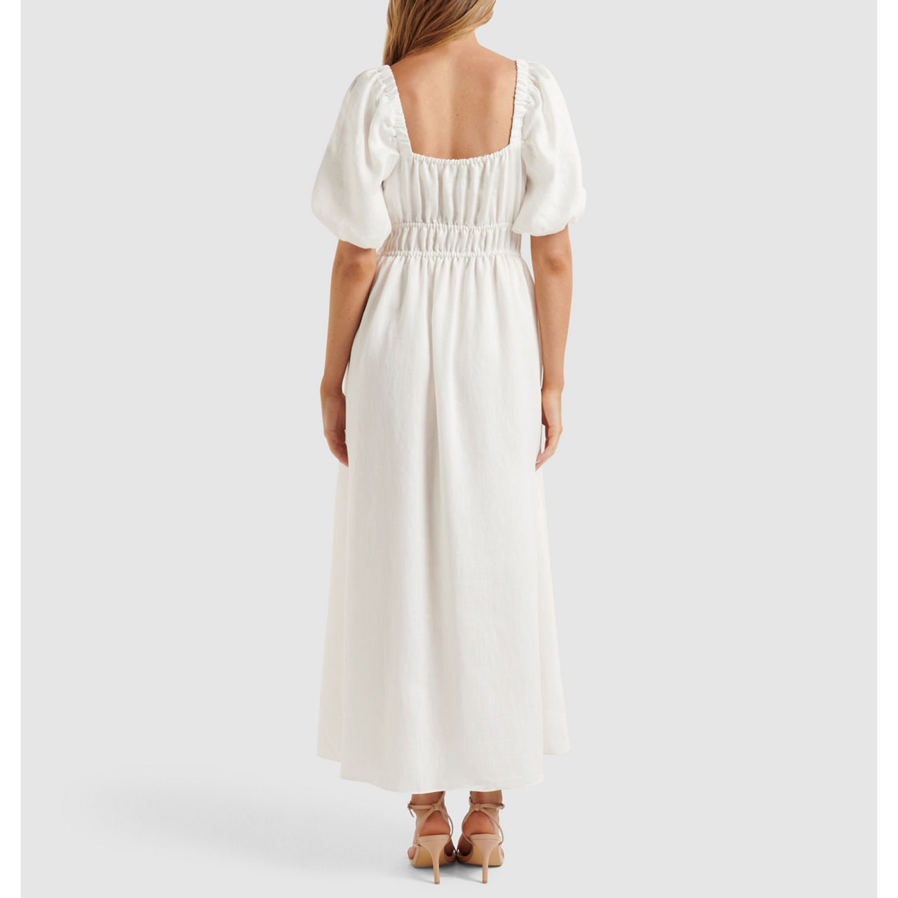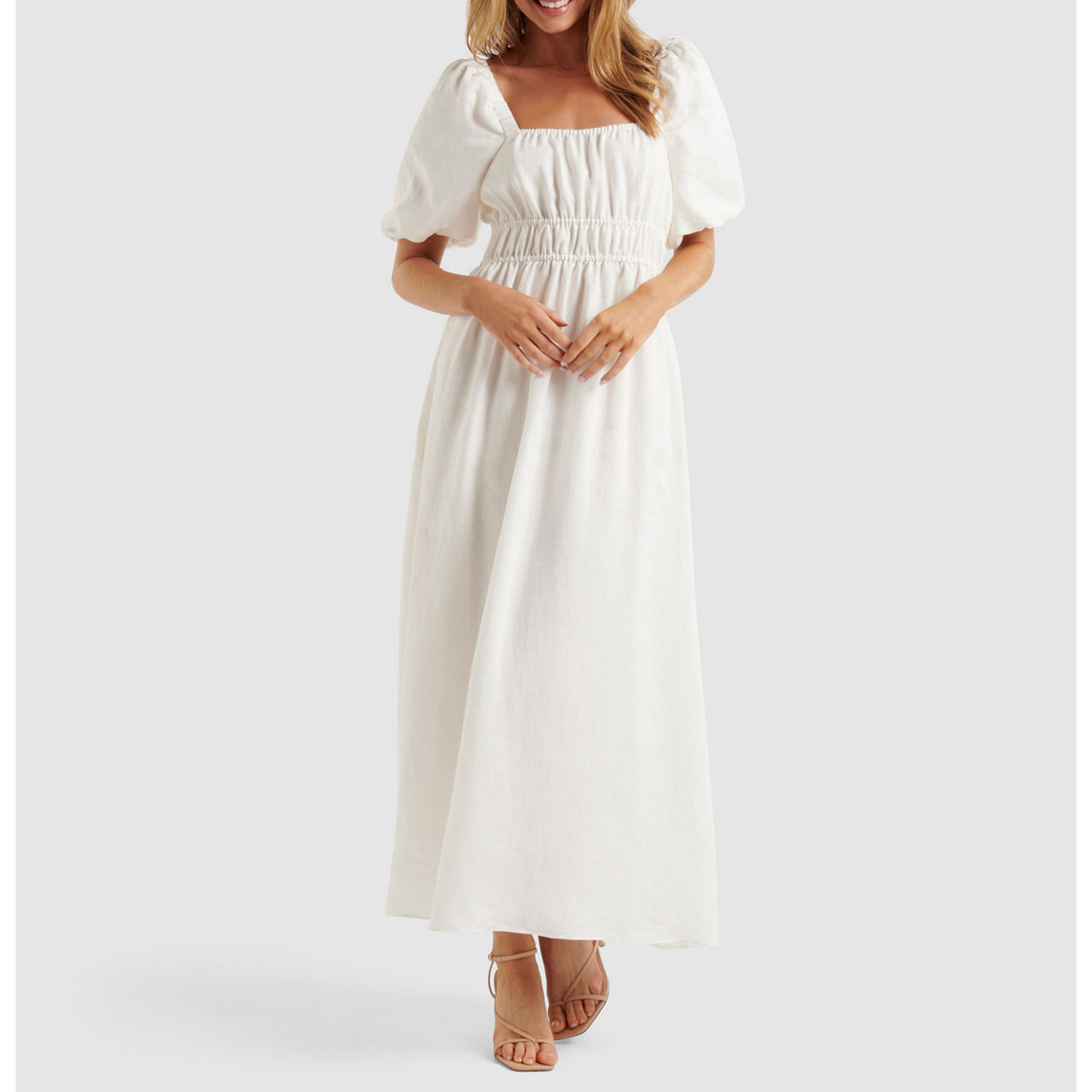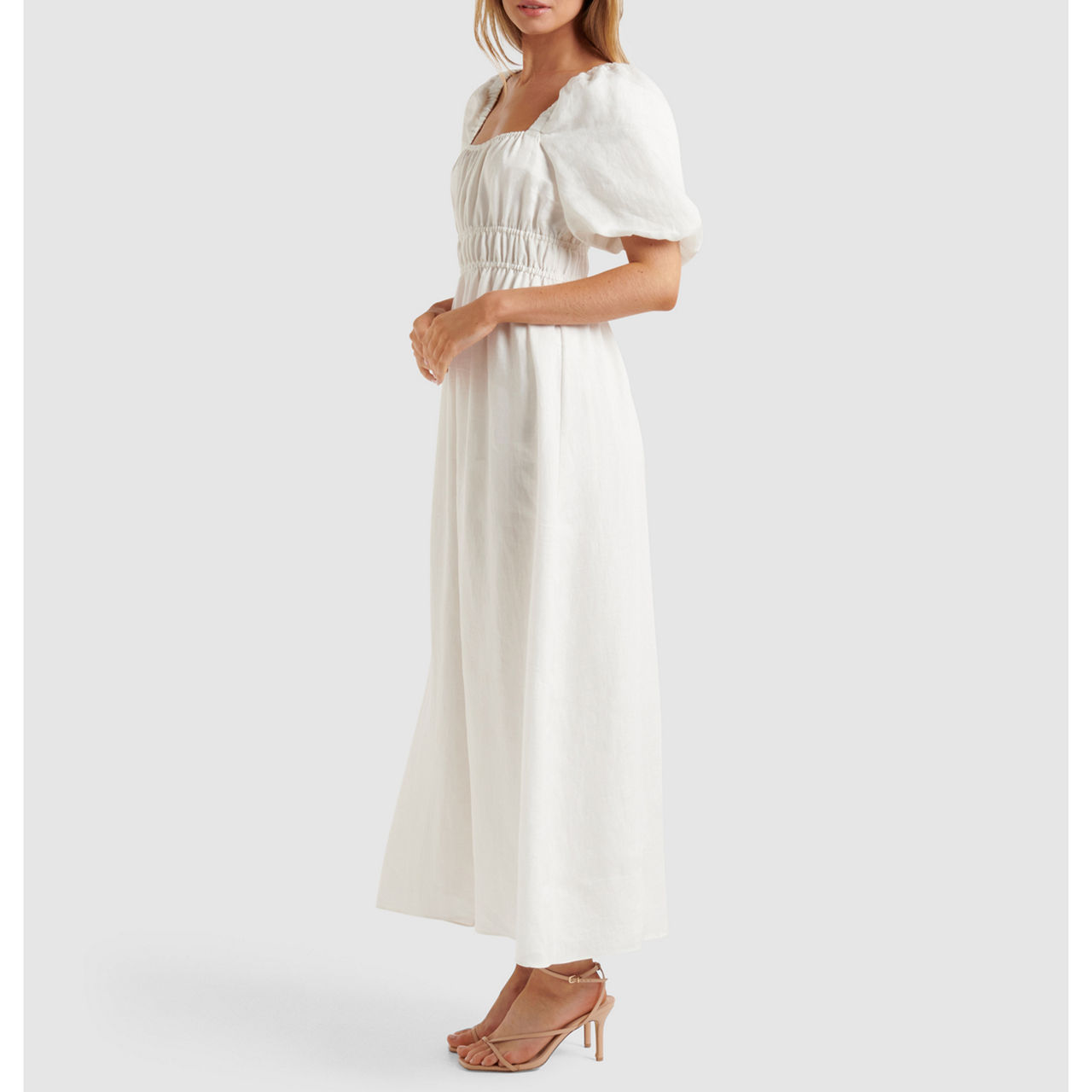 FOREVER NEW Nadia Square Neck Linen Midi Dress