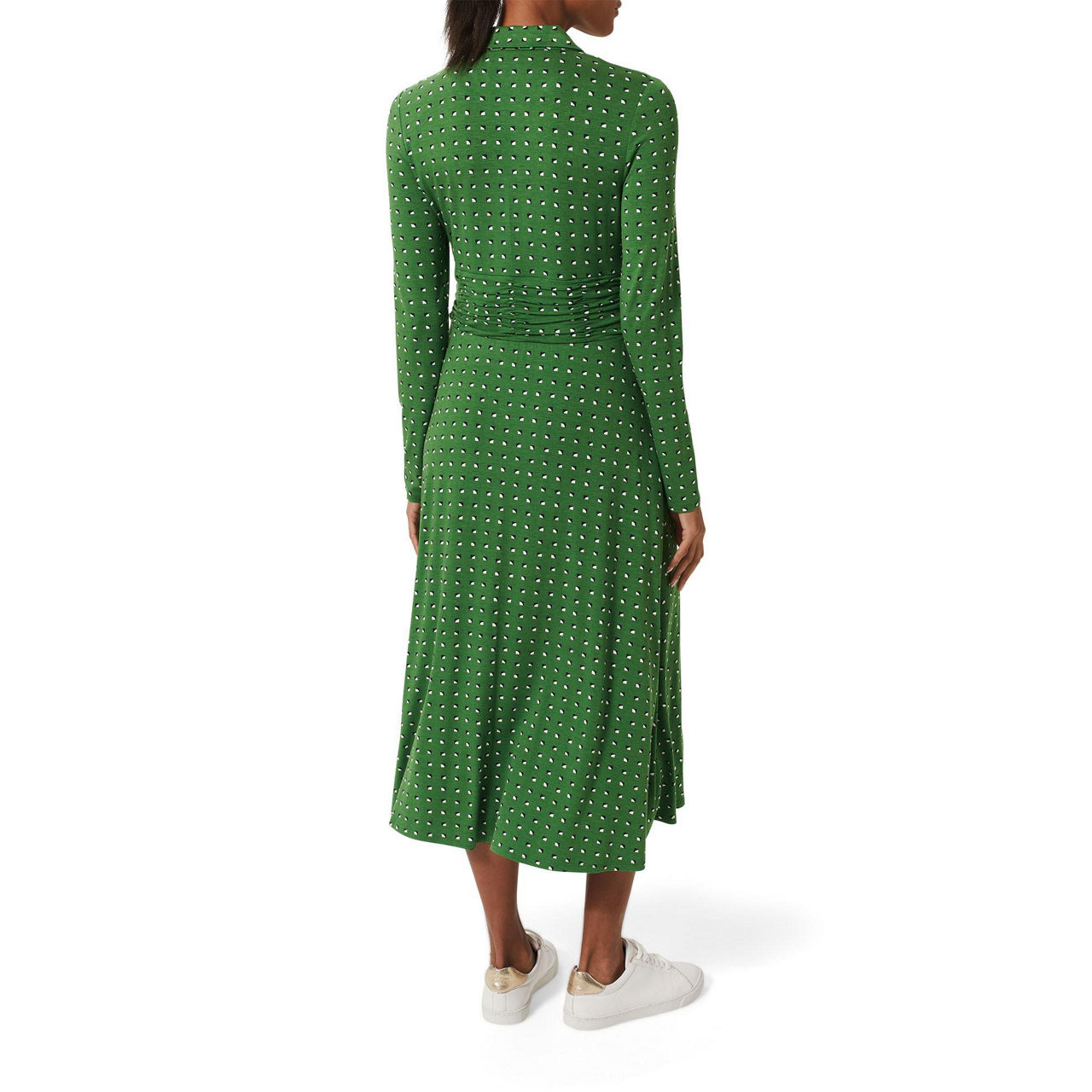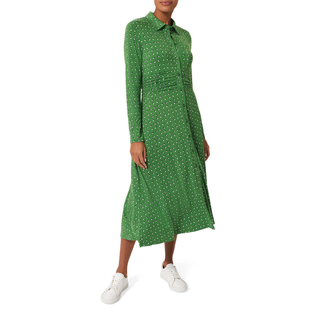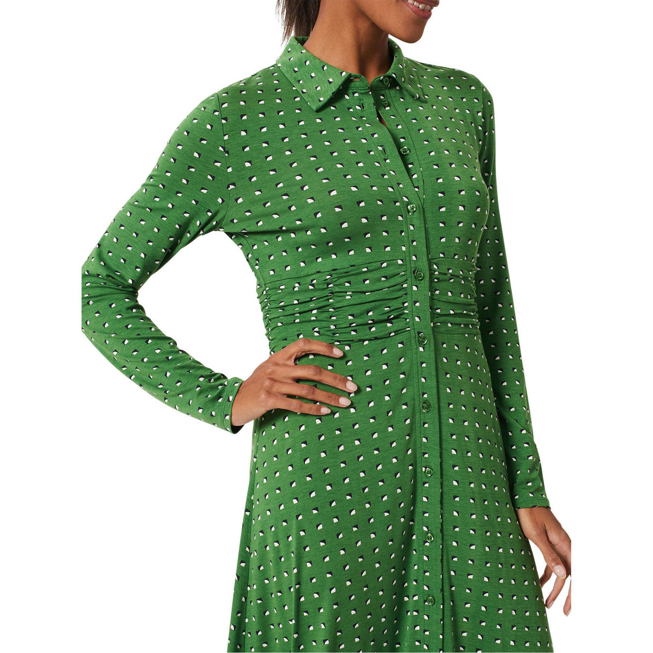The Nadina jersey dress from Hobbs is an easy-to-style everyday option you'll reach for time and again. Framed by a collared neckline with long sleeves, it features a gathered waist and is covered in a micro geometric print for a striking finish. Layer over a roll neck and tights during cooler weather, then style solo with sandals when temperatures rise.