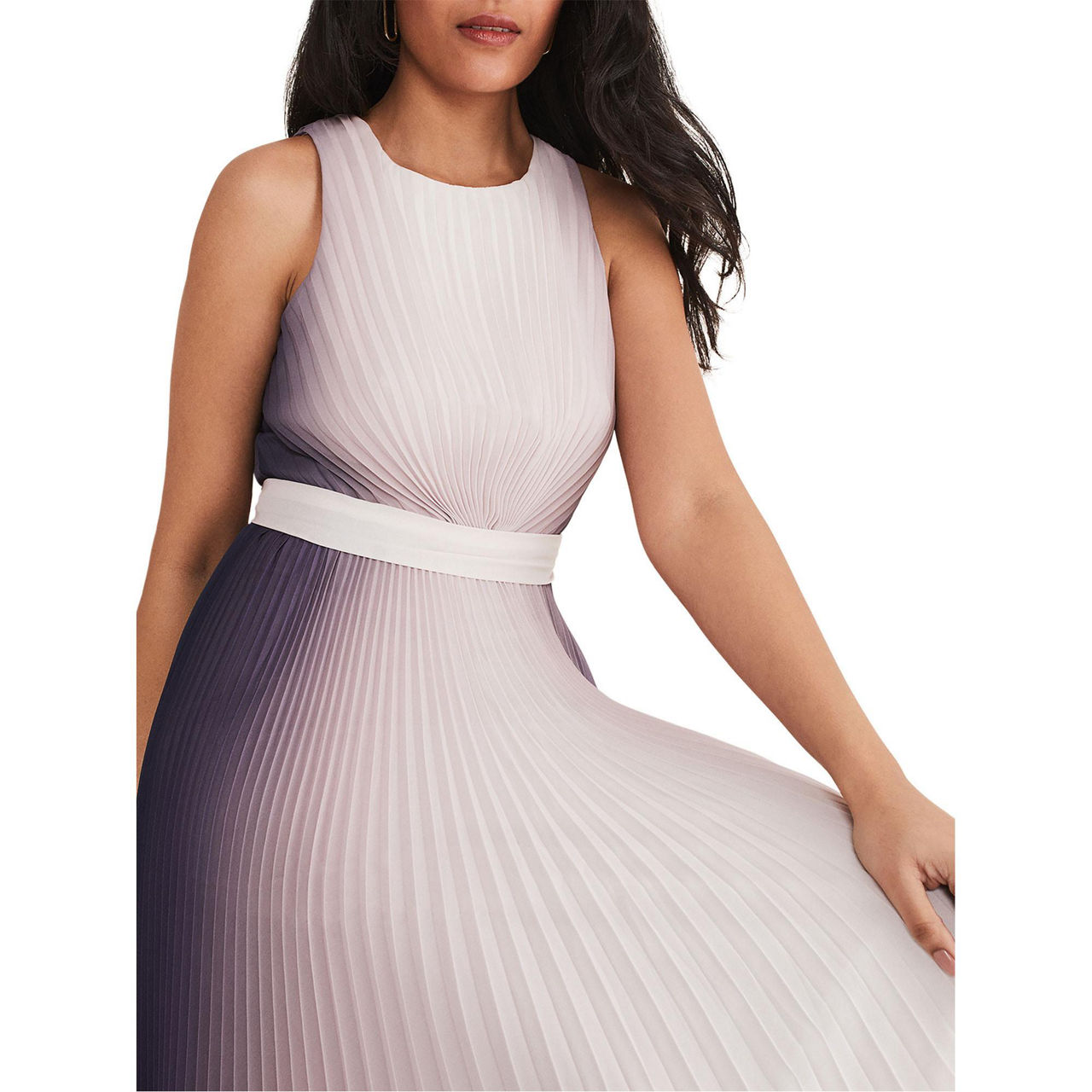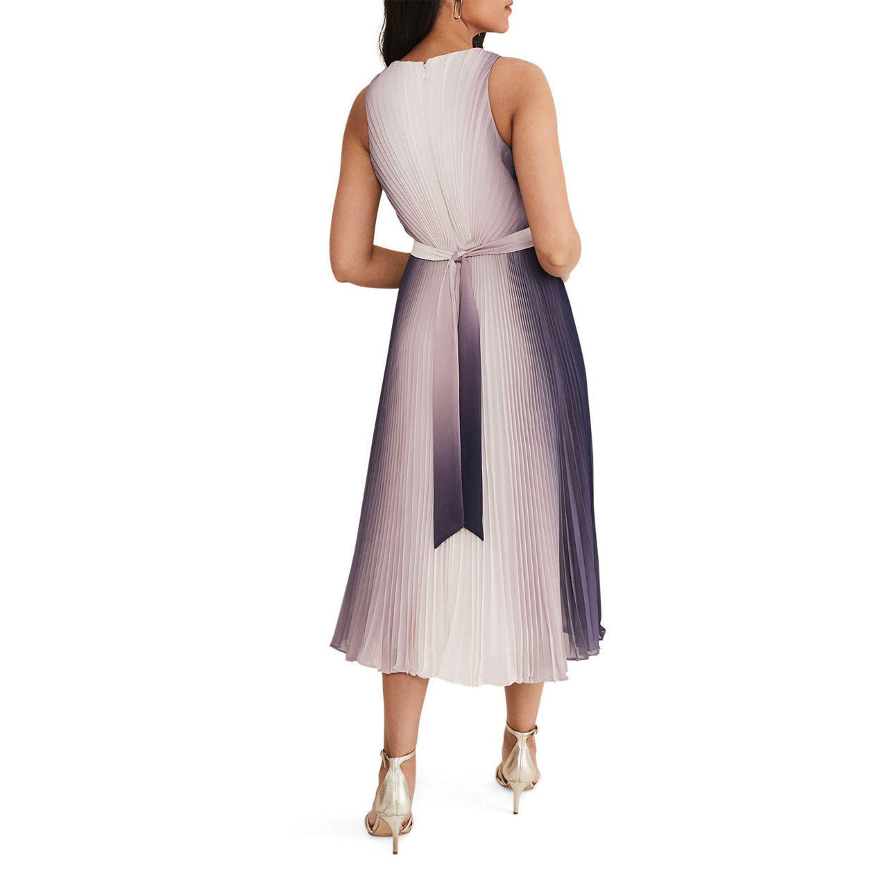 From the Petite Collection. The Simara dress will add something different to your wardrobe. Designed with a striking purple-to-cream ombre pattern and pleated texture throughout, the dress features a tie waistband and falls to a flowing skirt. Style with gold heels and a matching clutch bag at your next special event to turn heads.