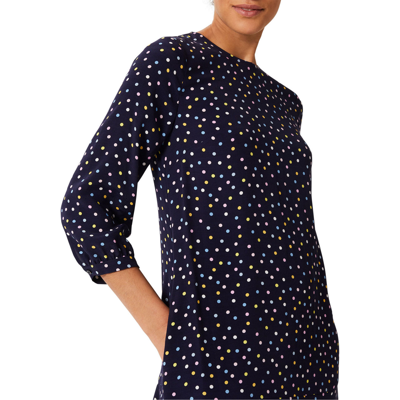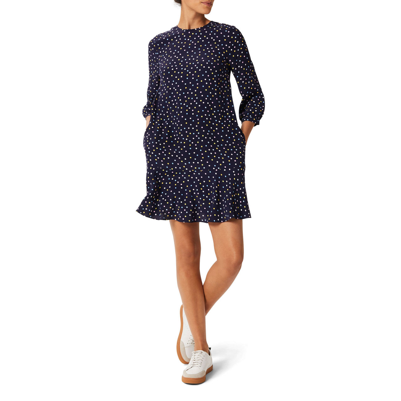 A playful addition to your wardrobe, the Prim dress from Hobbs is cut from a fluid fabric for elegant movement and all-day comfort. Working a fluted hem and a colourful polka dot print, team with ankle boots or trainers and keep things casual.