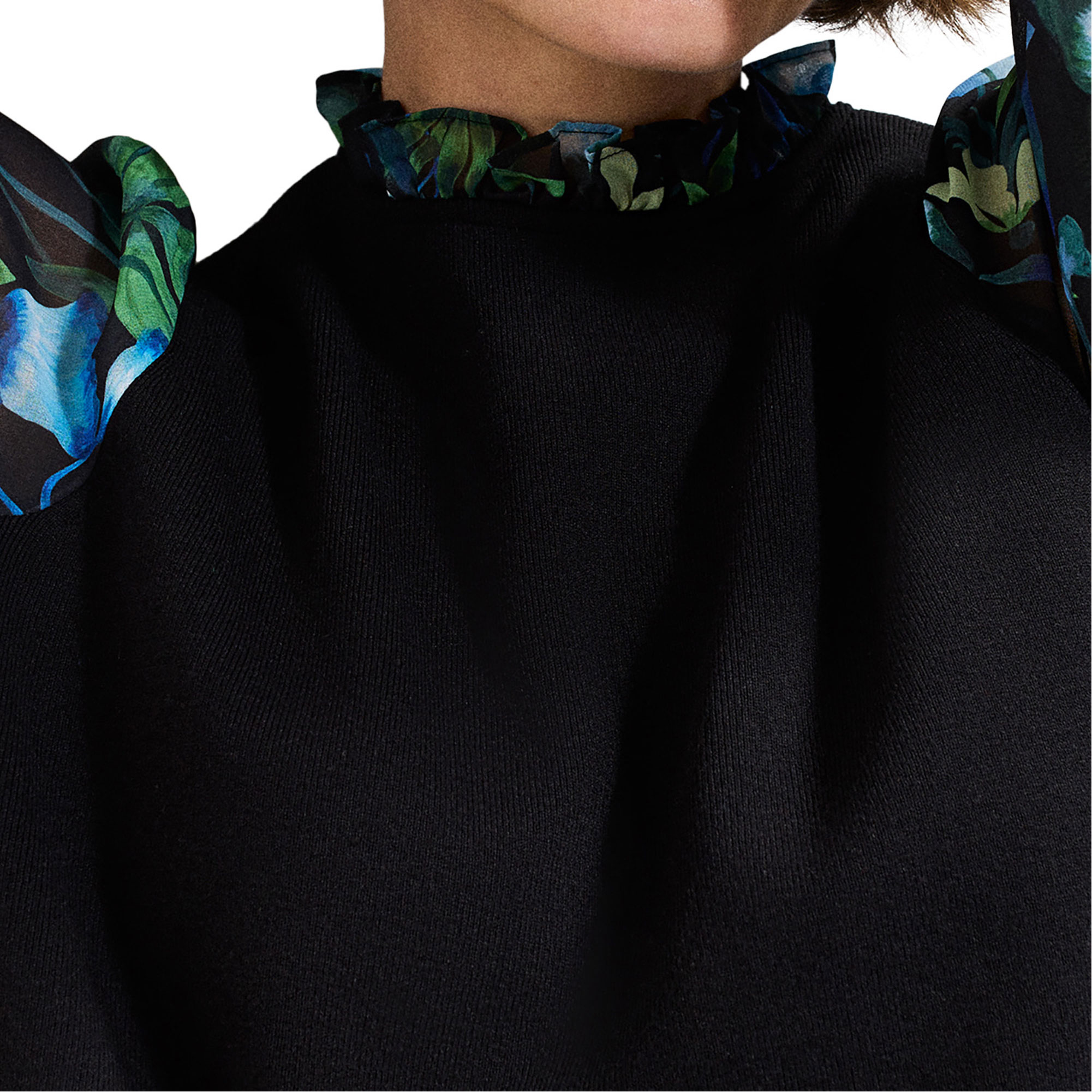 - Floral print, pull-on style, long sleeves, buttoned cuffs