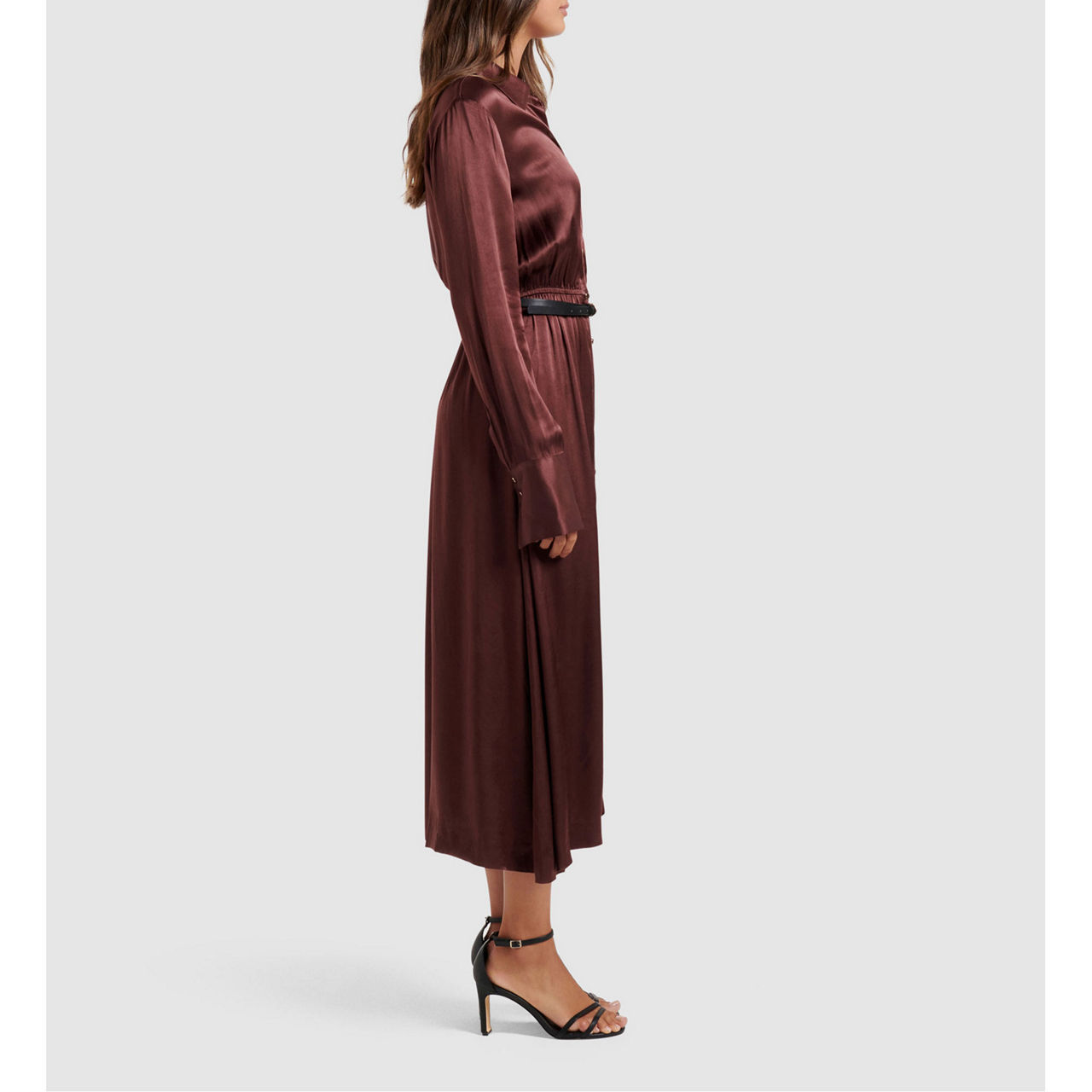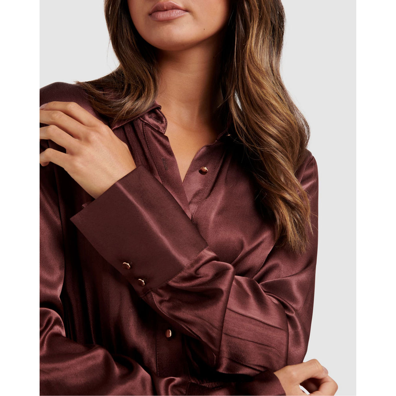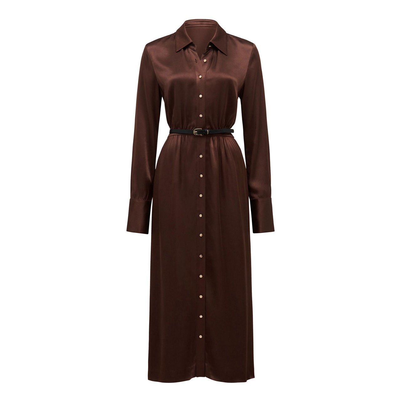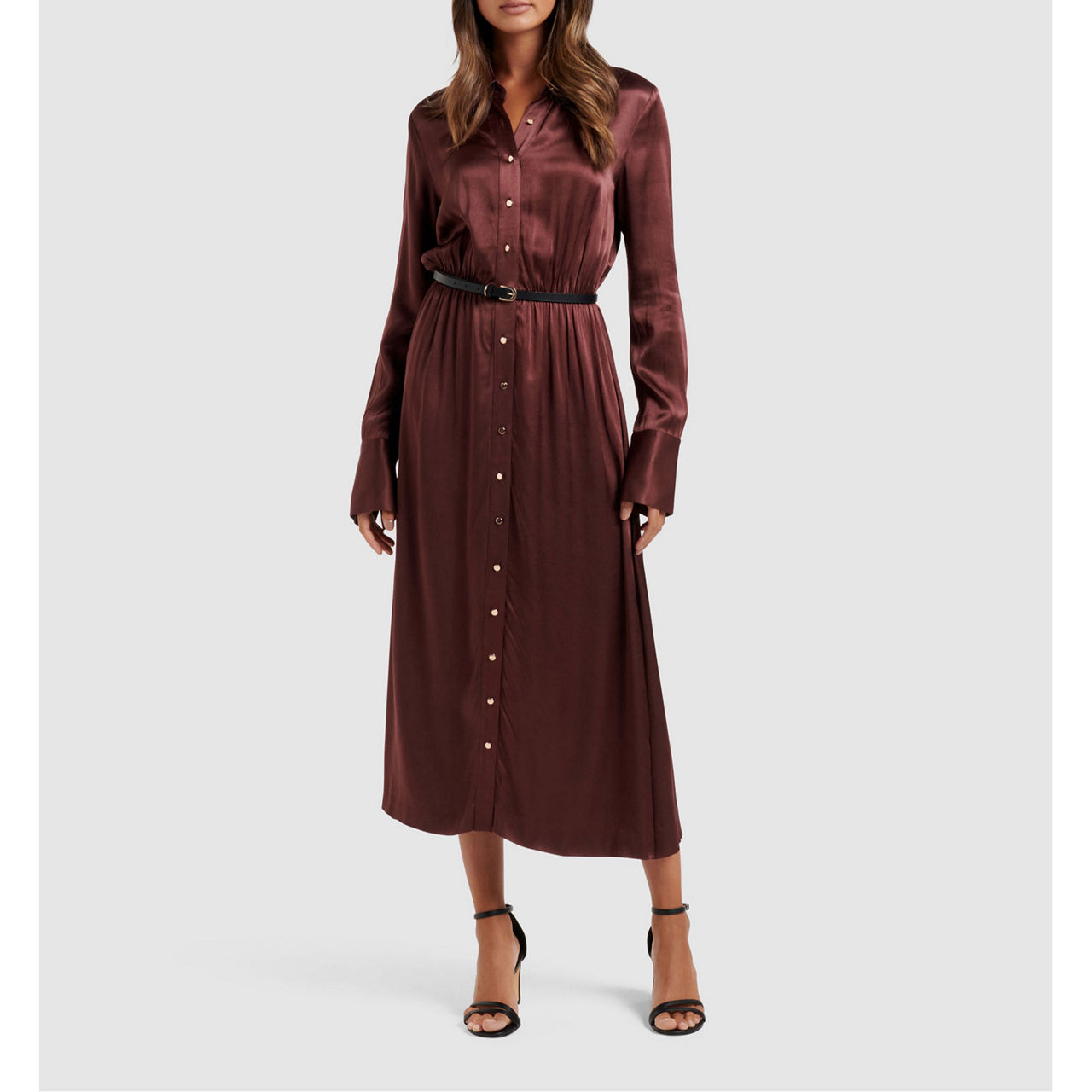 Feminine design meets trending style. The Tyra Satin Shirt Midi Dress from Forever New is the piece your wardrobe's been waiting for. In an on-trend shade of chocolate brown with a thin belt to the waist, add this sophisticated style to your weekly rotation.