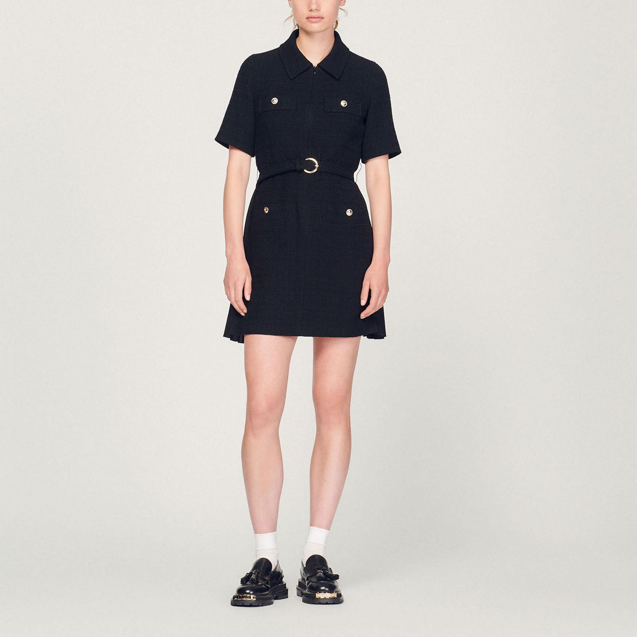 SANDRO The Sustainable Edit Zip Bouclé Dress