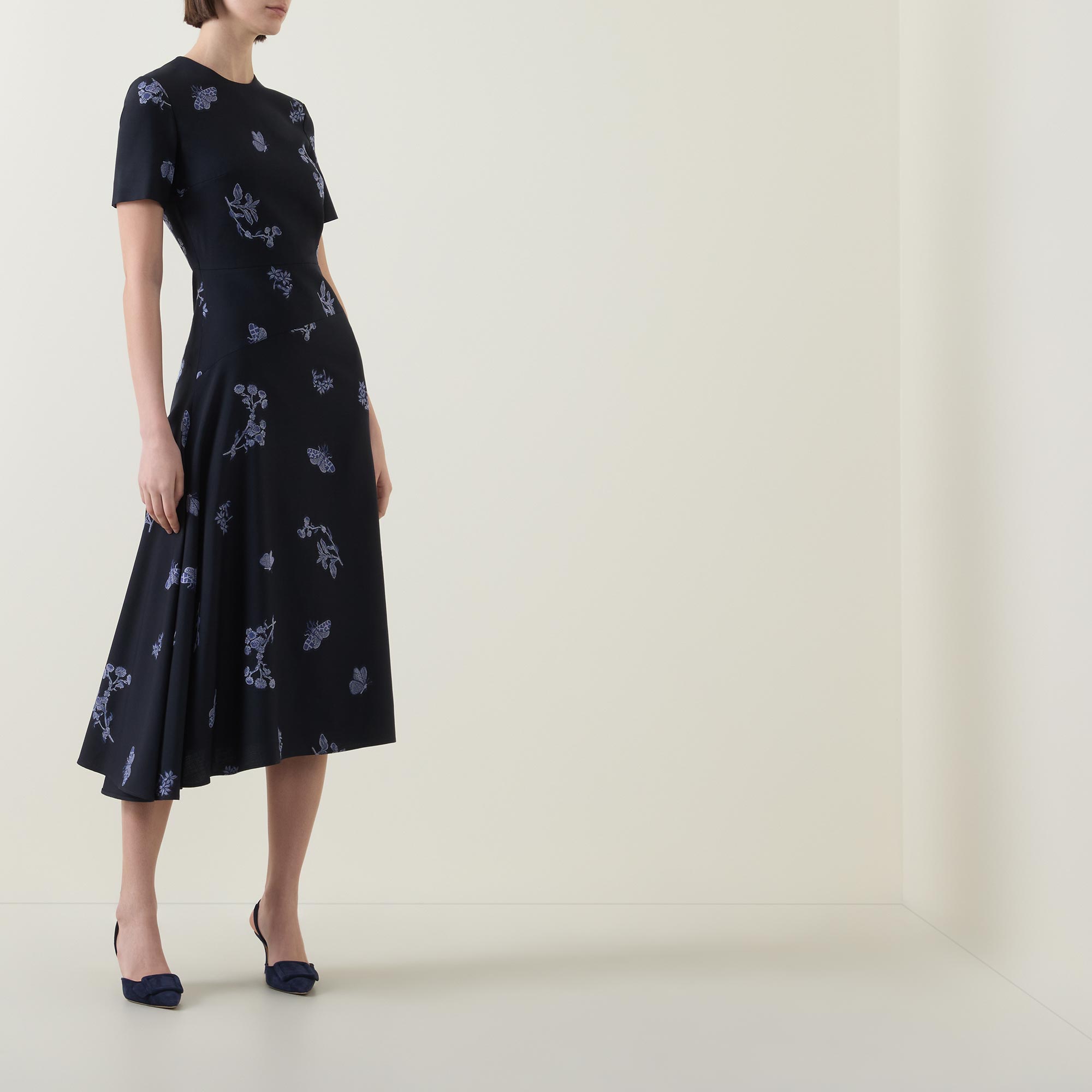 Erdem looks to Maria Sibylla Merian’s botanical studies, using them as the basis for many of the brand's floral prints this SS26 — take this dress. Framed by a crew neckline and short sleeves, it's fitted through the bodice and secures at the back with a concealed zip fastening, before falling to an asymmetric, midi length.