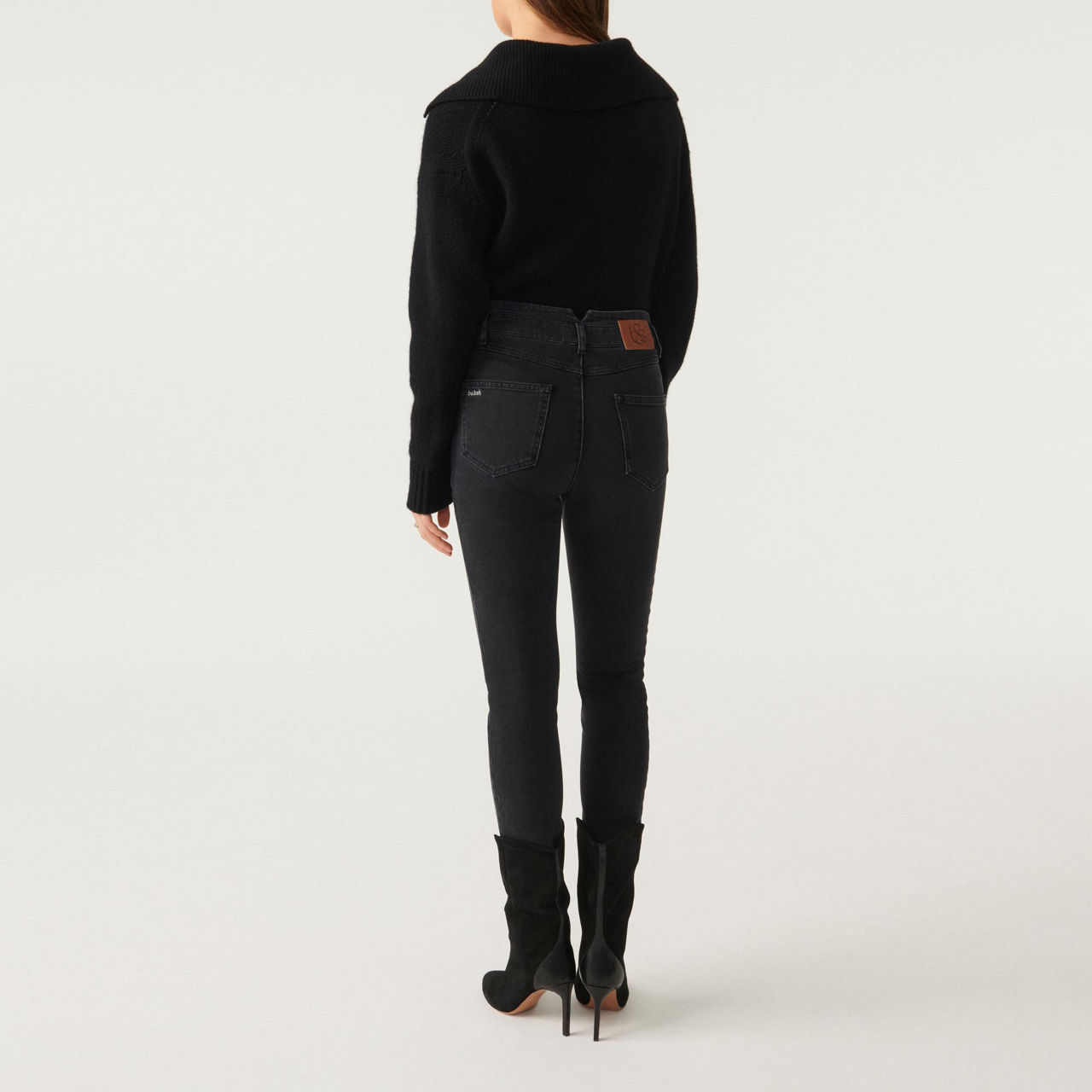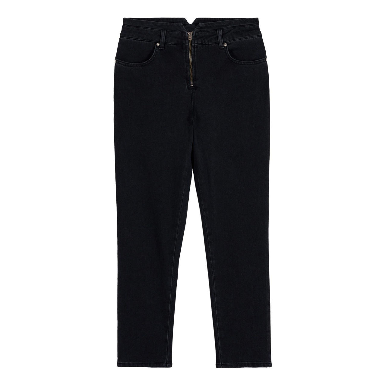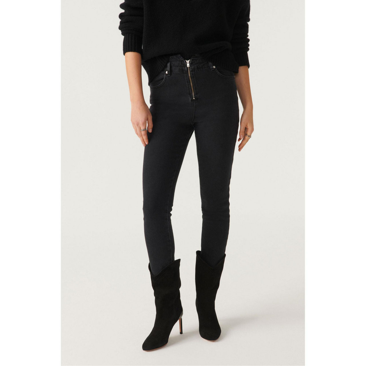 These slim-fit jeans are a high-waisted style with a visible self-blocking silver-tone metal zip and a stitched waistband with a triangle opening. The back pocket is embellished with a subtle embroidered ba&sh logo. The denim contains elastane for a softer feel and you'll love the fact that their 7/8 length shows off the ankles.