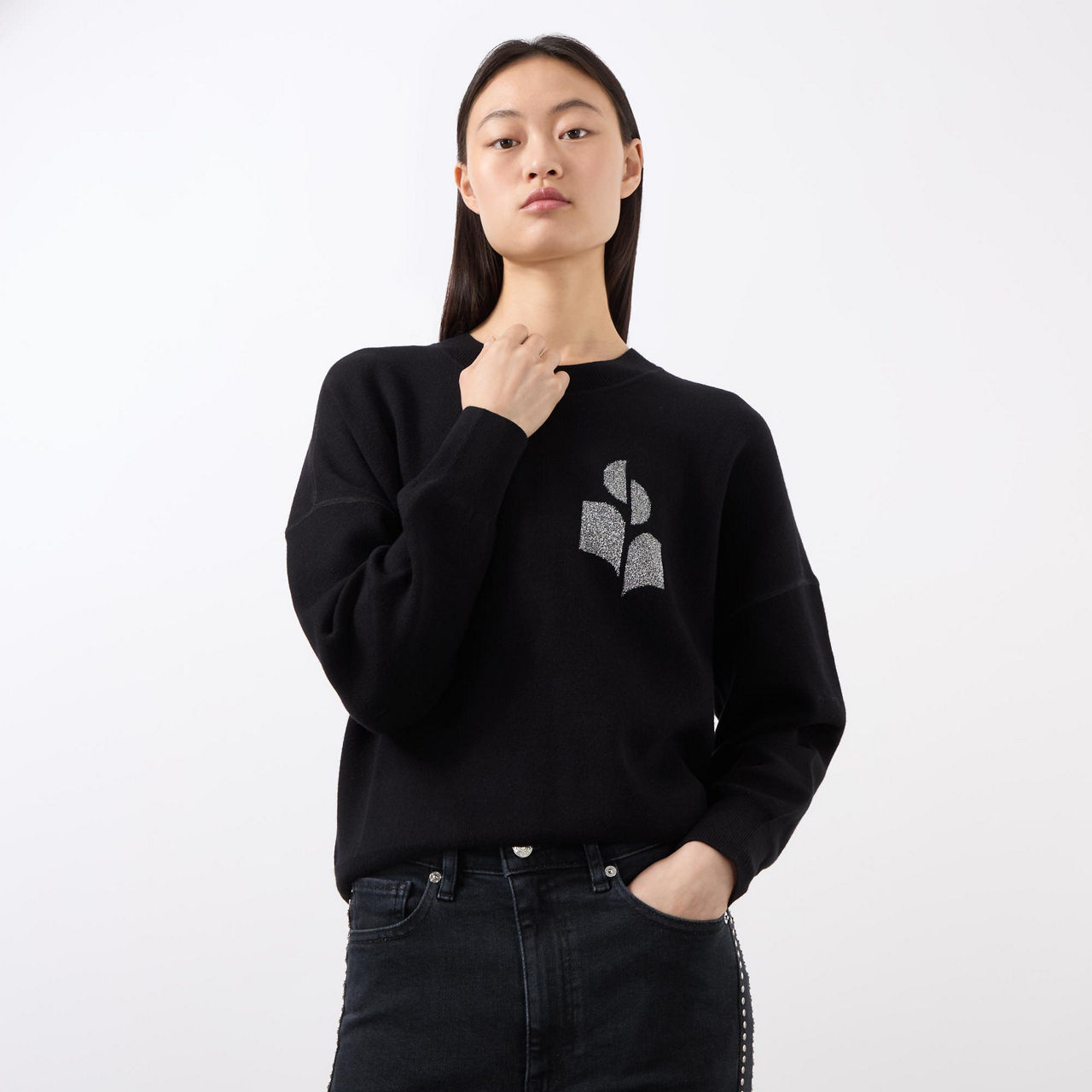 - Long sleeves, round neck, dropped shoulders, ribbed trims, logo graphic on front