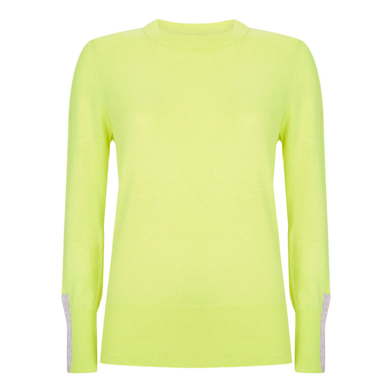 Spun with a touch of cashmere for softness, this slim jumper is dyed in a bold lime-yellow hue that will pair effortlessly with the neutrals in your wardrobe - a very wearable take on the neon trend that everyone's loving this season. It's framed by a neat crew neckline, deep ribbed trims and silver-grey buttoned cuffs. Tuck yours into high-waisted trousers and skirts this season.