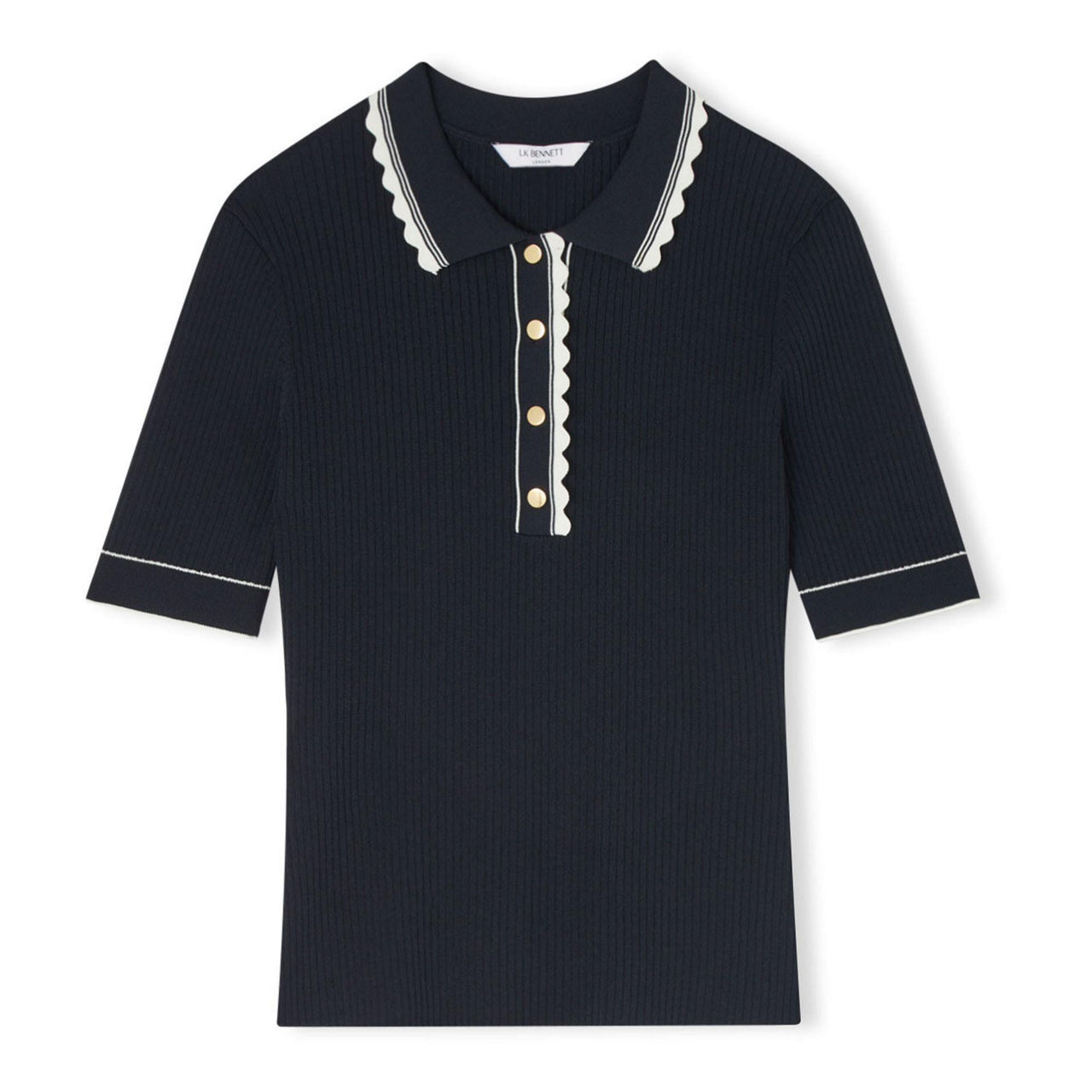 Ideal for smart spring dressing, LK Bennett's Maeve top works a stretch knit construction with playful feminine details. Finished with scallop trims to the collar and button placket, simply team with denim or a pencil skirt for a polished finish.
