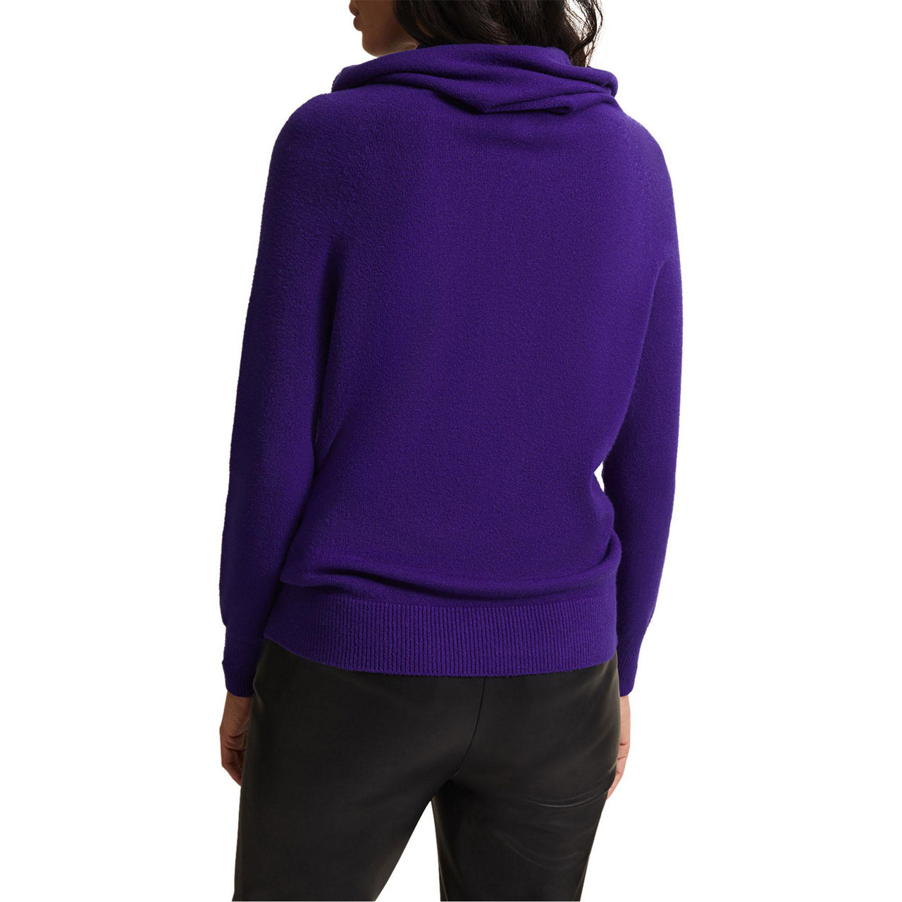 - Roll neckline, long sleeves, straight hemline, knit structure