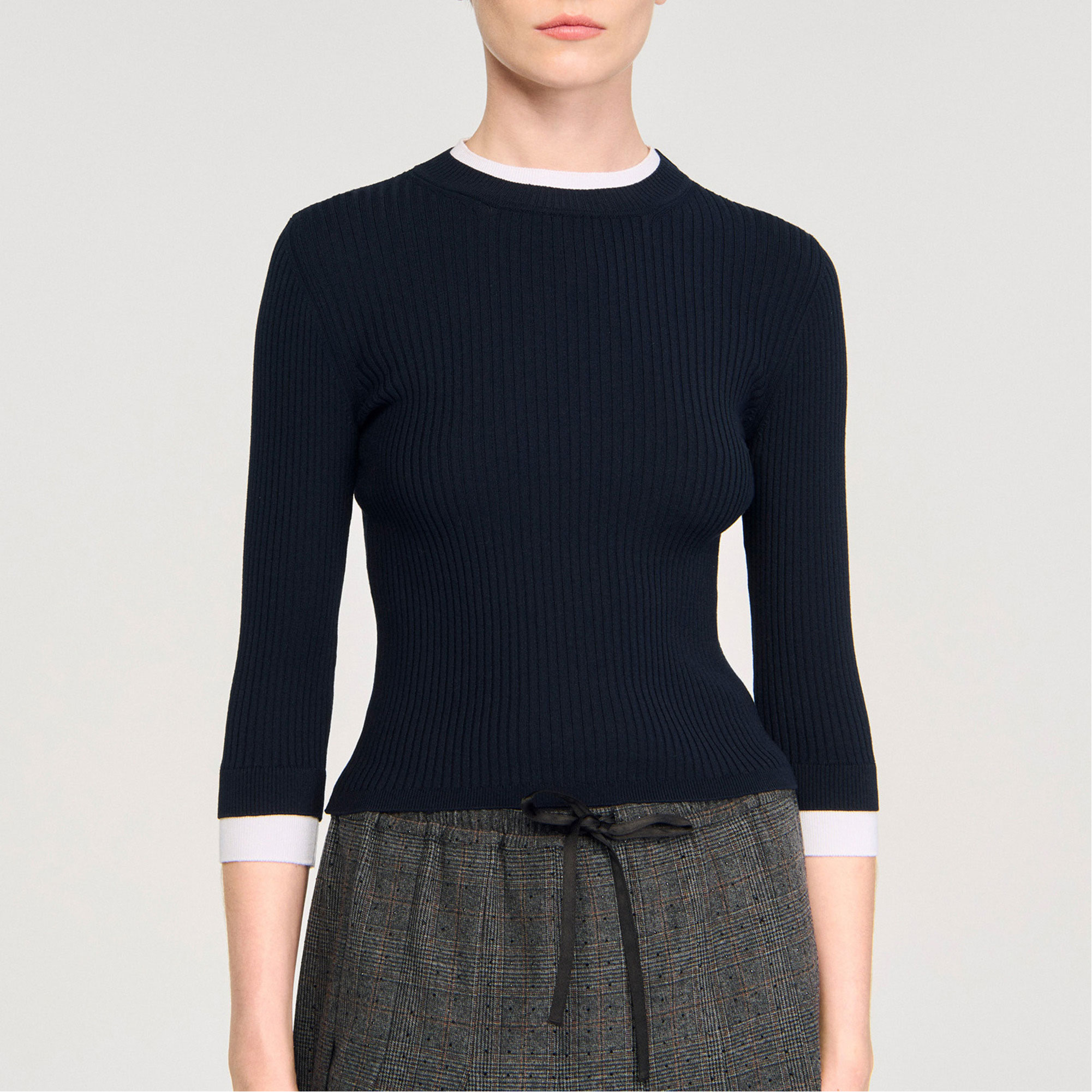 - Ribbed knit, round neck, long sleeves with trompe l'œil contrast trim, logo embroidery