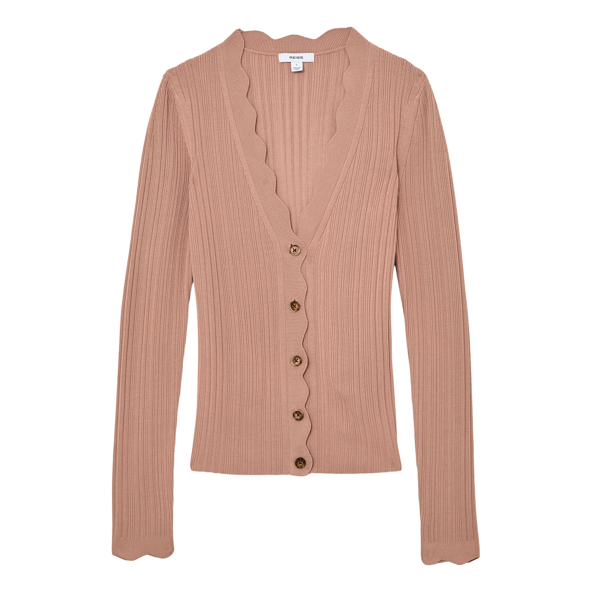 REISS Vinny Rib-Knit Scallop-Trim Cardigan