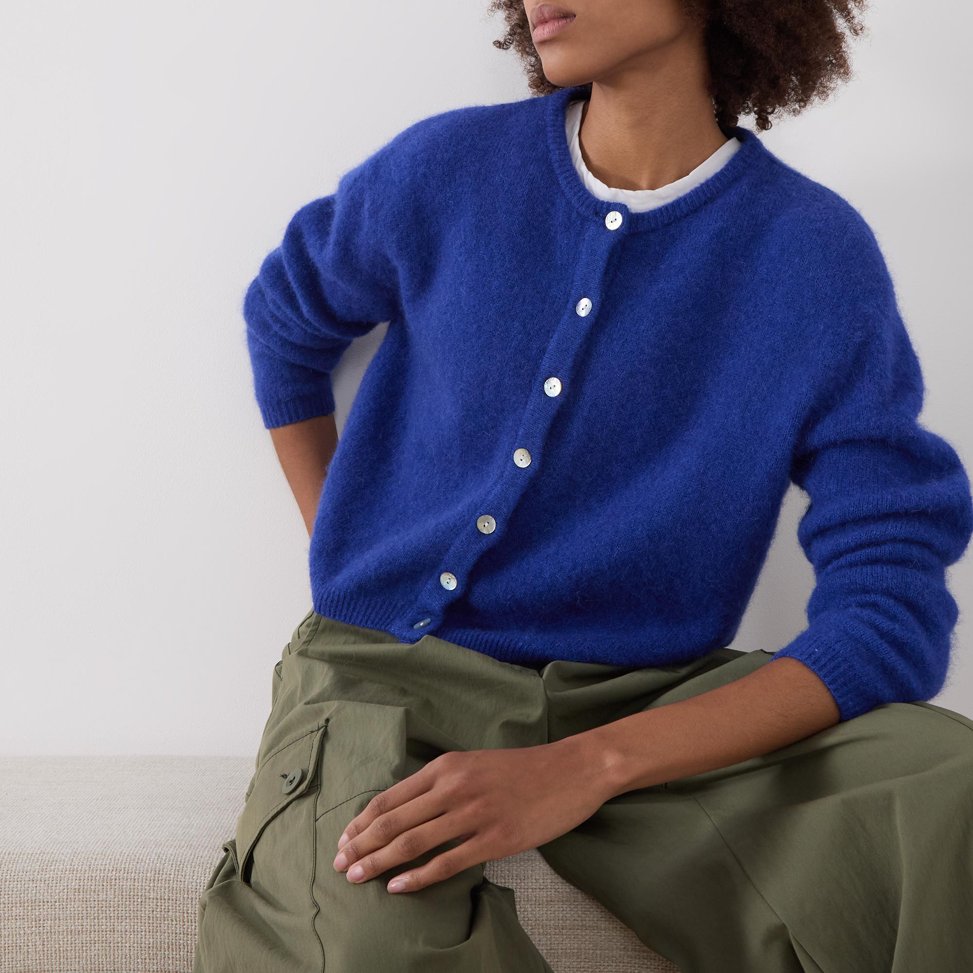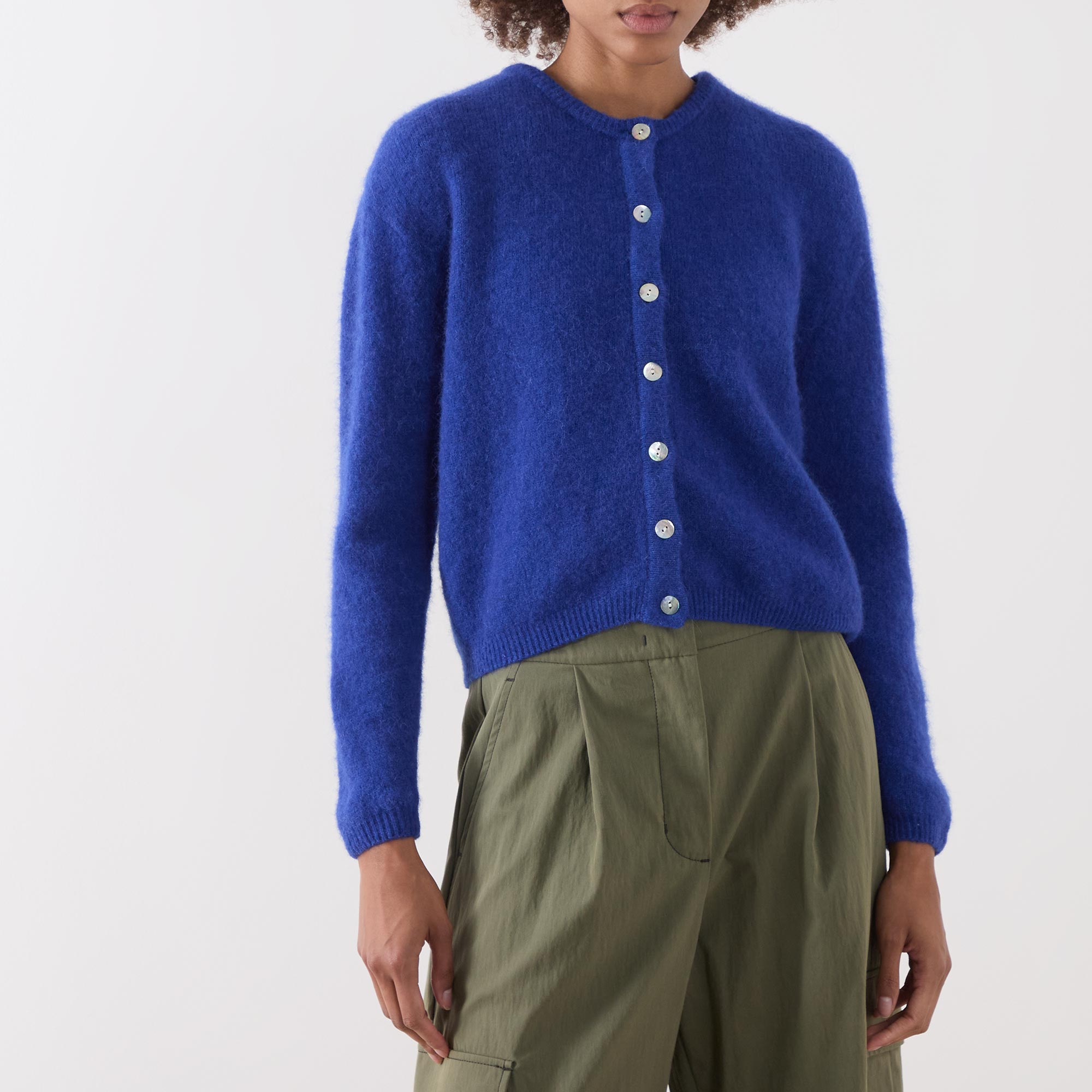 - Round neckline, long sleeves, button fastening, ribbed trims, soft knitted finish