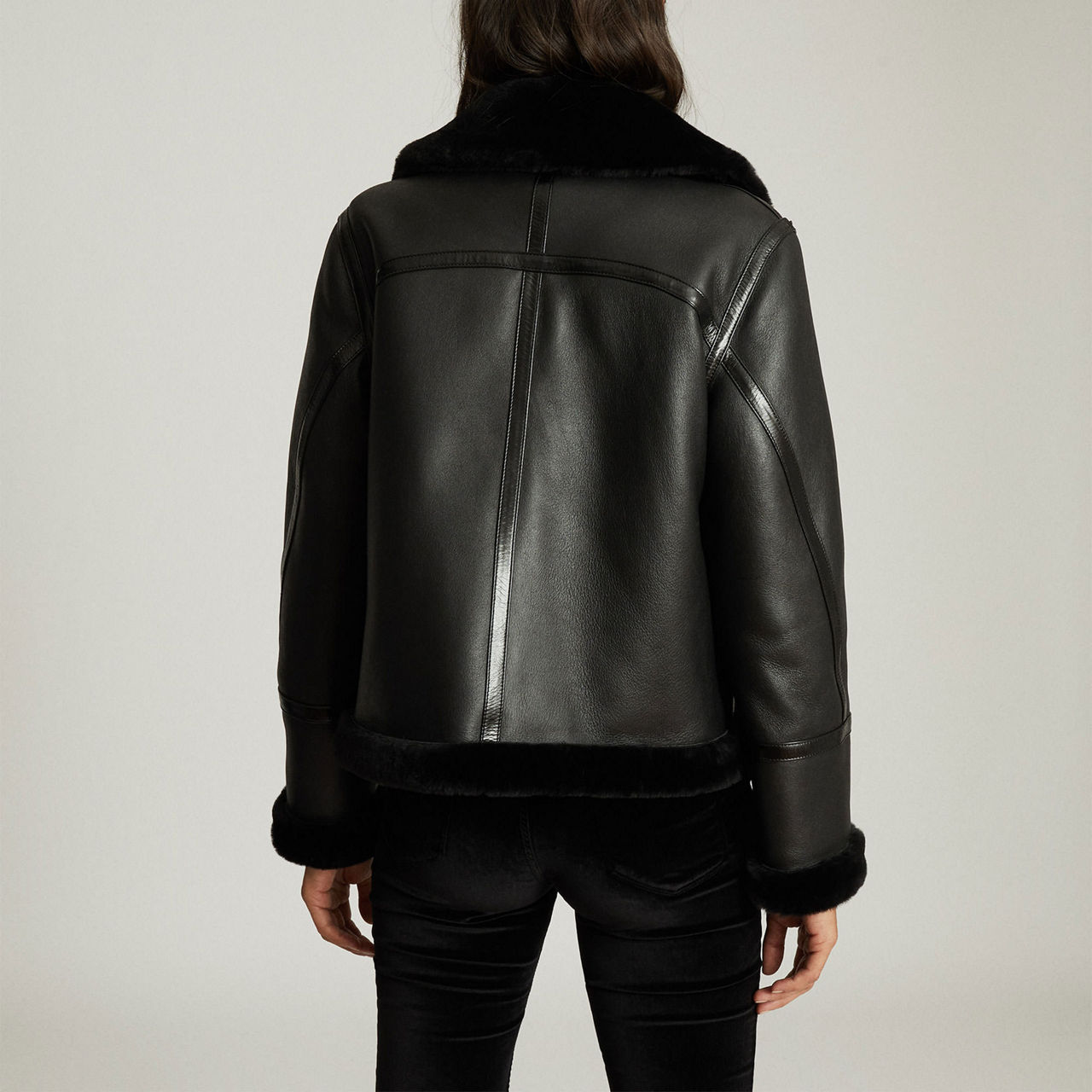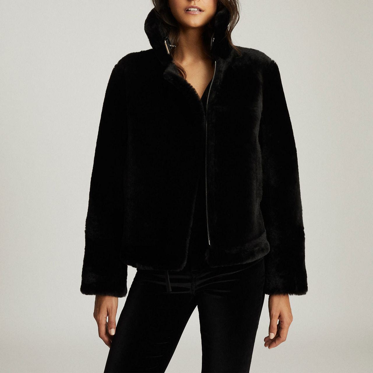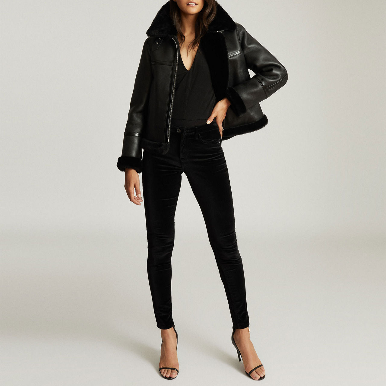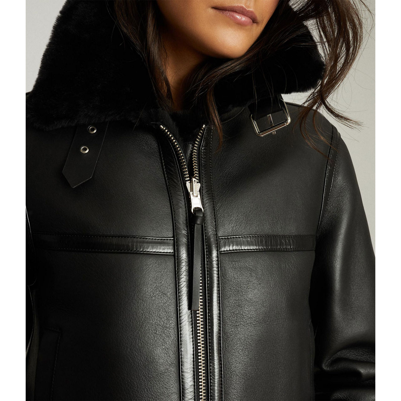 Unafraid to stand out from the crowd, Reiss' Margot jacket works a dark Spanish Merino shearling - giving it a cool, chic element that perfectly complements the jacket's warm exterior. Hardy enough for any challenging season, a large collar and lengthened trimming slim the hips and emphasis the piece's trend-leading look.