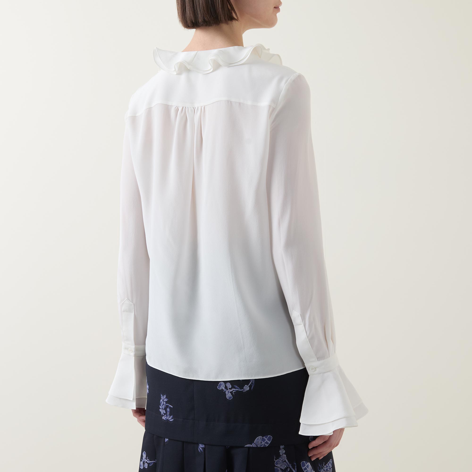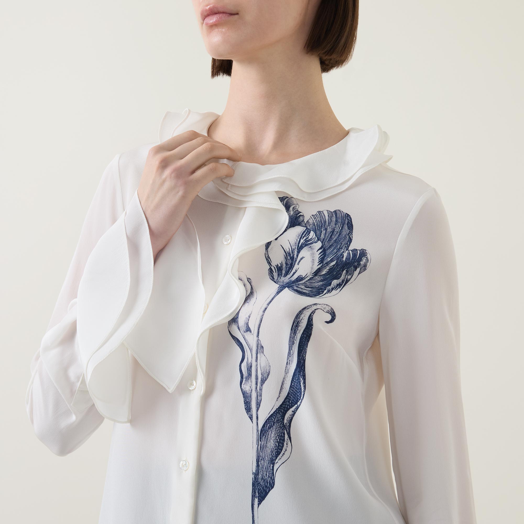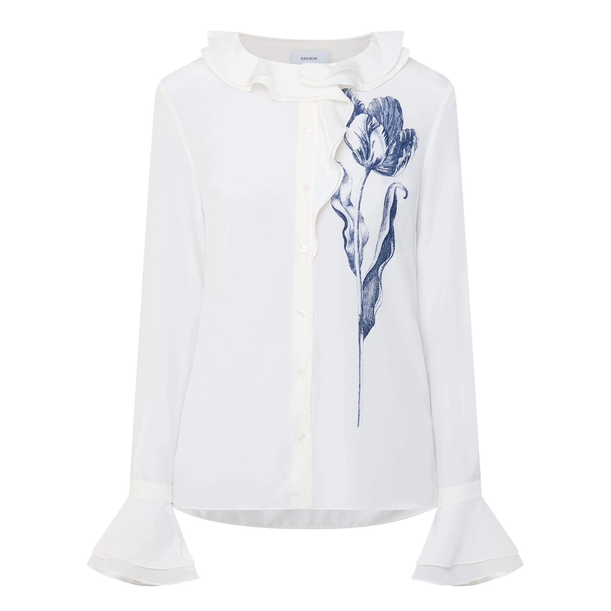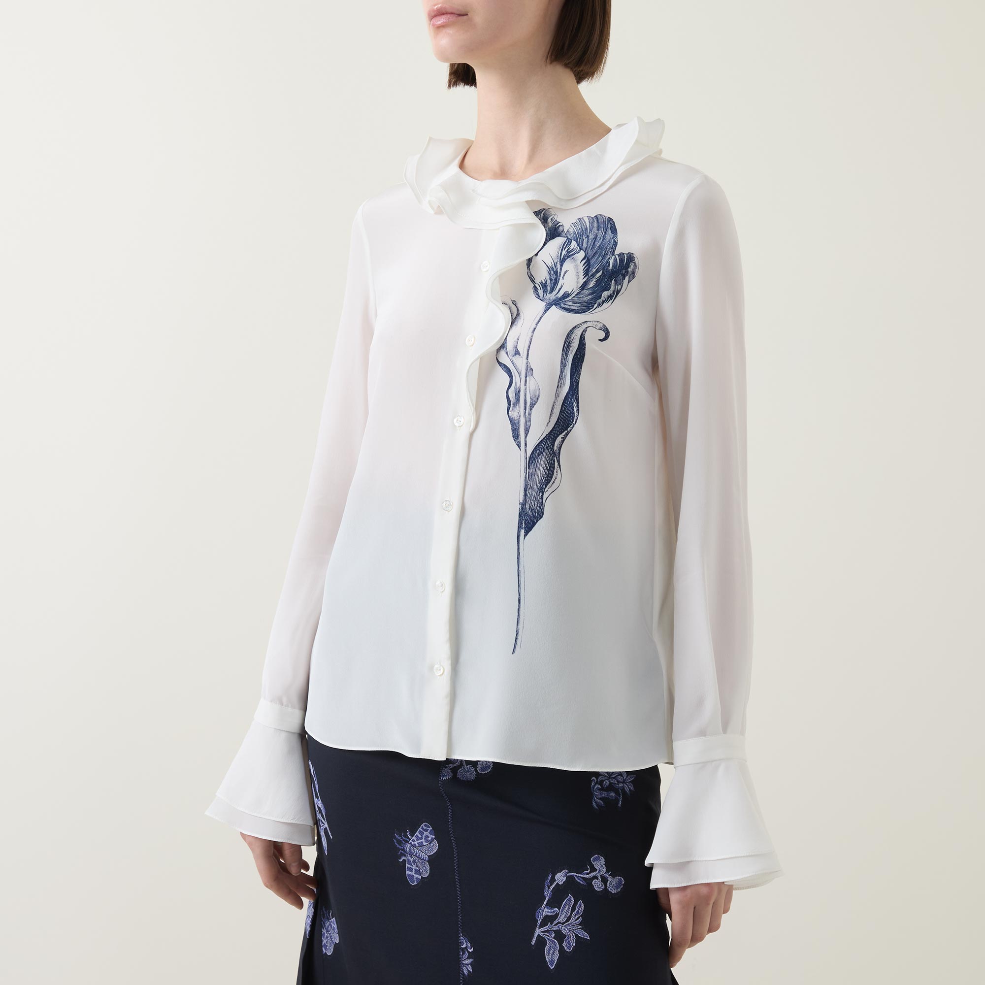 This SS26, Erdem delves into the work of 17th Century botanical illustrator, Maria Sibylla Merian, seen here in the design of this blouse. Crafted from pure silk and cut to a relaxed silhouette, it's framed by a ruffle collar and features long sleeves with flared cuffs, while securing at the front with a concealed placket fastening before finishing with a large placement tulip print along the front.