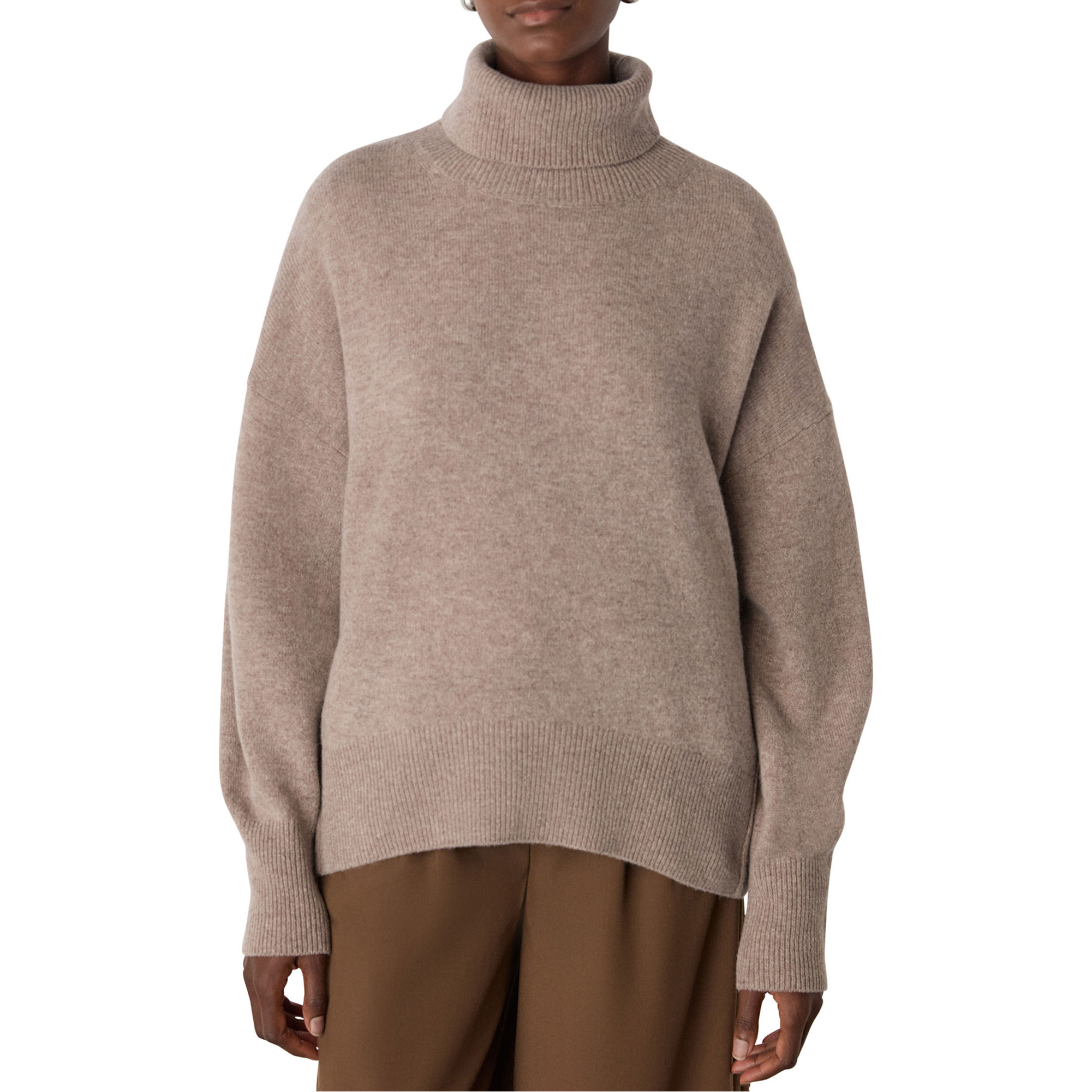 WHISTLES Roll Curved Hem Knit Sweater