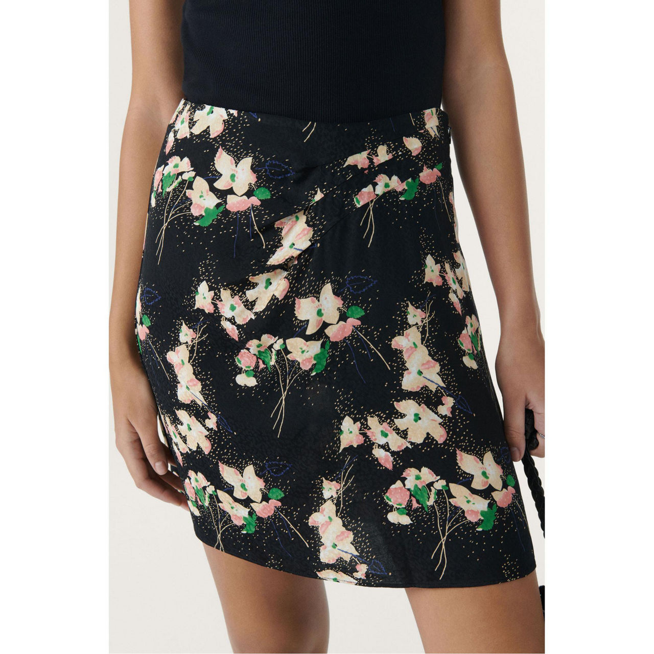 - Mini skirt, draped front, printed fabric