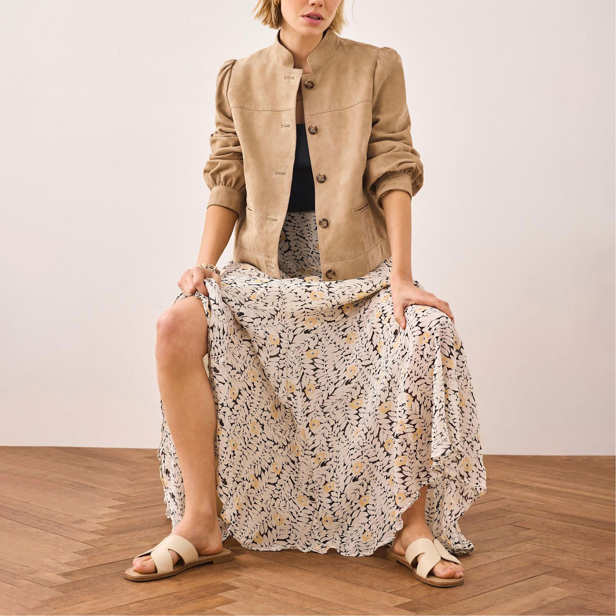 - Zip fastening, floral print, maxi length
