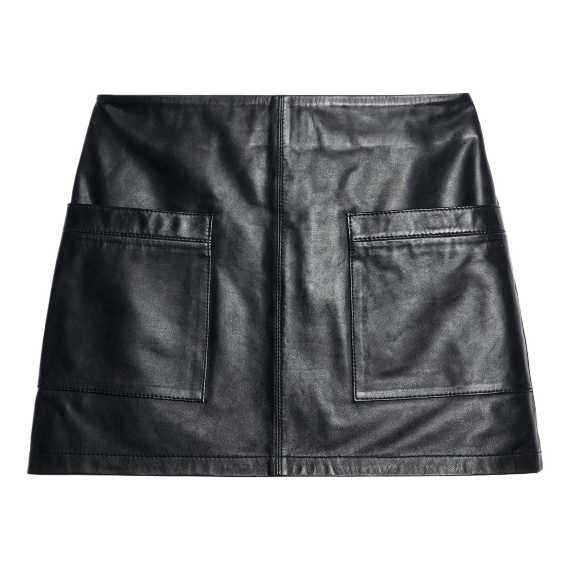 - Pockets with zip fastenings, mini length, smooth leather finish