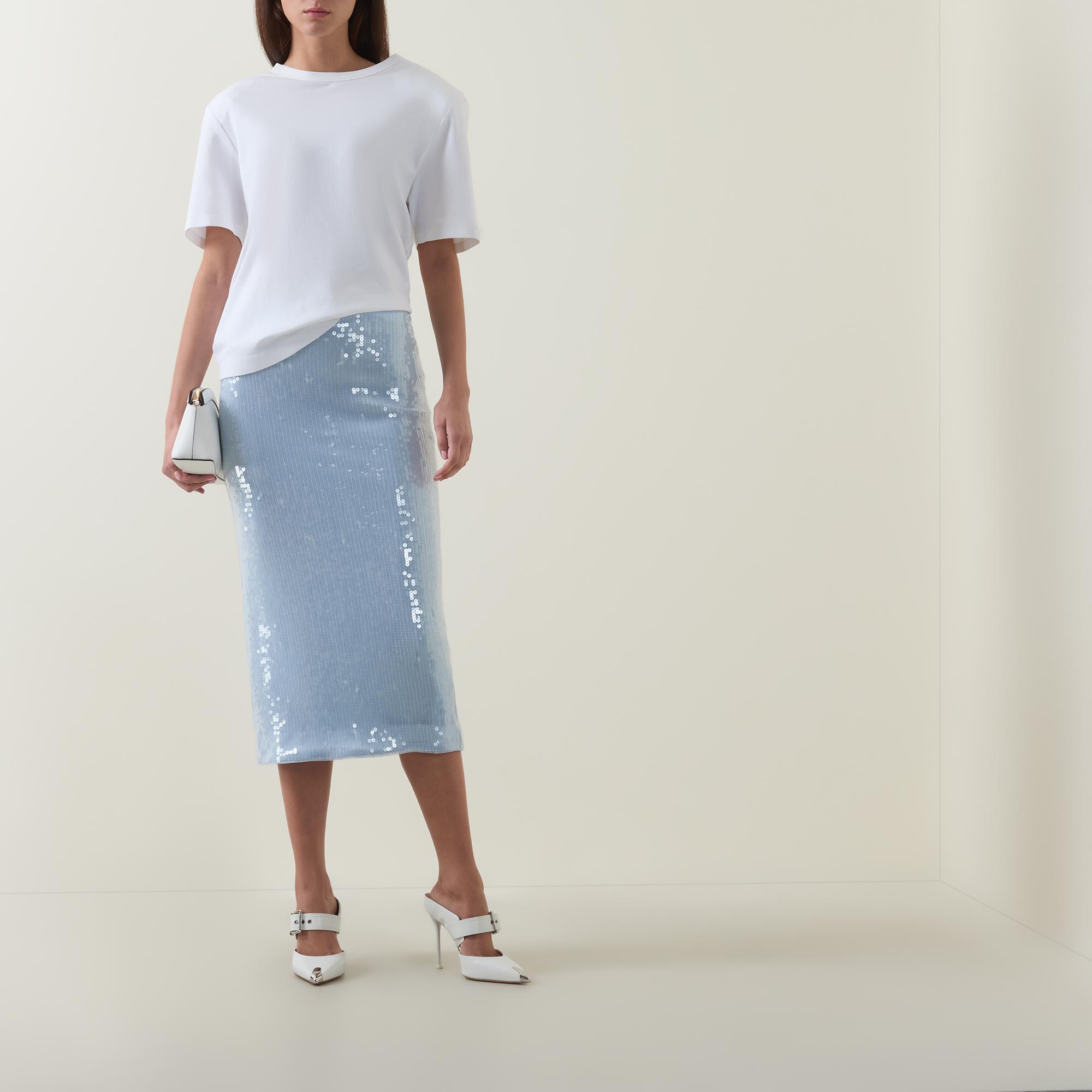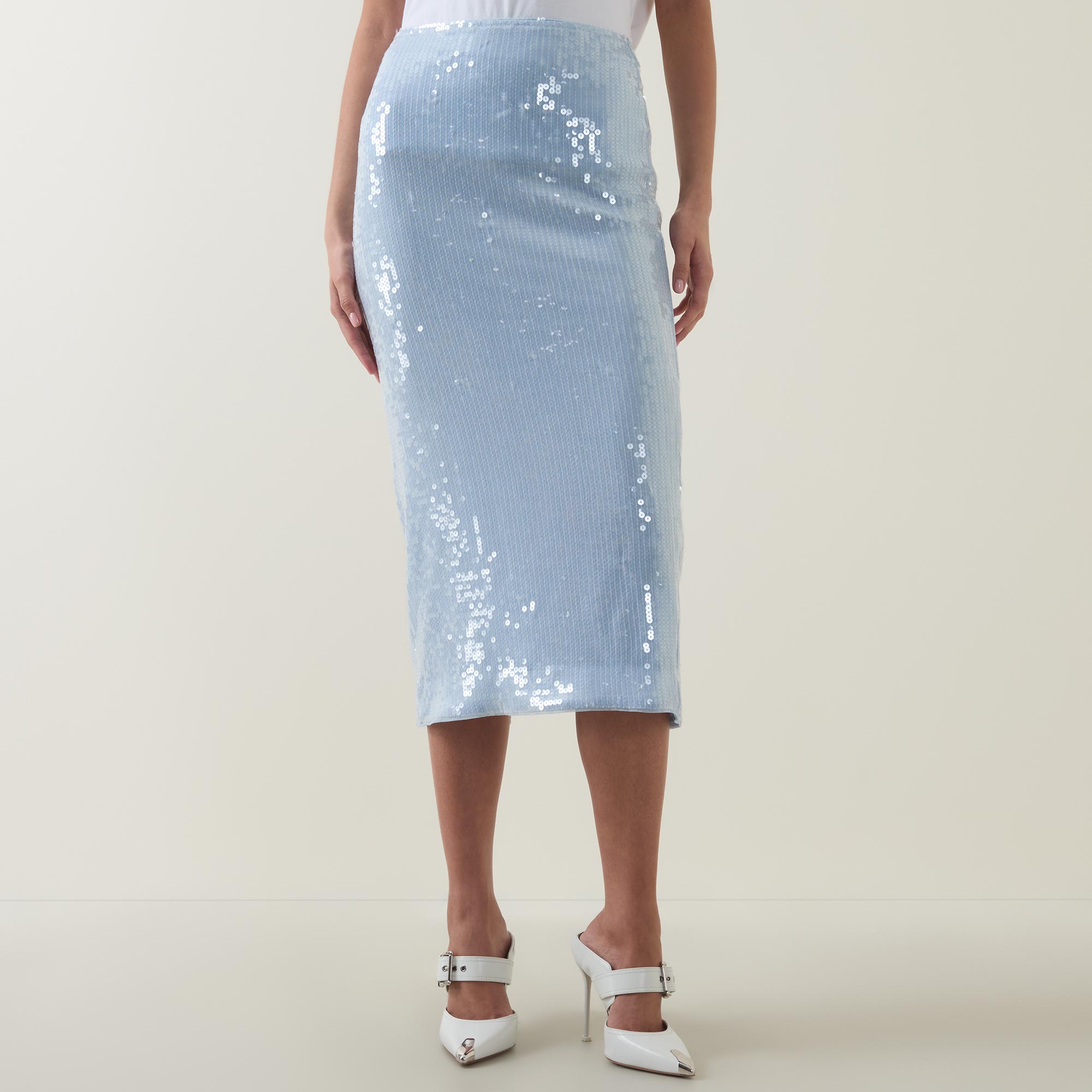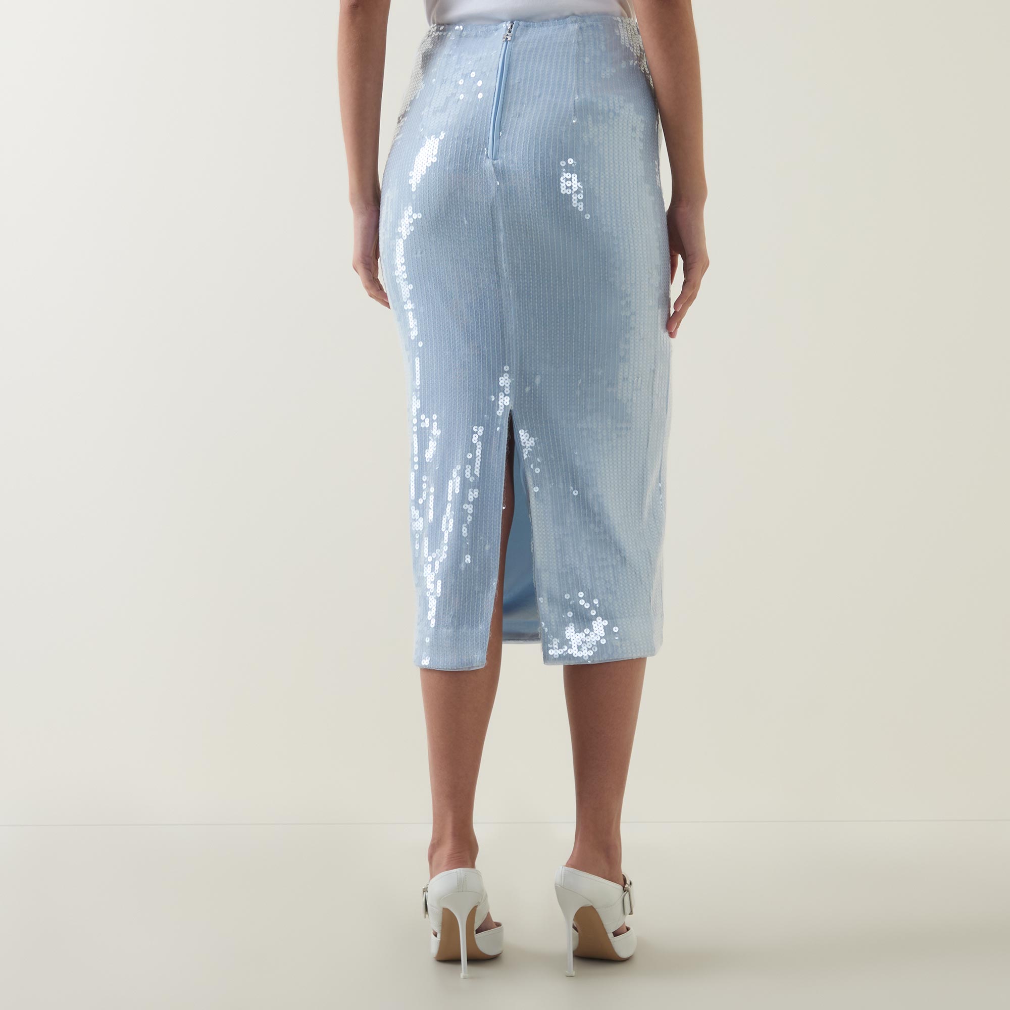 - Midi length, slit to the back, sequin embellishment, zip fastening with branded zip pull