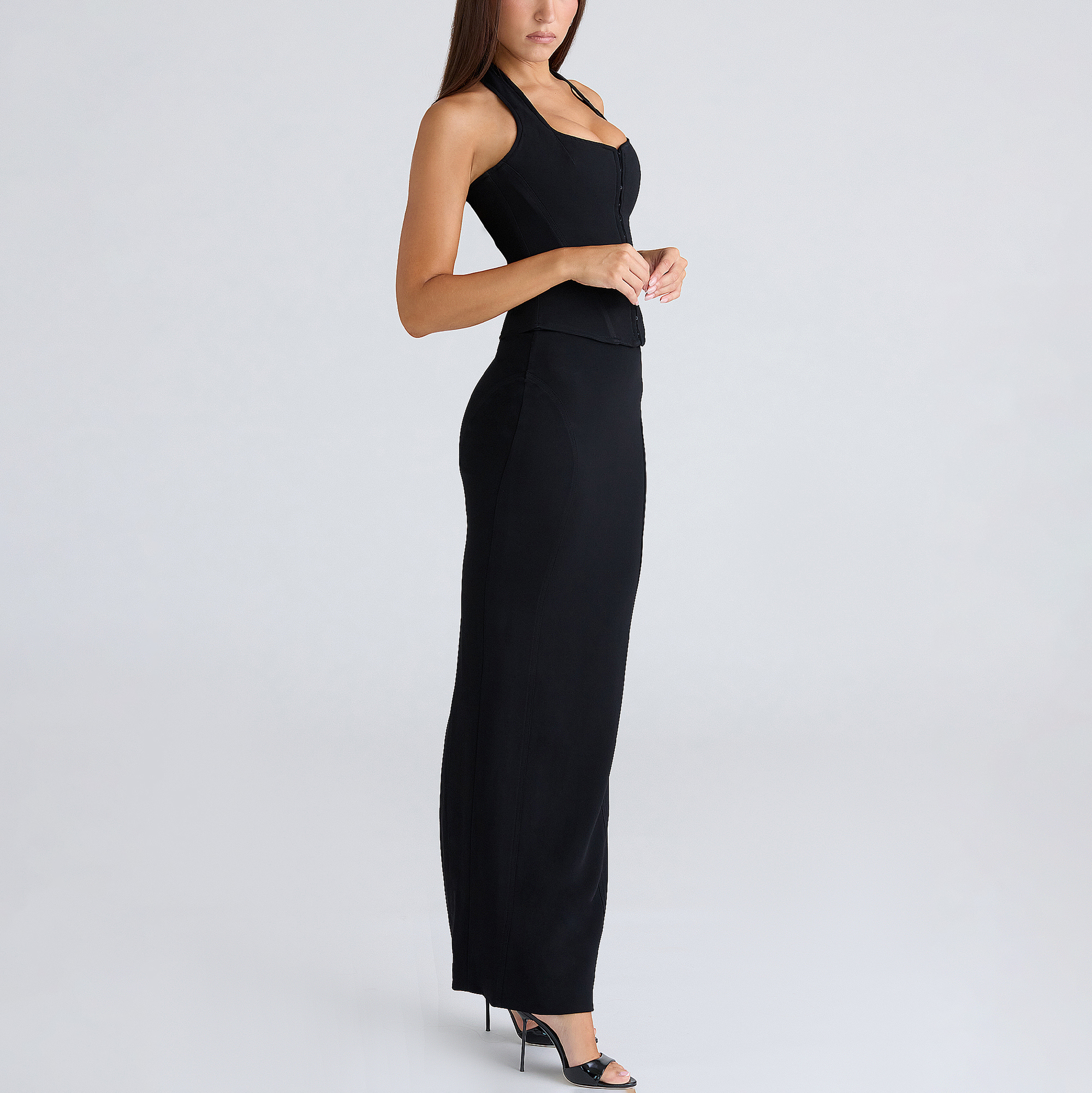 - Midi, ultra luxe stretch fabric, lined, hourglass panelling for a more defined fit