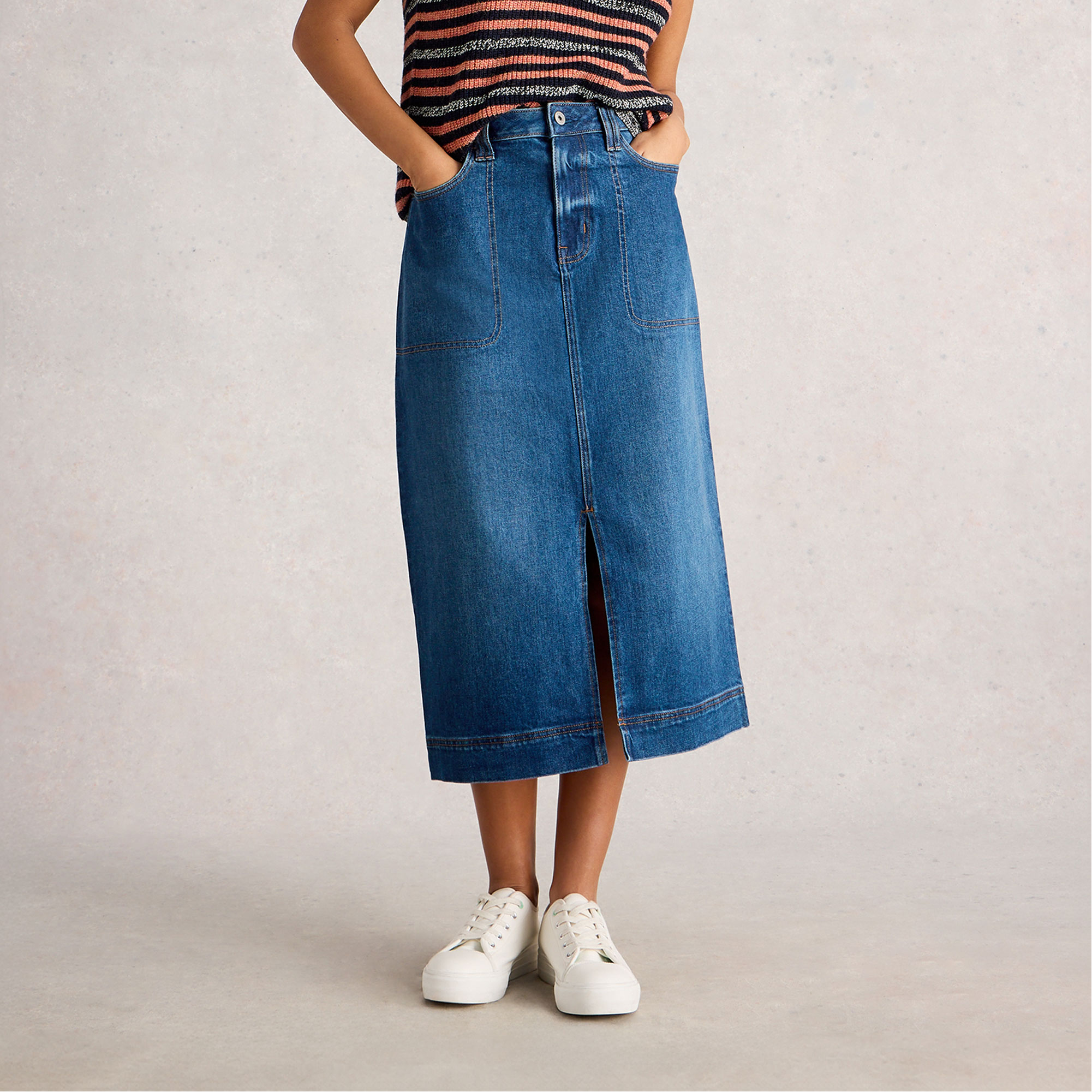 WHITE STUFF Online Exclusive Tia Front Slit Denim Skirt