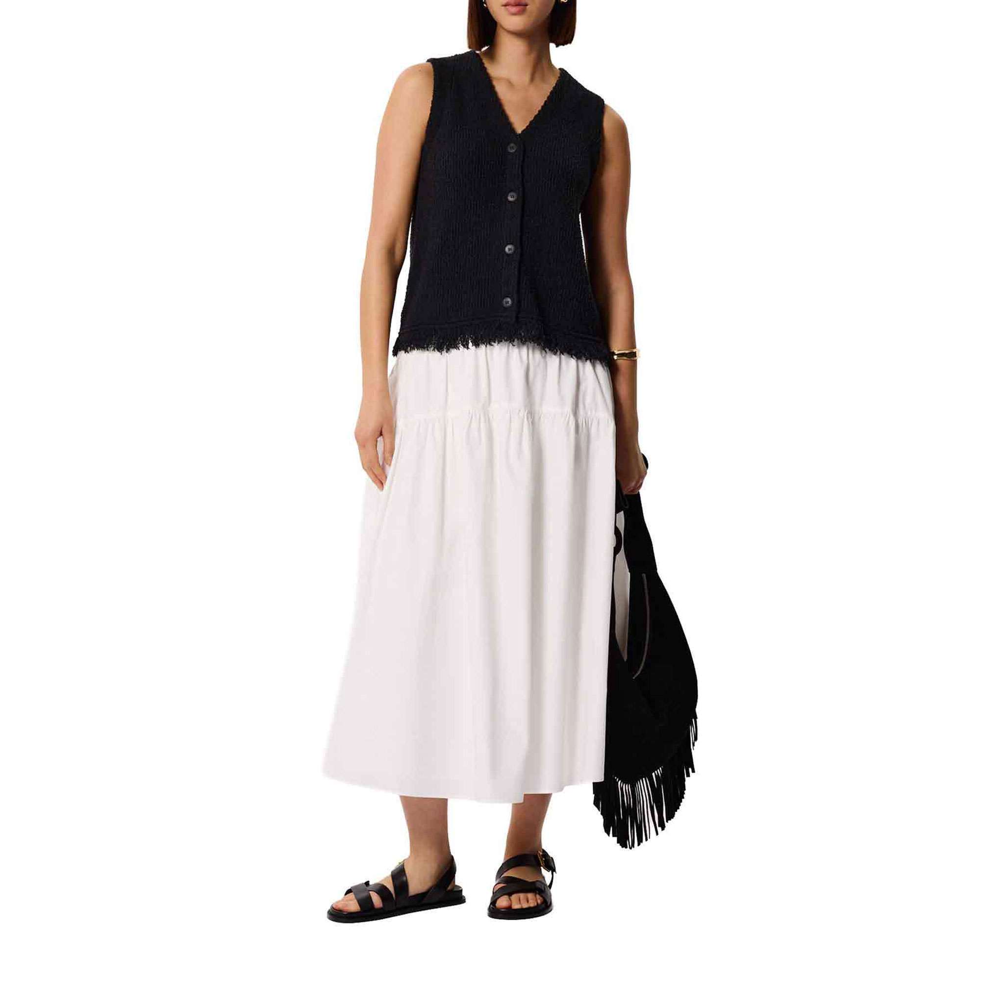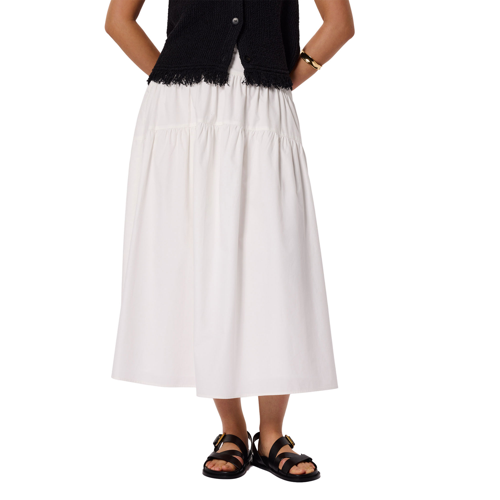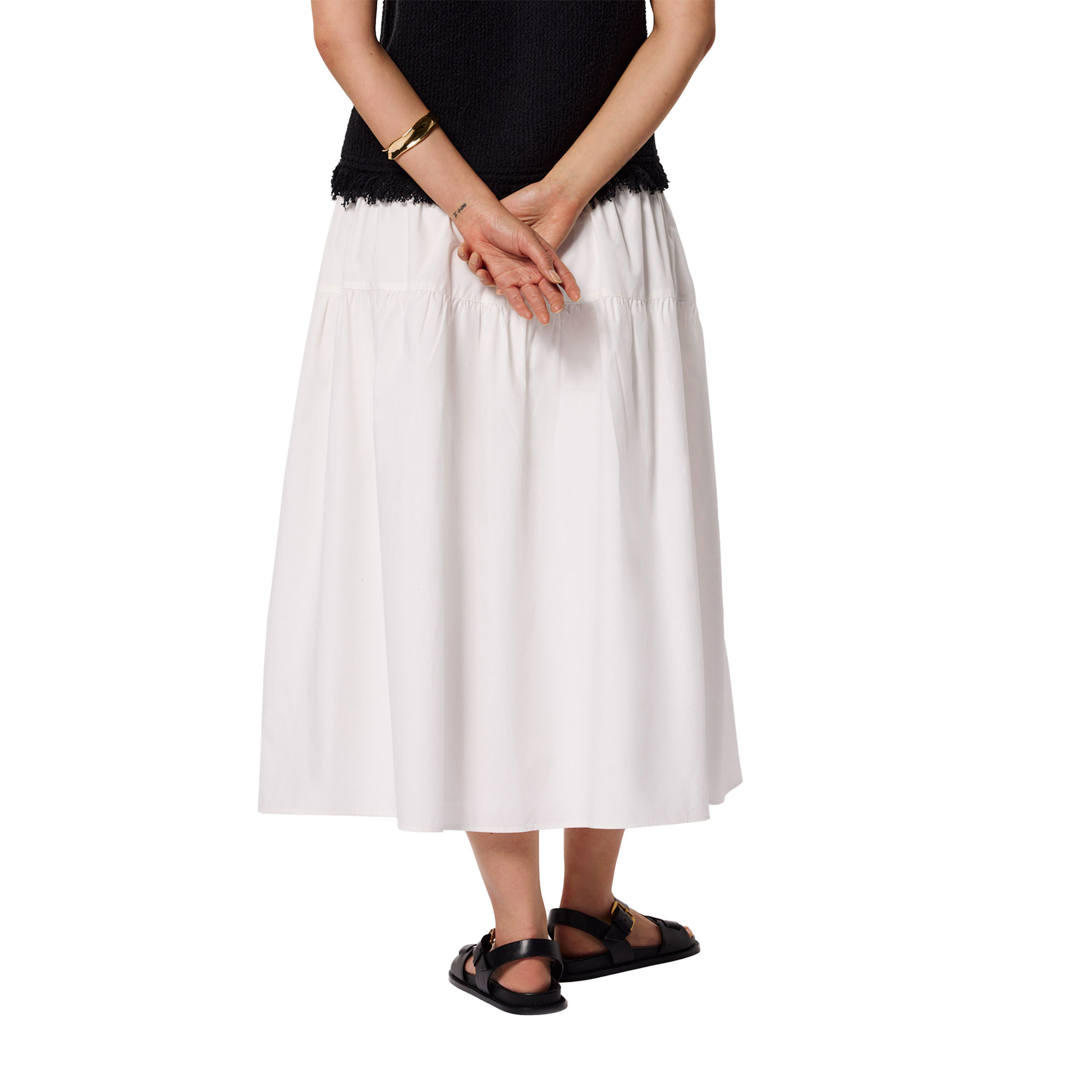 - Tiered hem, midi length