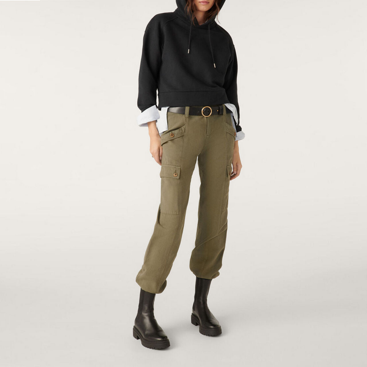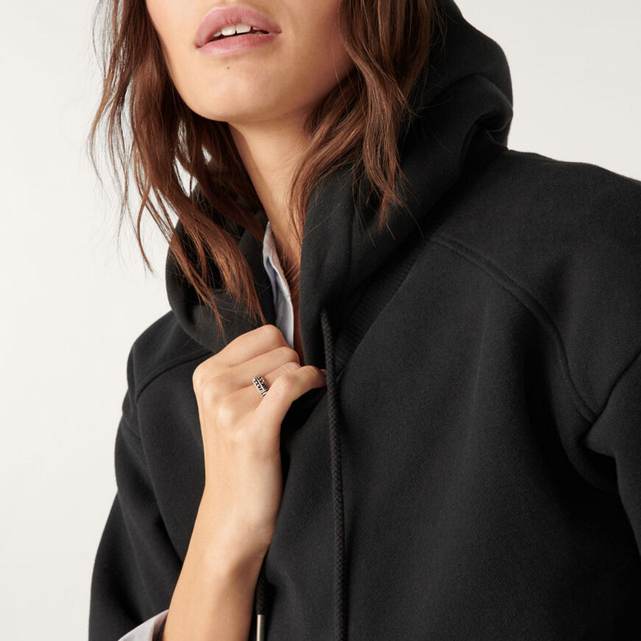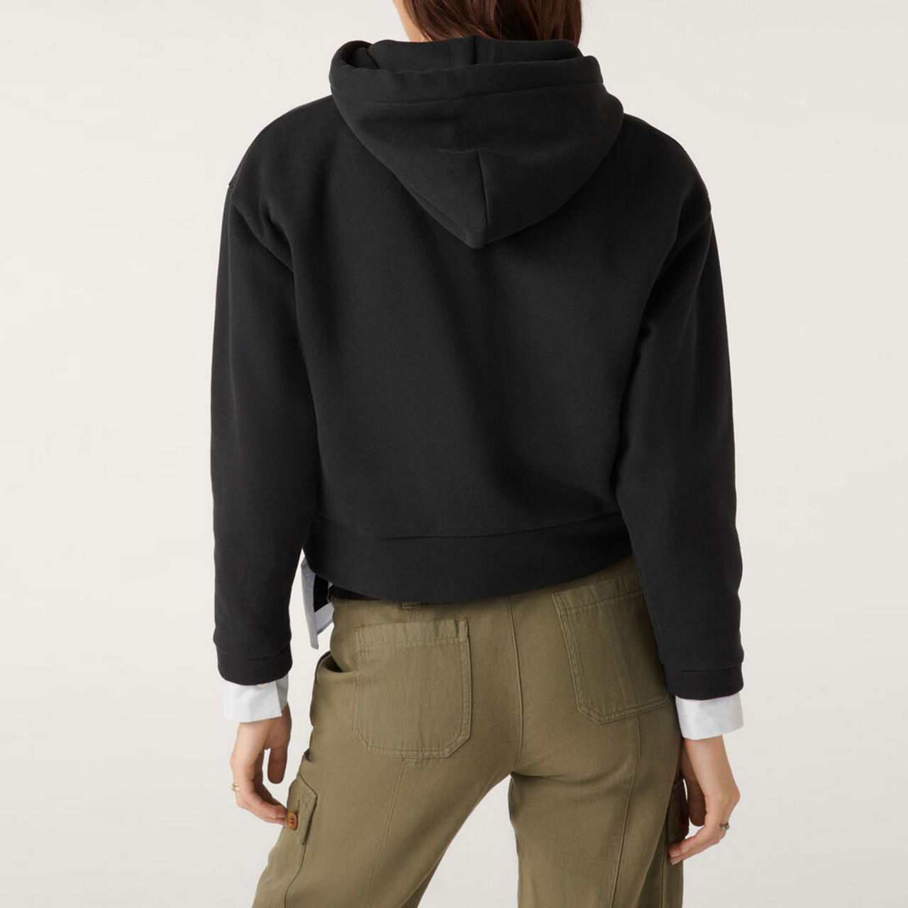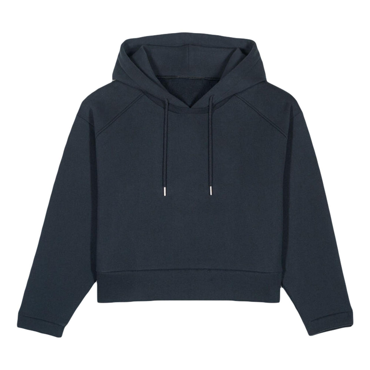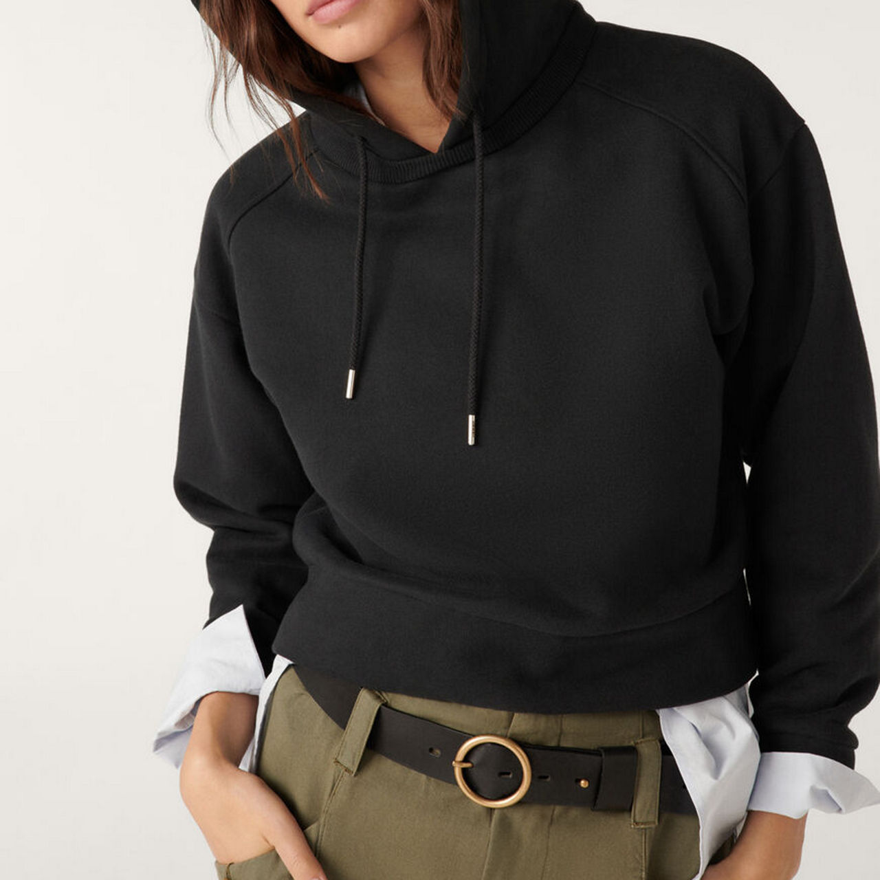 - Cropped, dropped shoulders, long sleeves, drawstring hood