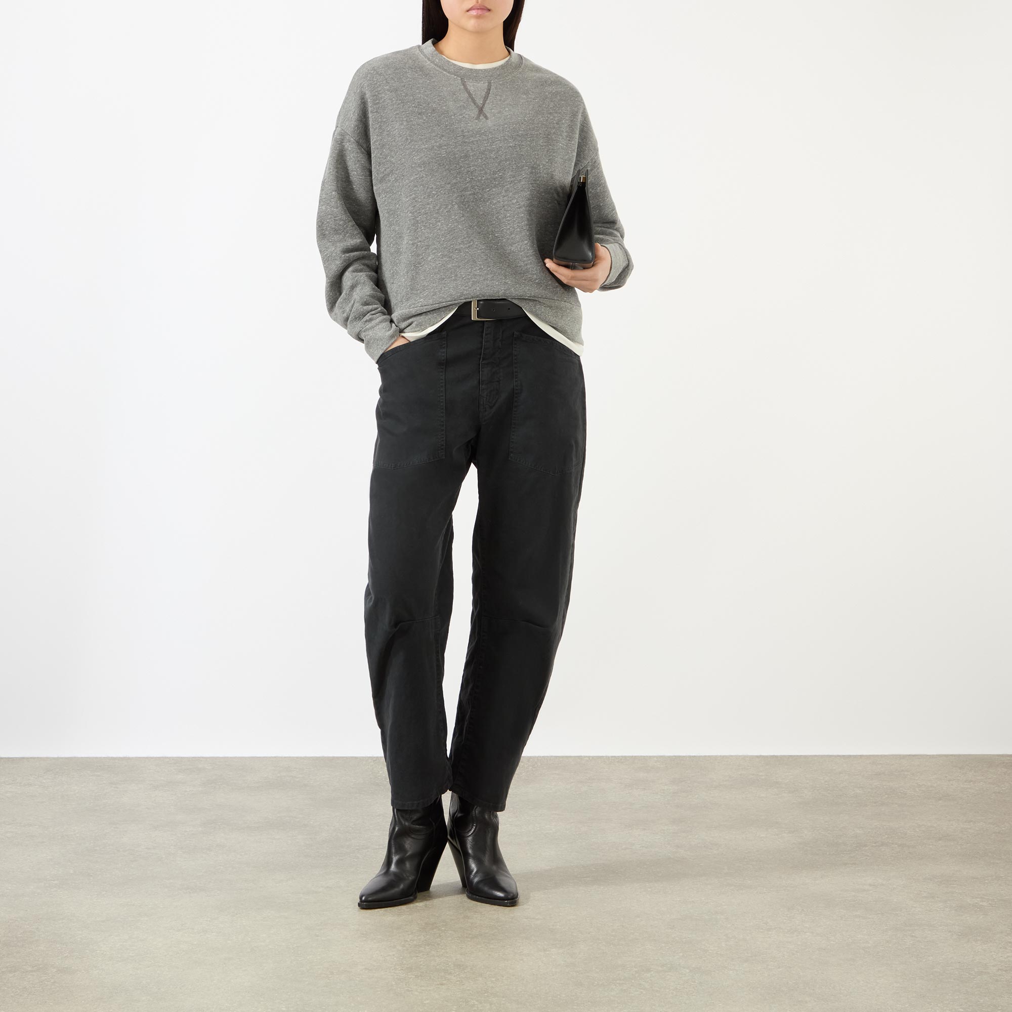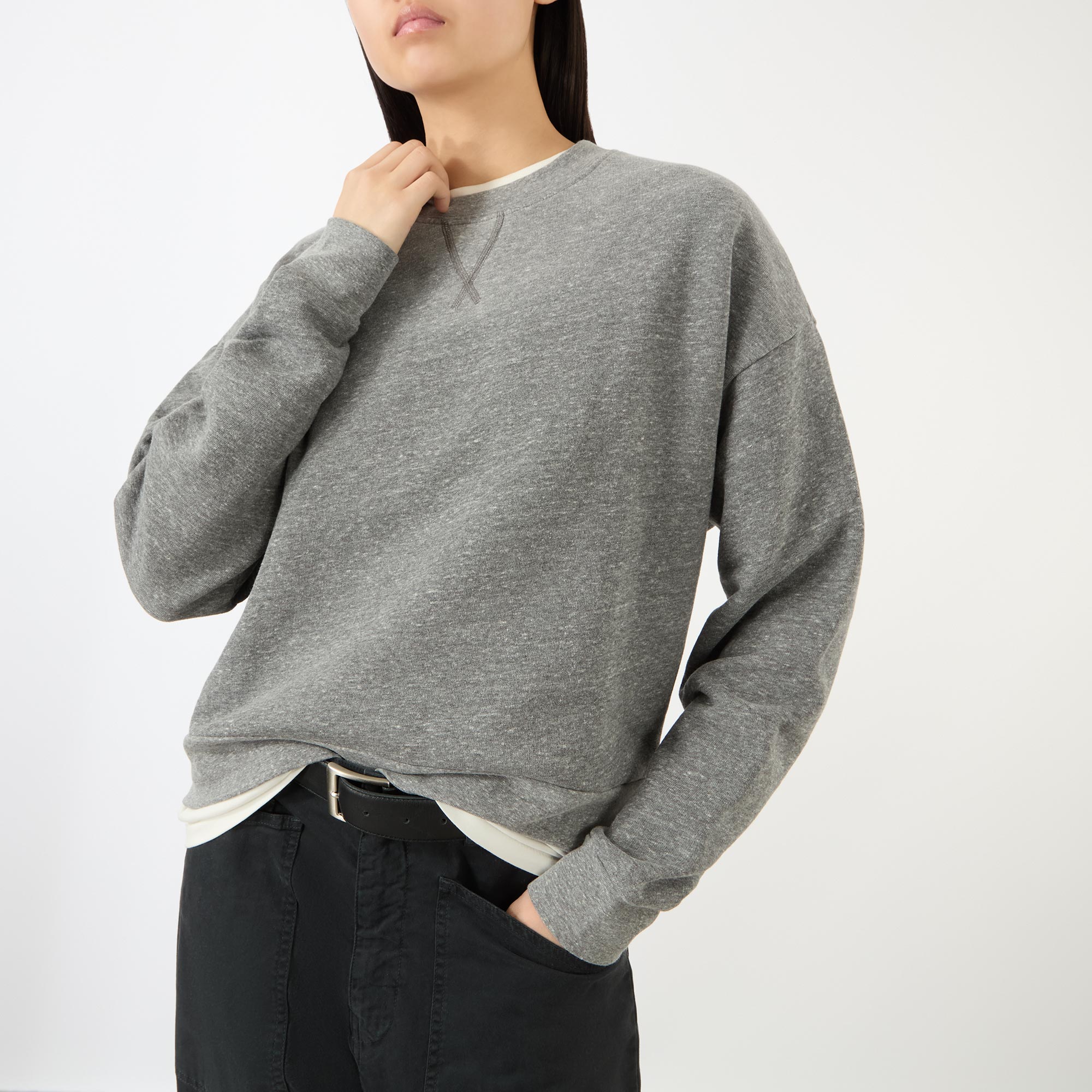Relaxed minimalism anchors the SS26 collection from Nili Lotan, a line filled with cool and classic styles like the Gladys sweatshirt. Framed by a crew neckline with a V-shaped insert, it features dropped shoulders and long sleeves, while finished with ribbed trims for an ultra comfortable edit.