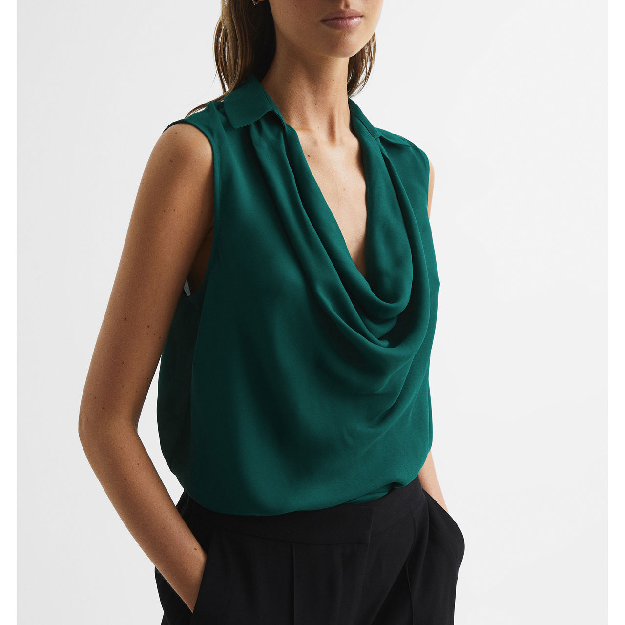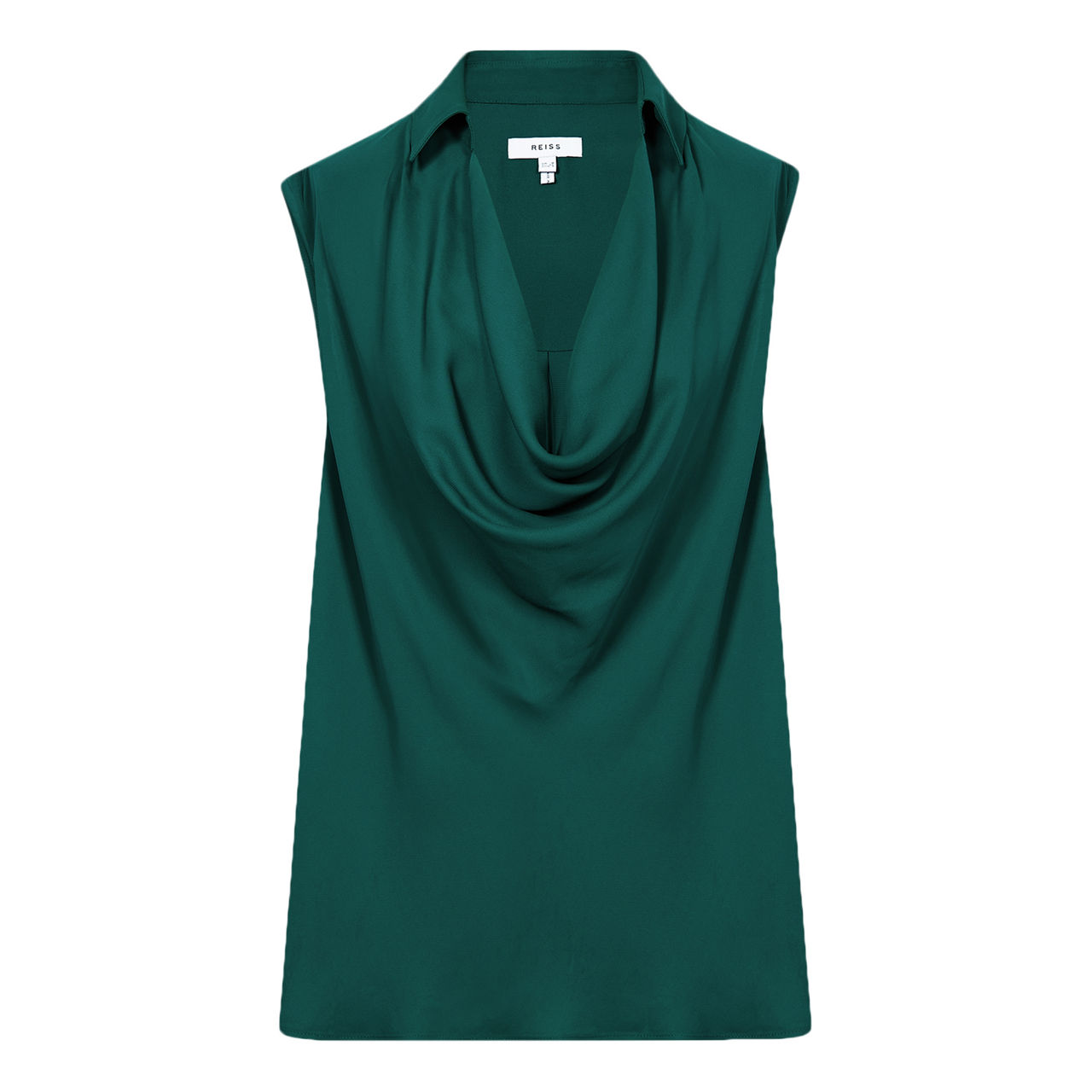 Chic and sophisticated, the Ameliee Blouse from Reiss is ideal for desk-to-dinner styling. Working a sleeveless silhouette, it comes with a cowl neck and collar for a smart finish. Style yours with slim leg trousers to create a polished evening look.
