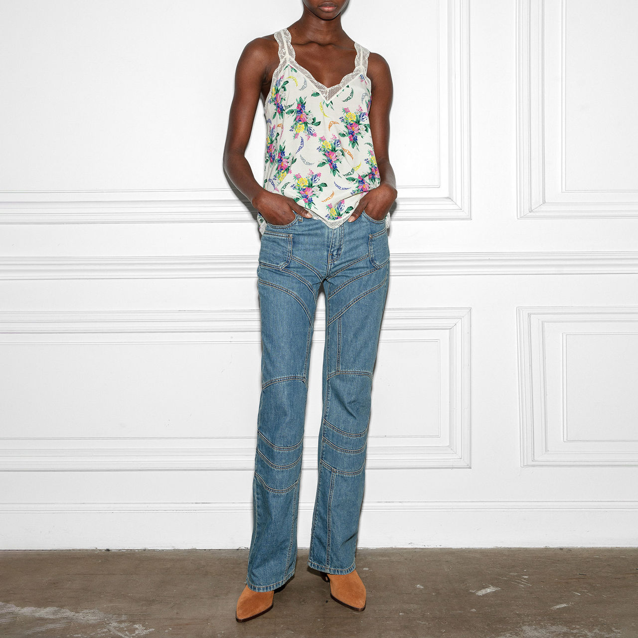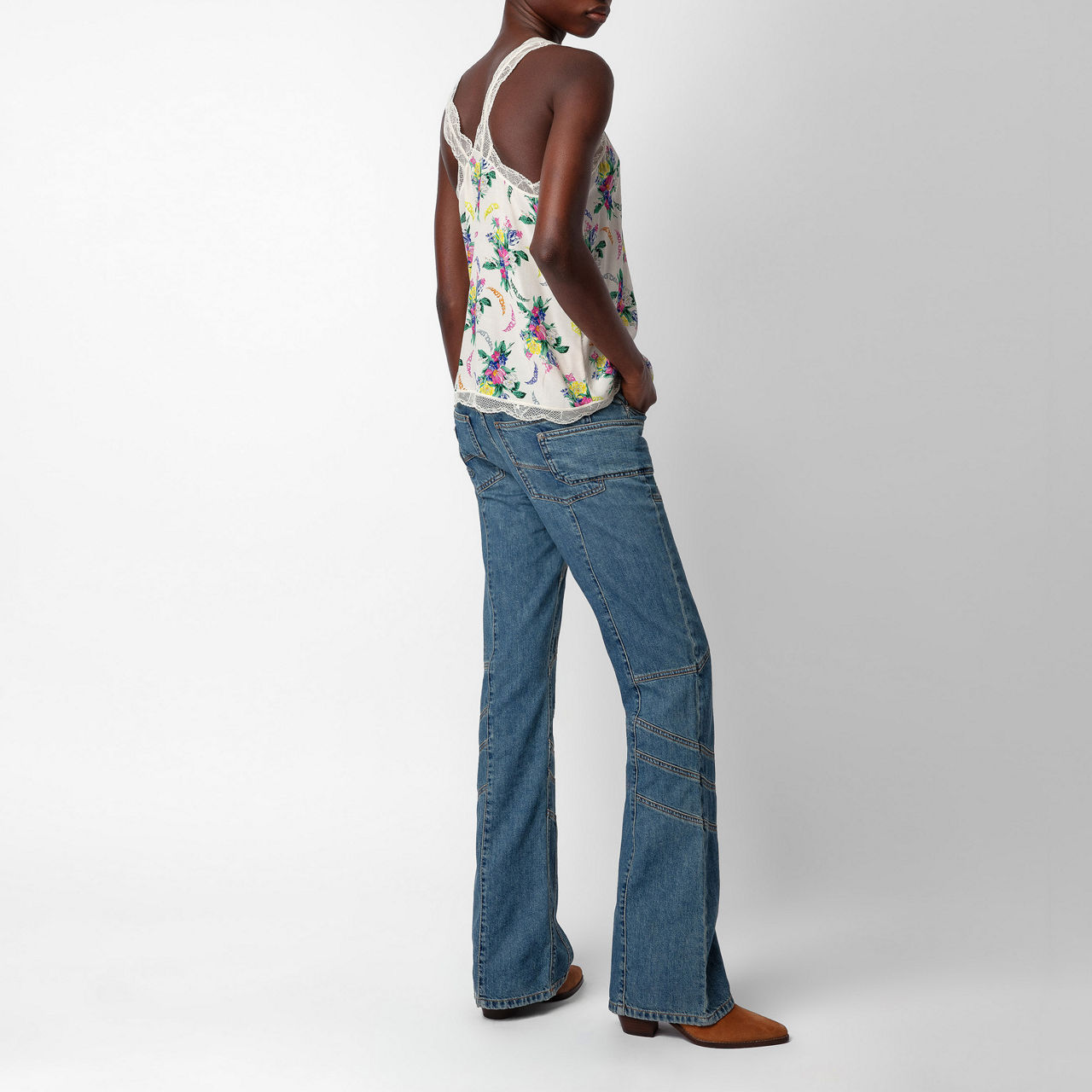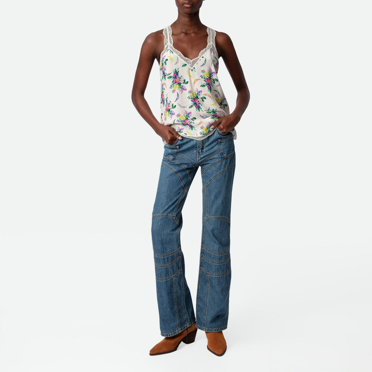 - Soft Bouquet floral print, thin straps, V-neckline, racer-style back, contrasting French lace trim made by Sophie Hallette exclusively for Zadig&Voltaire.