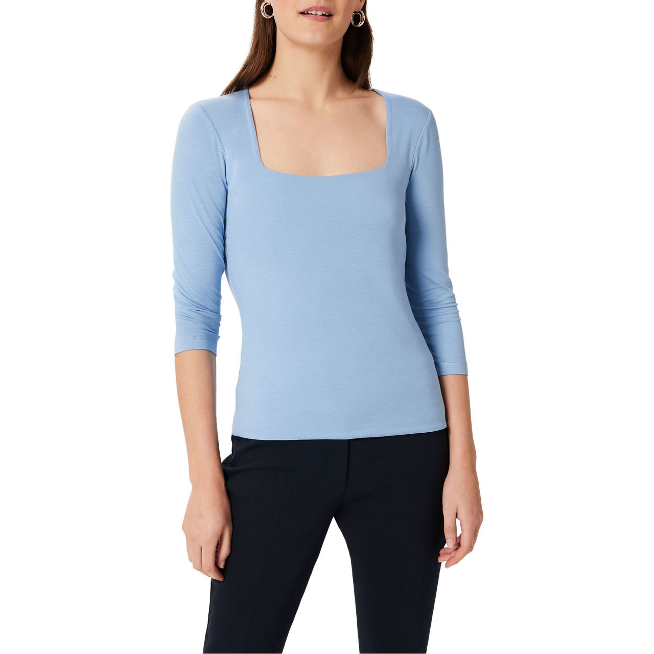 Redefine your everyday staples with the Debbie Top from Hobbs. Endlessly versatile, this top is framed by a striking square neckline and classic three-quarter length sleeves. Slip it on with denim or tailoring depending on the occasion.