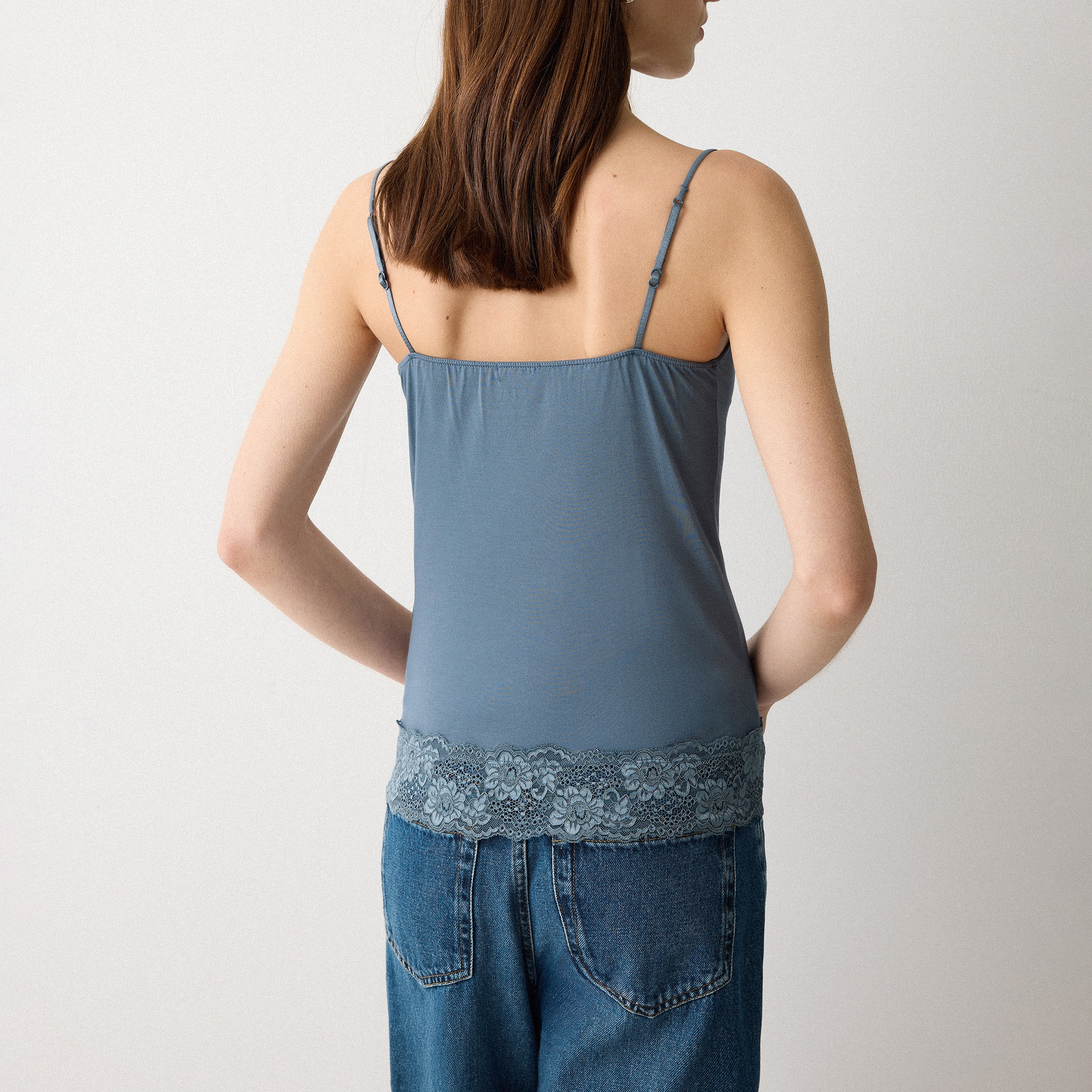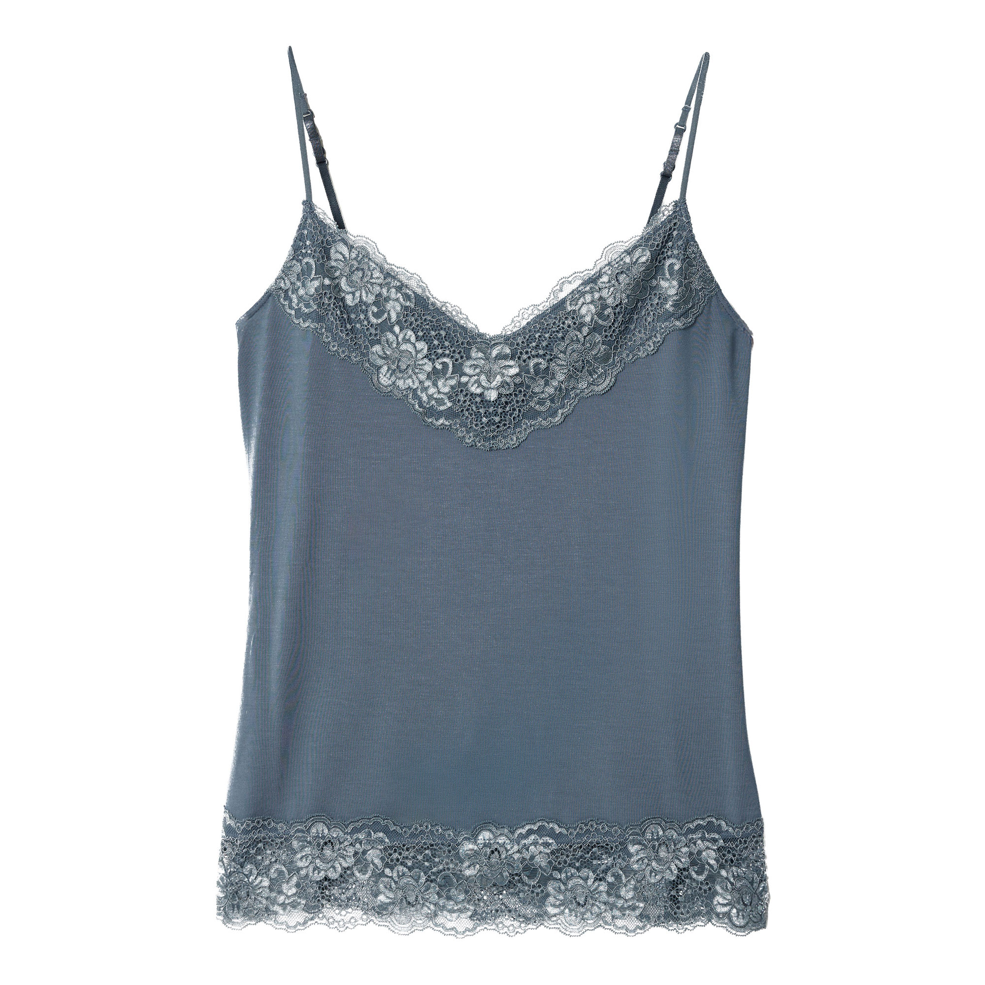 - Soft feel, lace trim, jersey fabric, slim adjustable straps, vintage-inspired