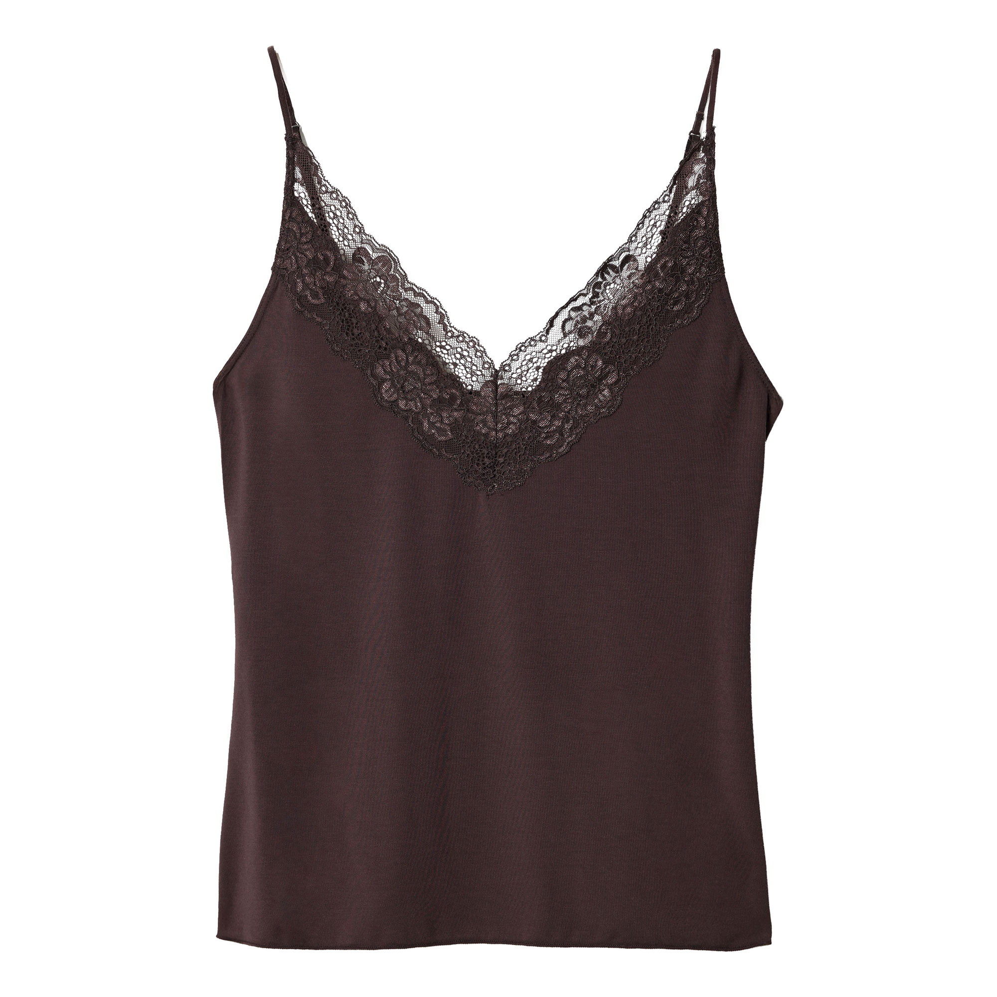 - Soft modal jersey fabric, slim adjustable straps, lace trim detail, vintage-inspired