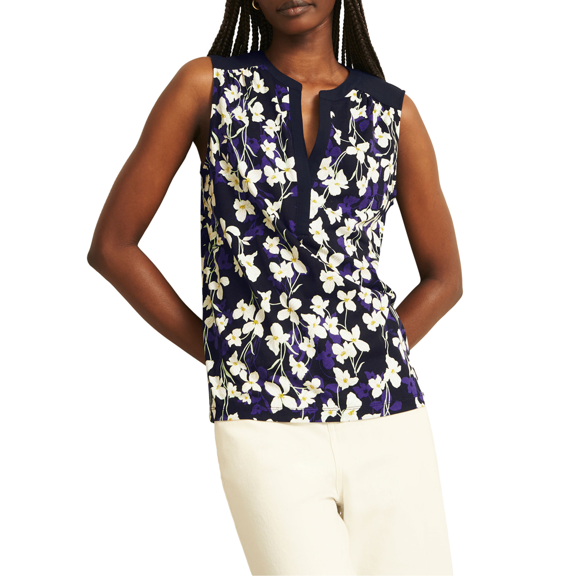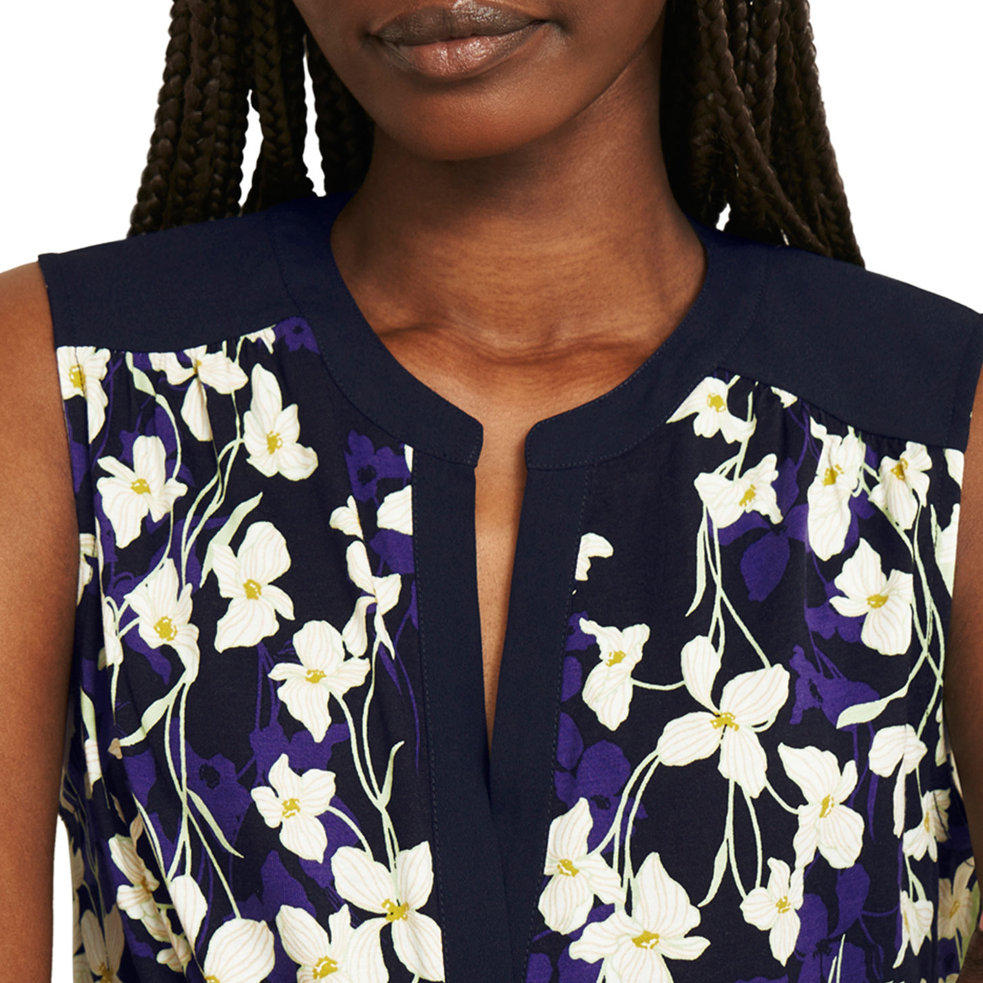 - V-neck, three-quarter-length sleeves, floral pattern
