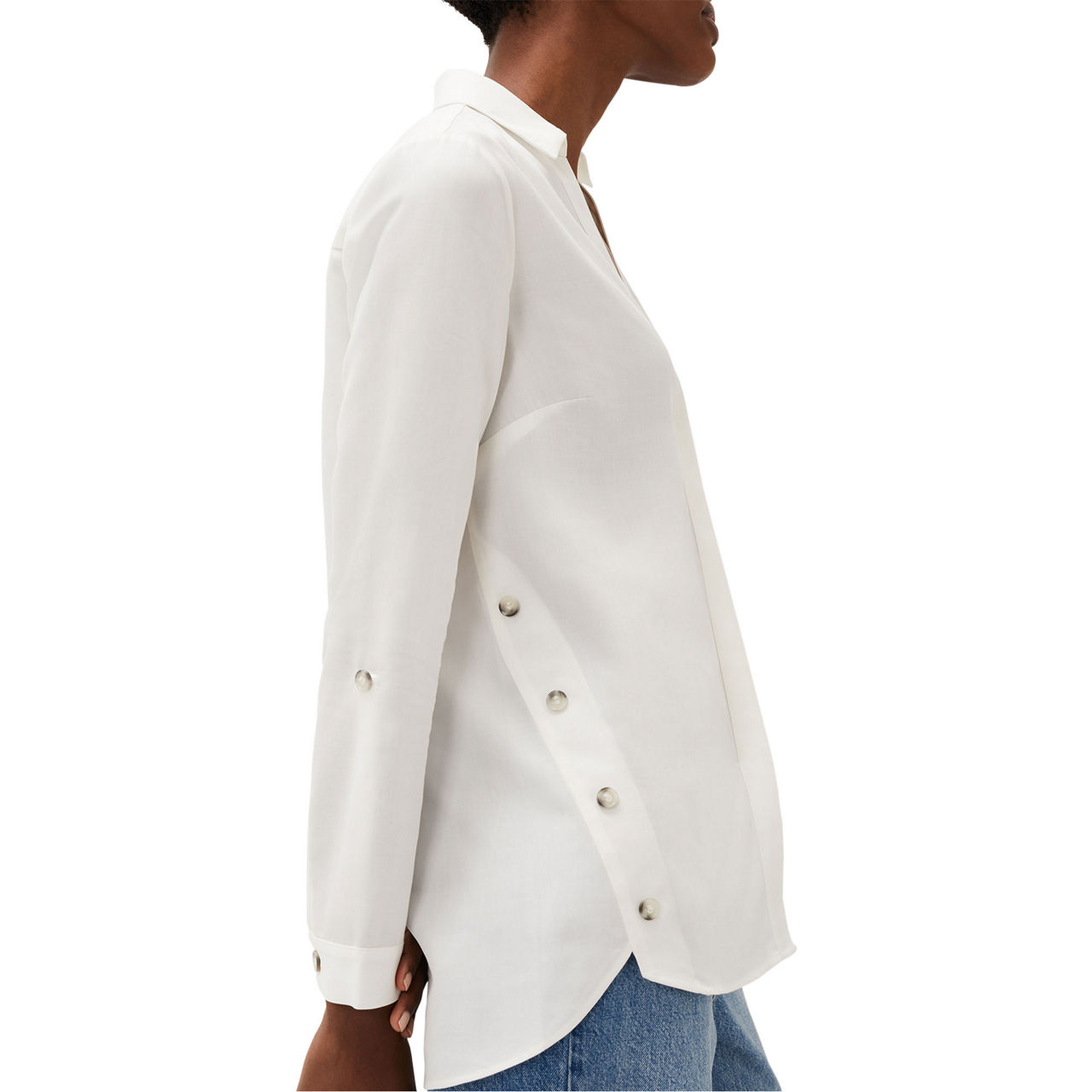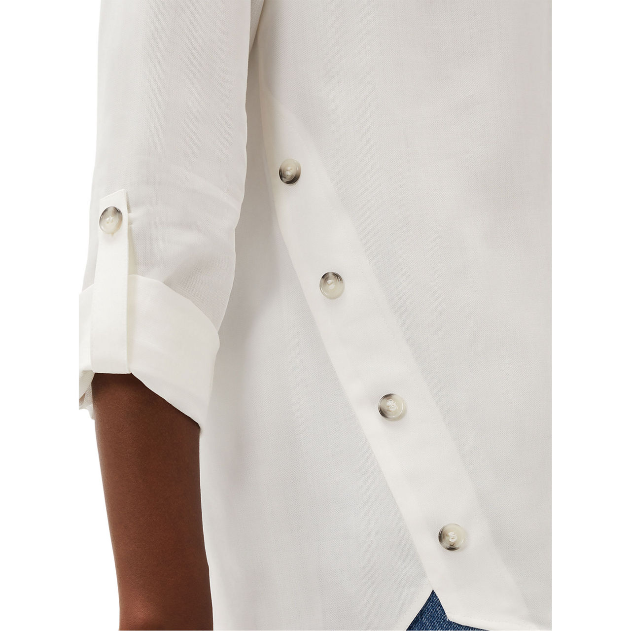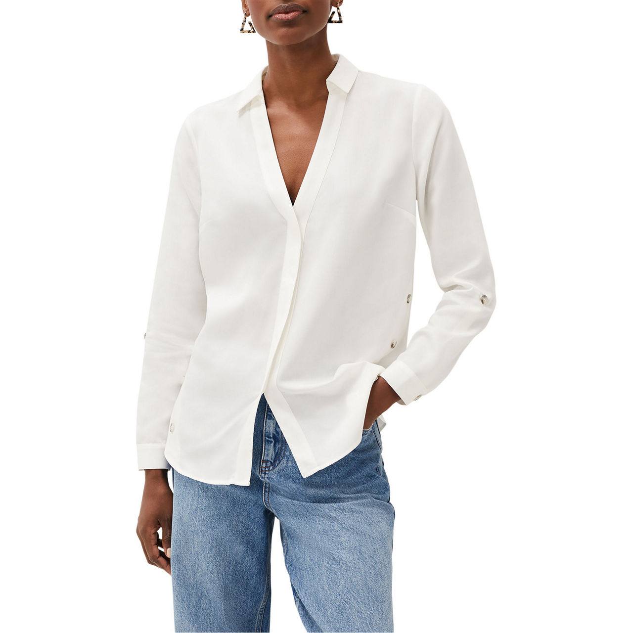 The blend of tailoring details on a relaxed, longer length makes this Phase Eight white shirt stand out from all the rest. The simple button detail along the asymmetric hem elevates this chic design.