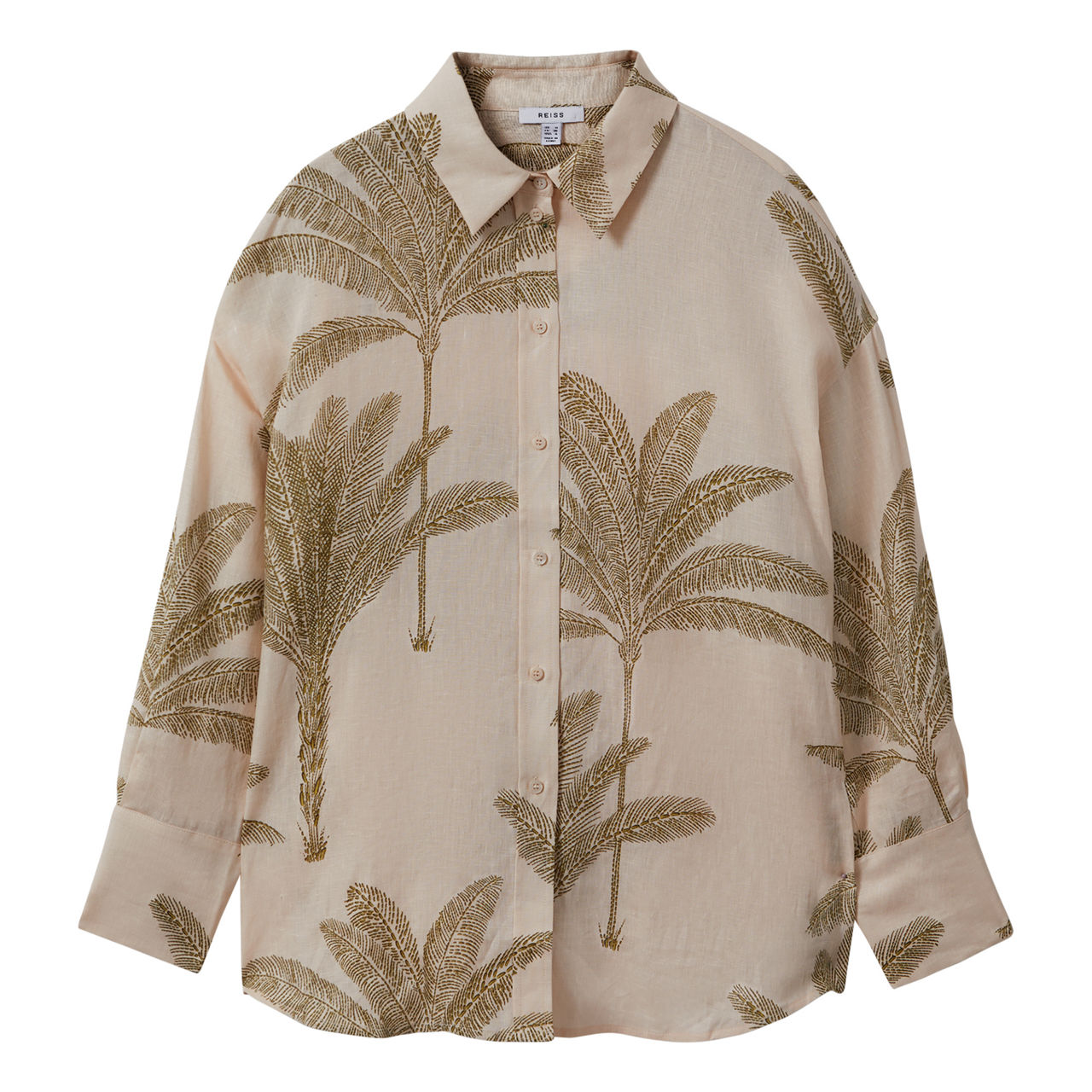 REISS Oskia Palm Linen Shirt