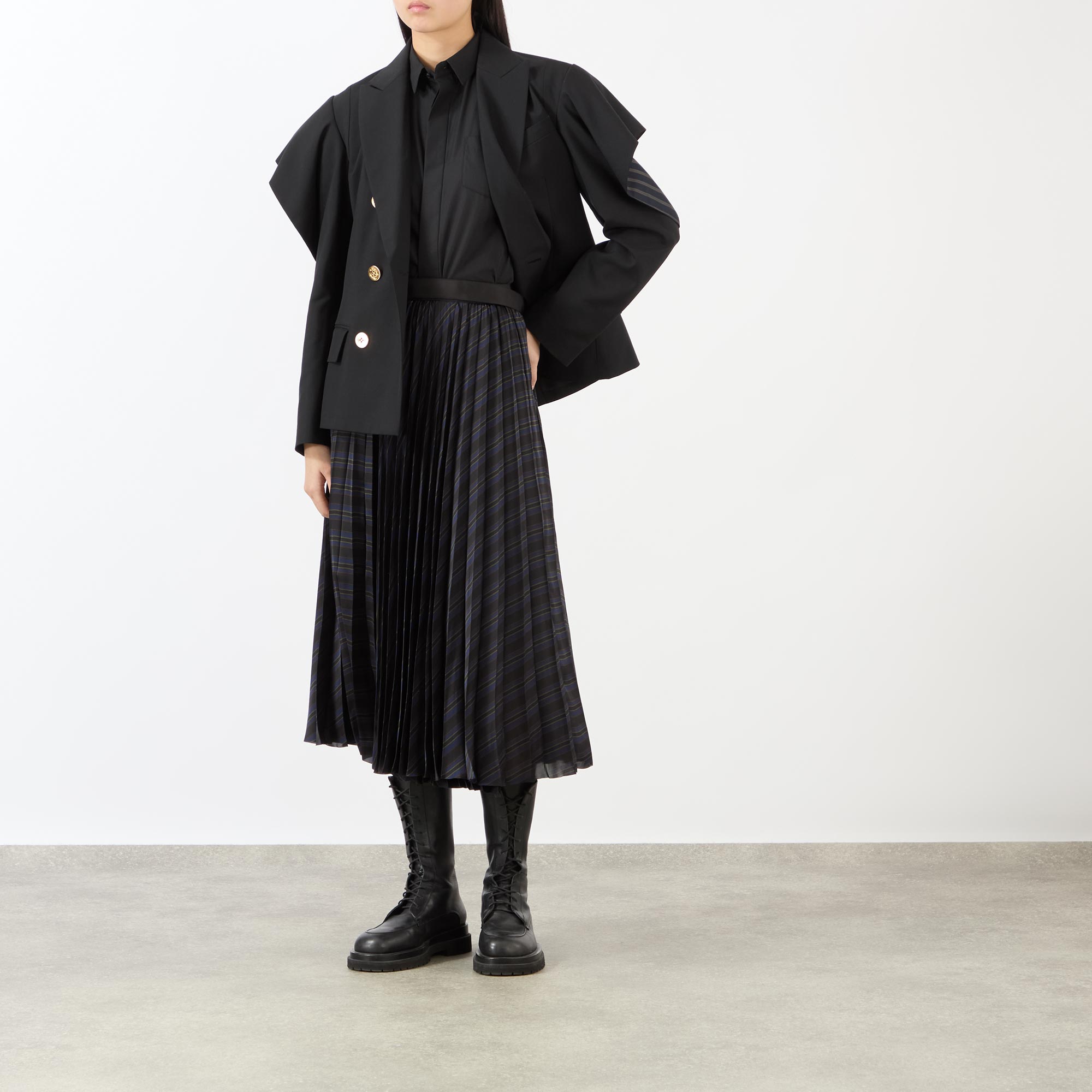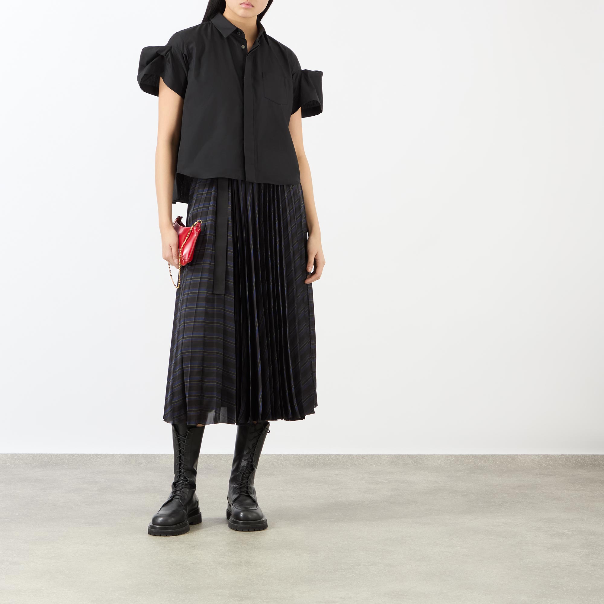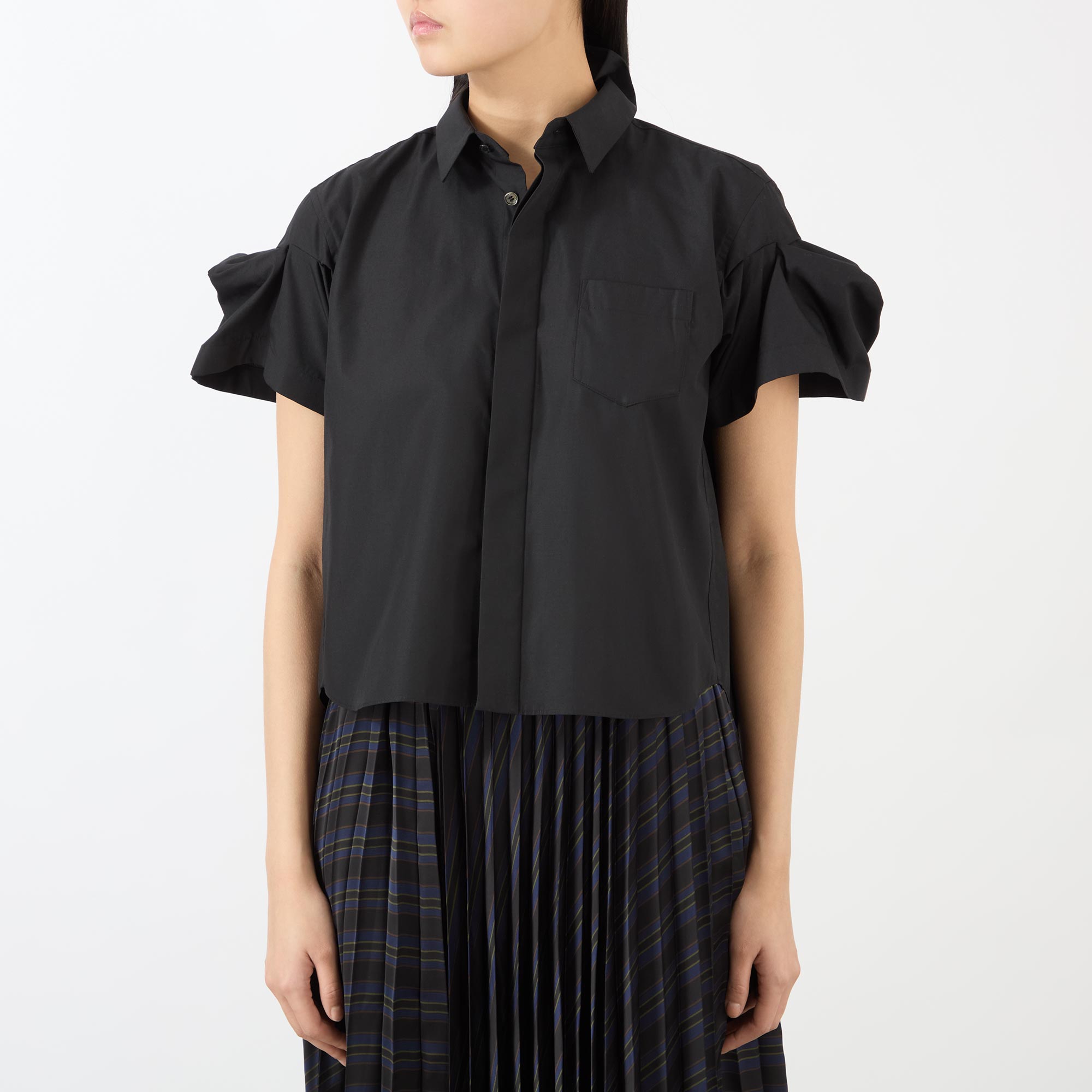 Tailored silhouettes elevated with subtle details fill the SS26 collection by Sacai, seen in the design of this shirt. Cut from a poplin-blend fabric, it features a structured collar that stands to the back before folding into a classic shape to the front, finished with puff sleeves.