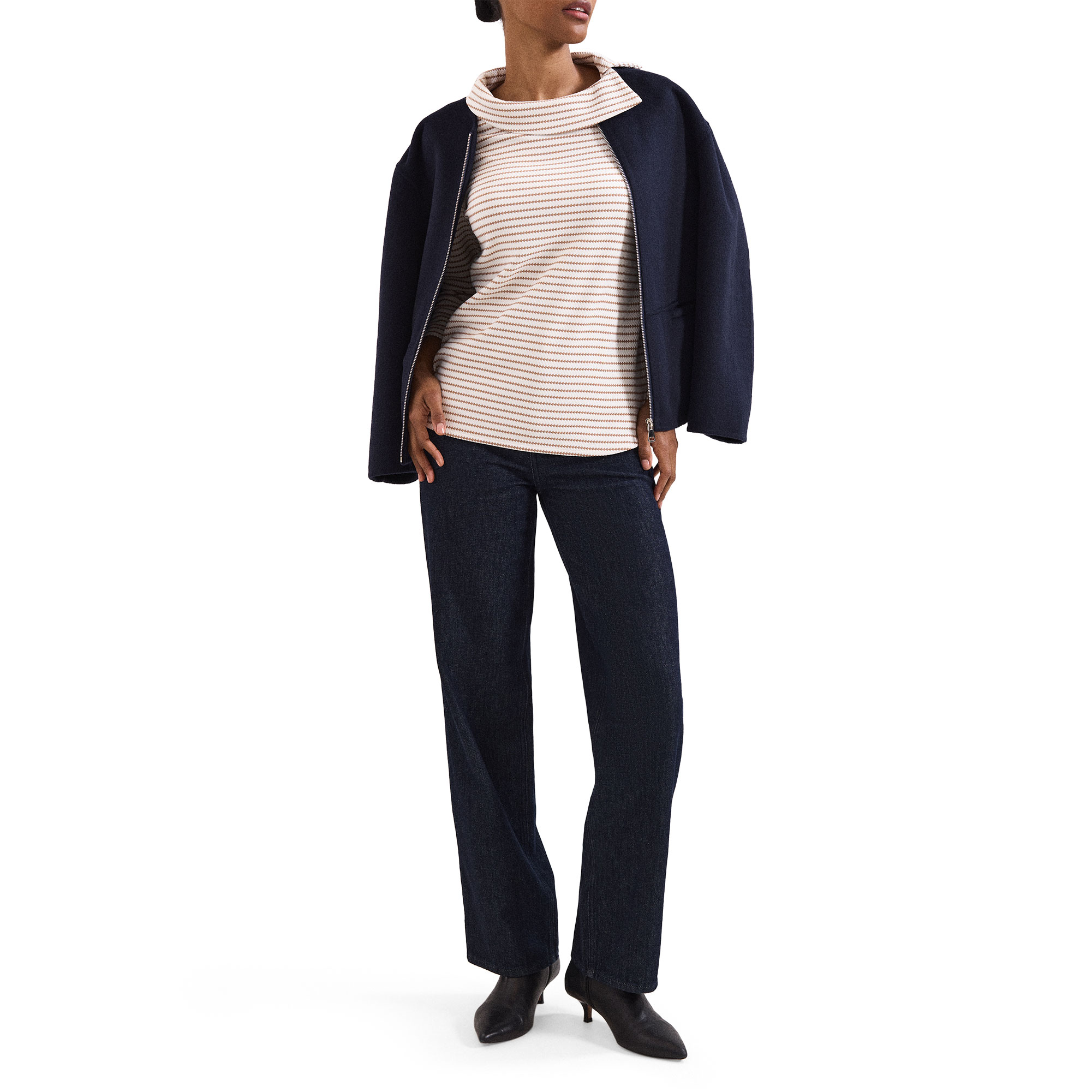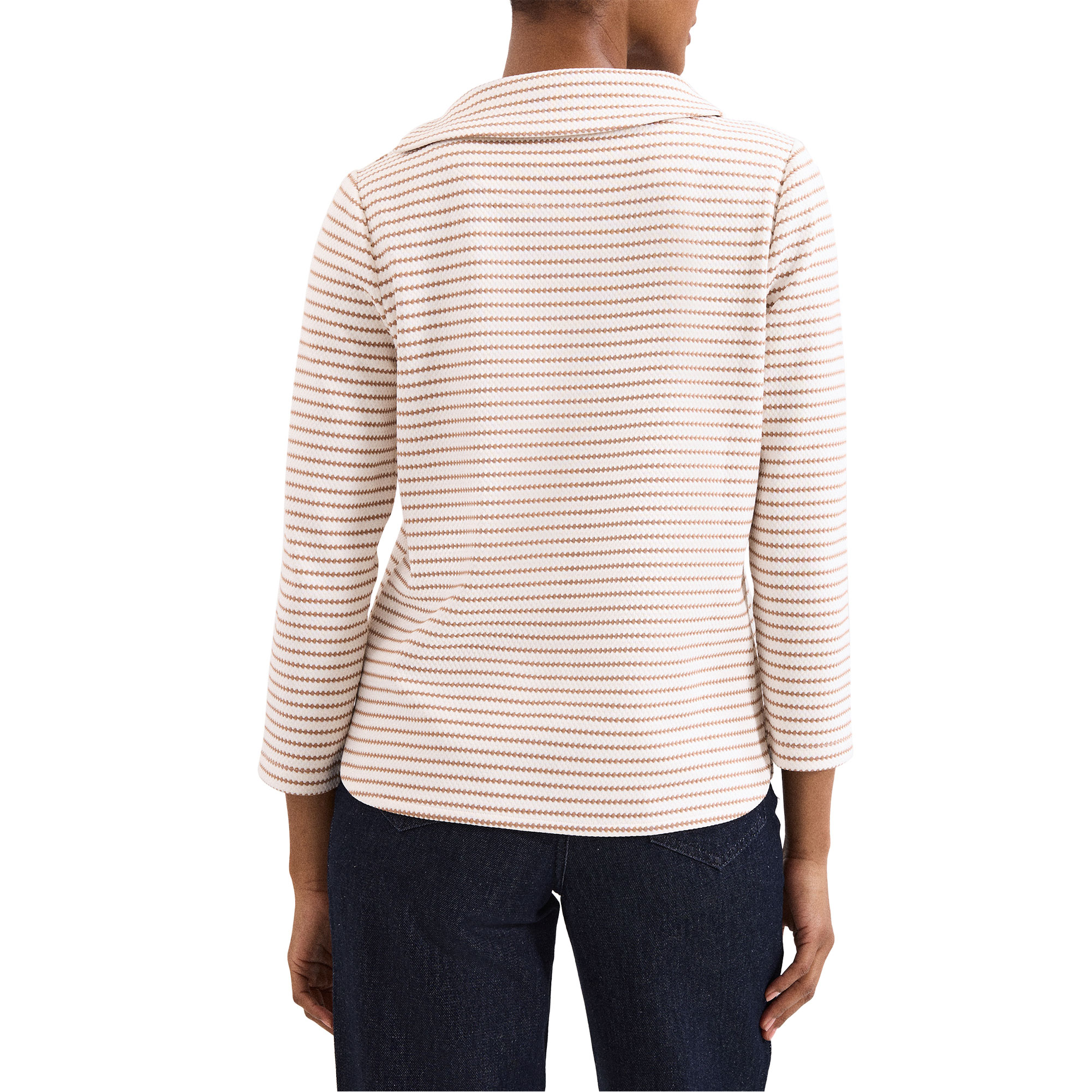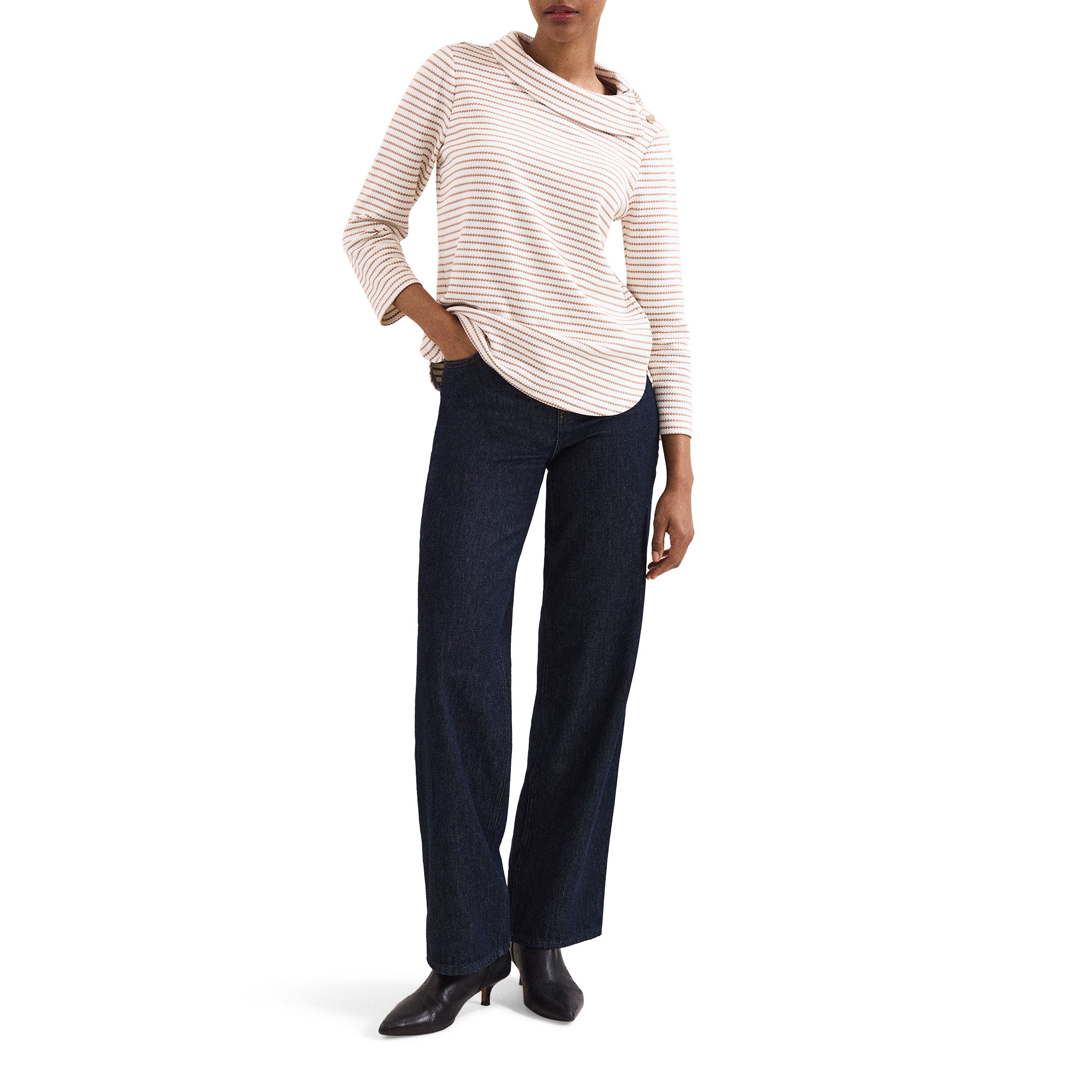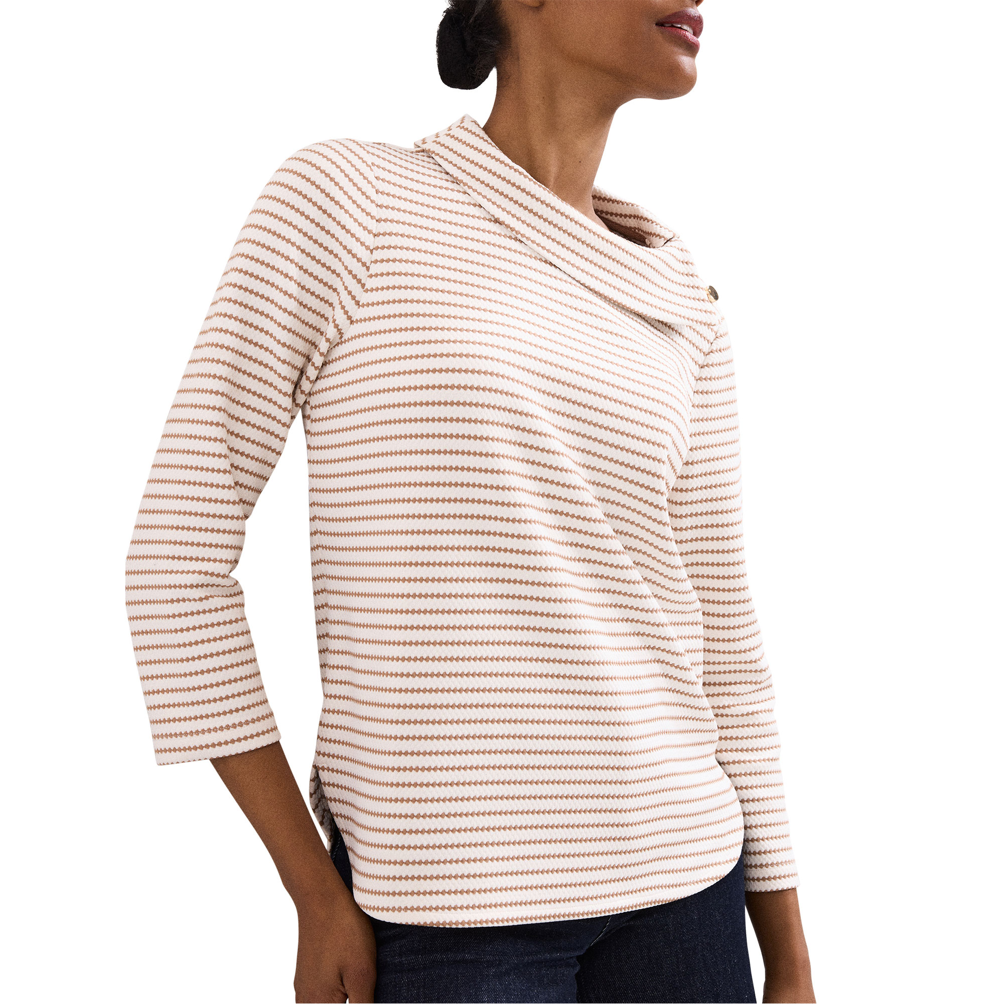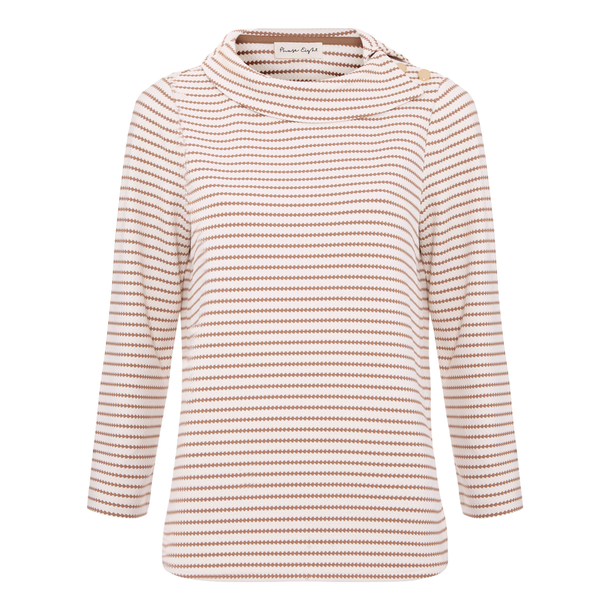 - Striped, cowl neckline, three-quarter-length sleeves, button detailing at the sides
