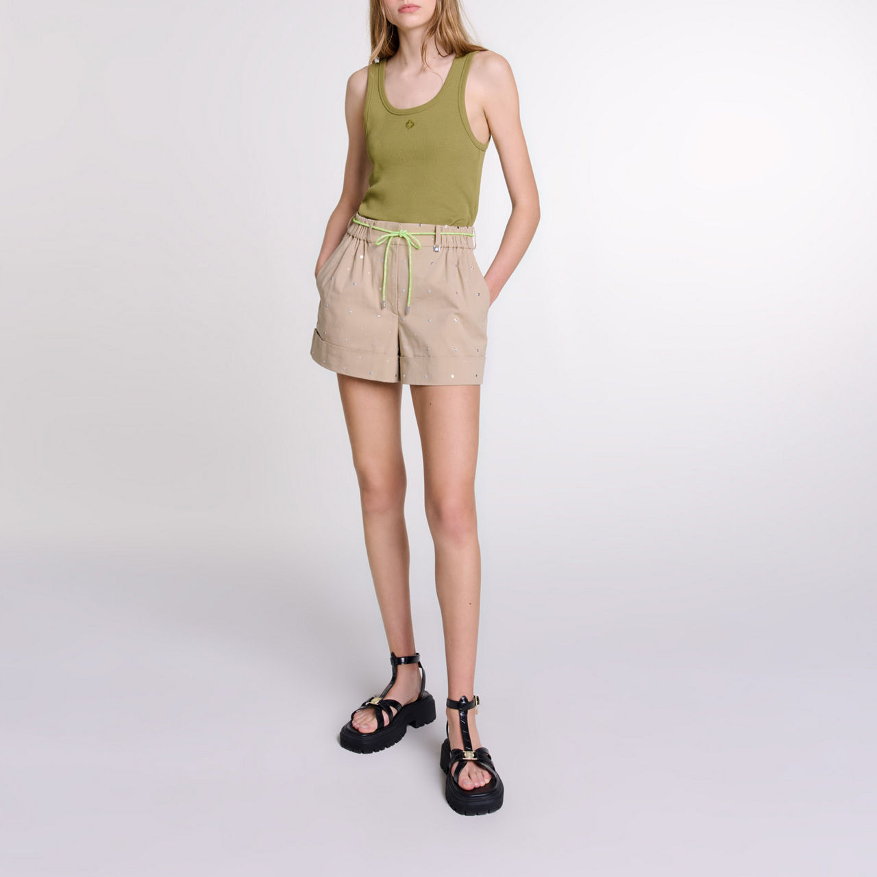 - Ribbed finish, scoop neckline, sleeveless, embroidered clover logo detail