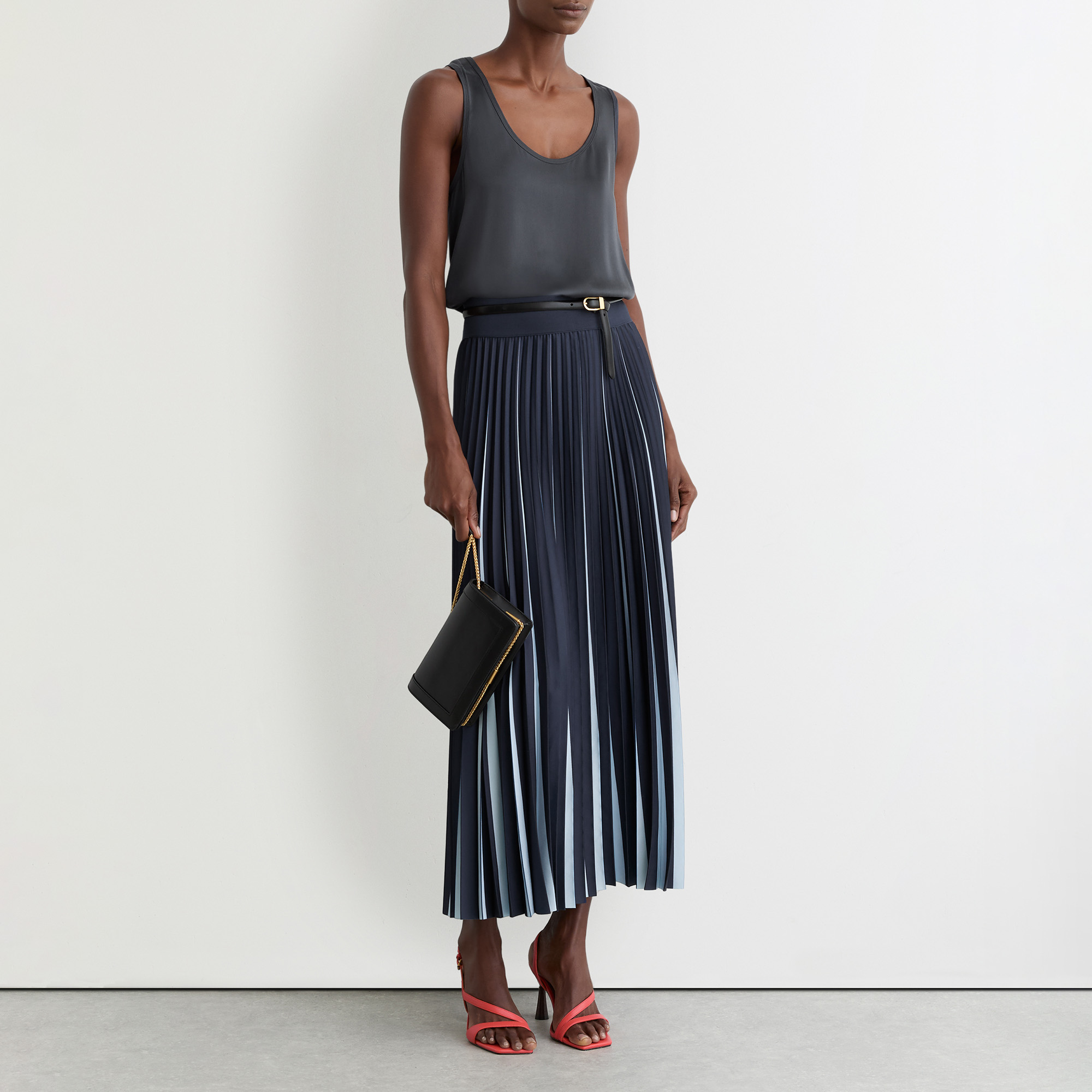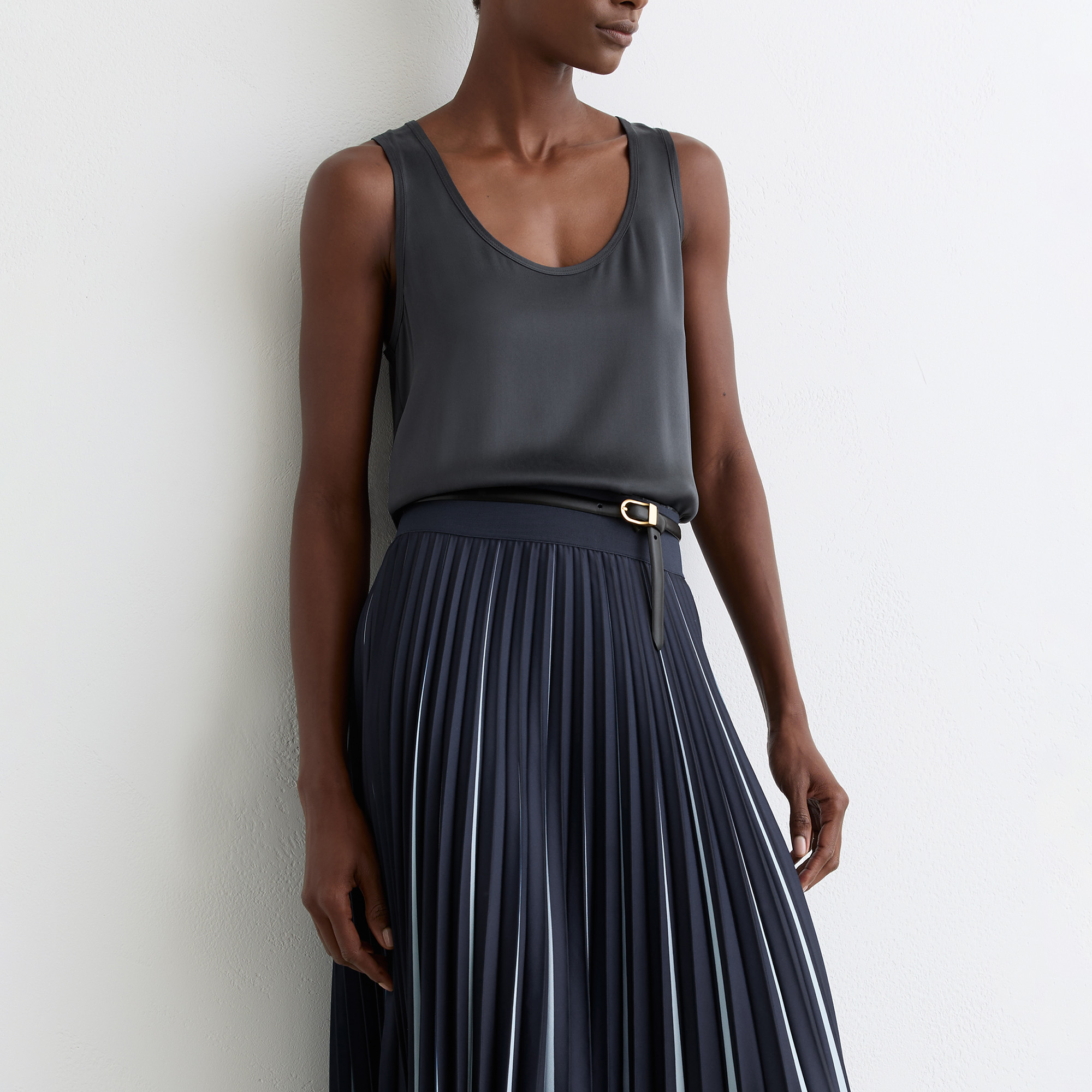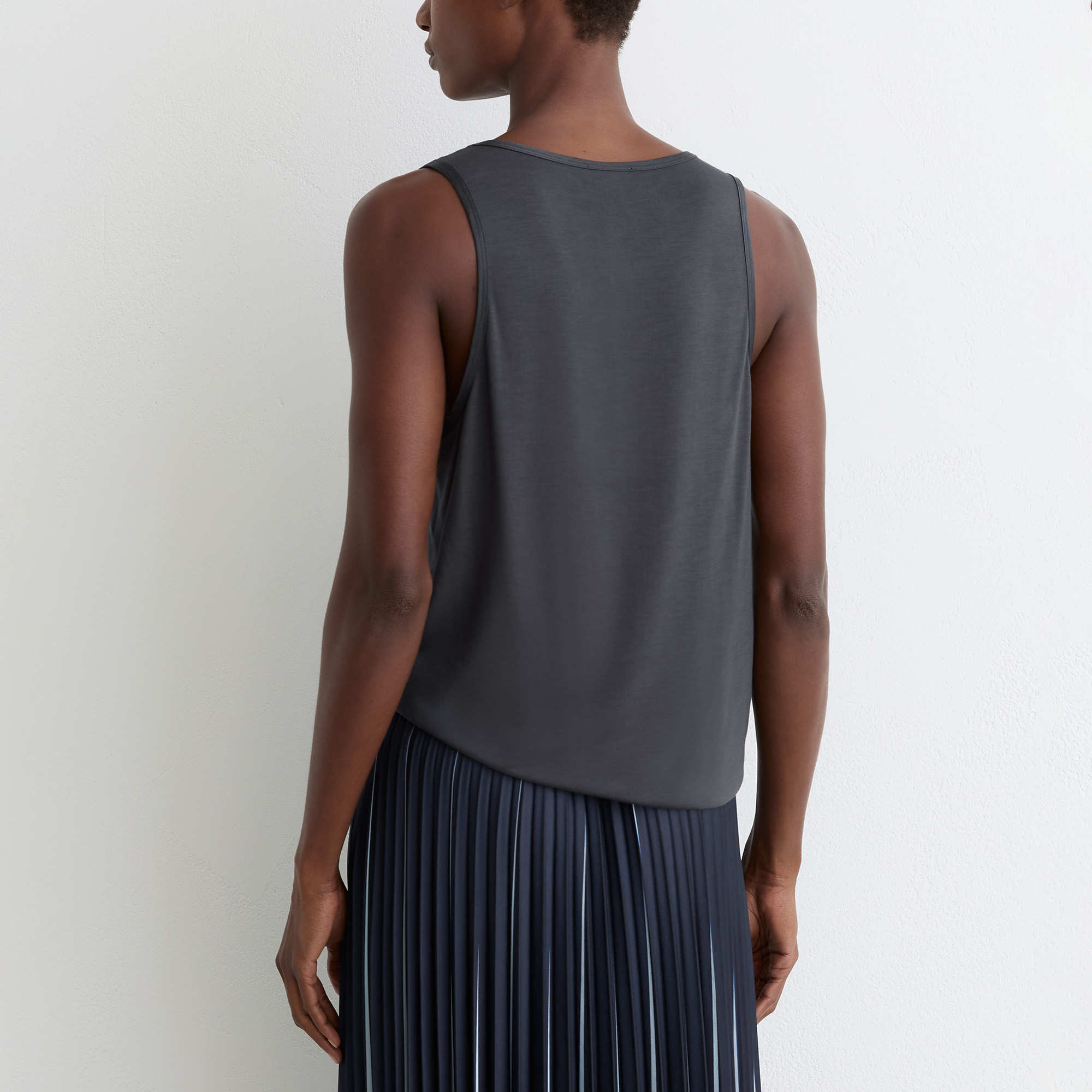 - Silk front panel, jersey back panel, scoop neckline, sleeveless