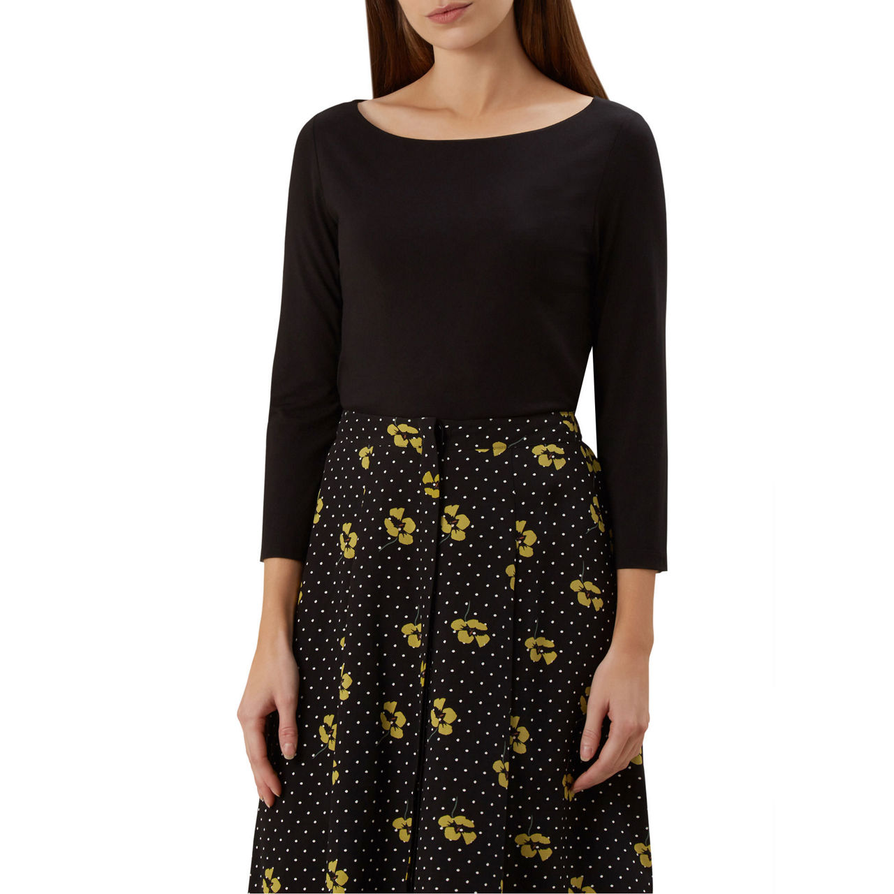 Build your look with effortless wardrobe pieces. The Sonya top is just one of them. With a lightly fitted silhouette, boat neck and three quarter-length sleeves, it has timeless appeal. While the soft-jersey creates smooth lines, so it looks perfectly smart with your workwear or simply chic with your off-duty outfits.