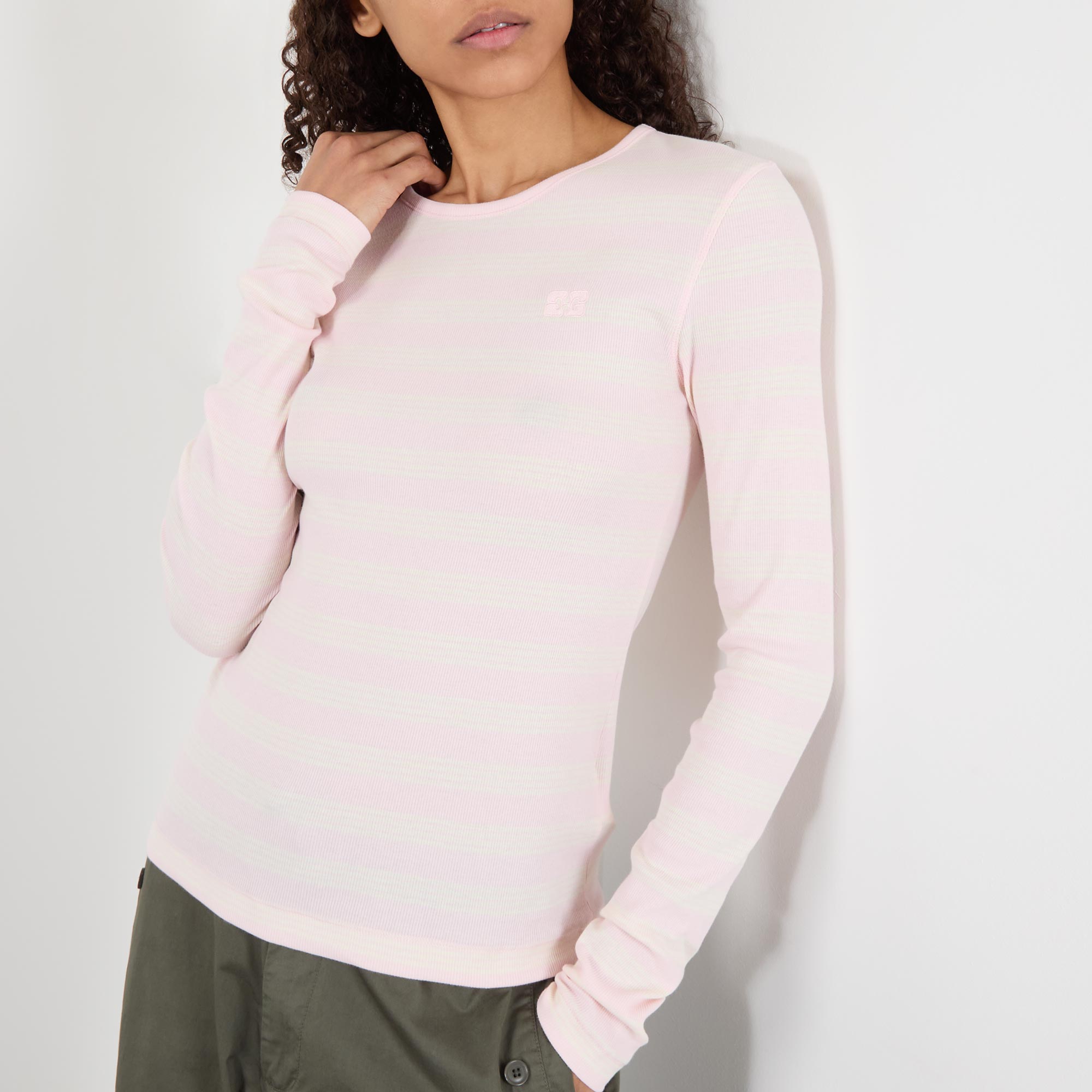GANNI Striped Butterfly Logo Long-Sleeved Top